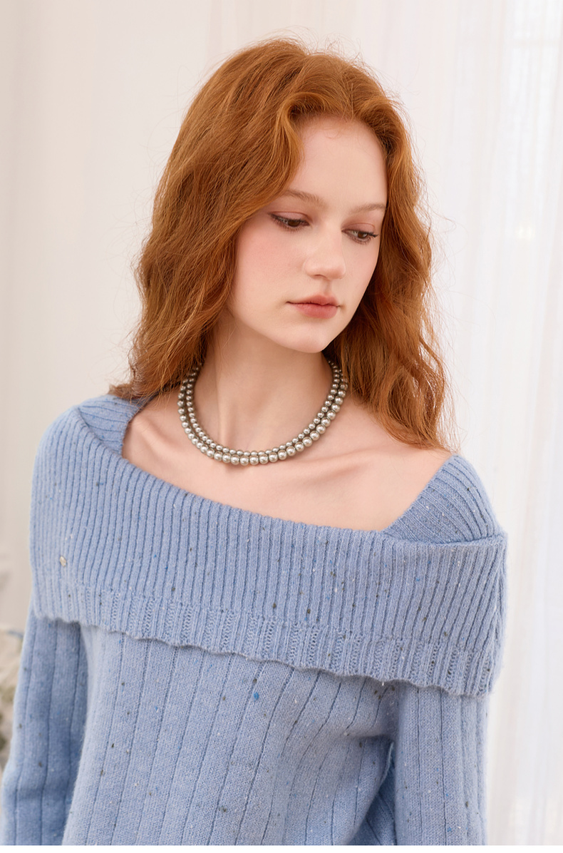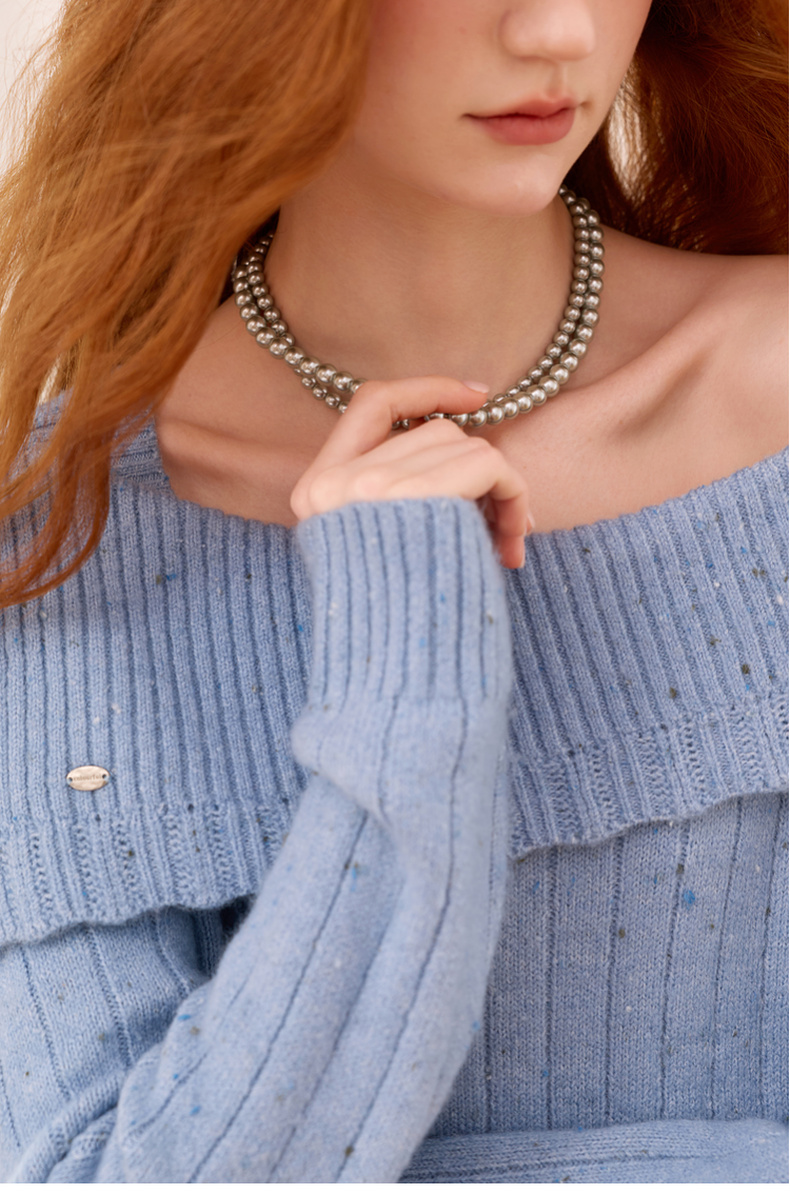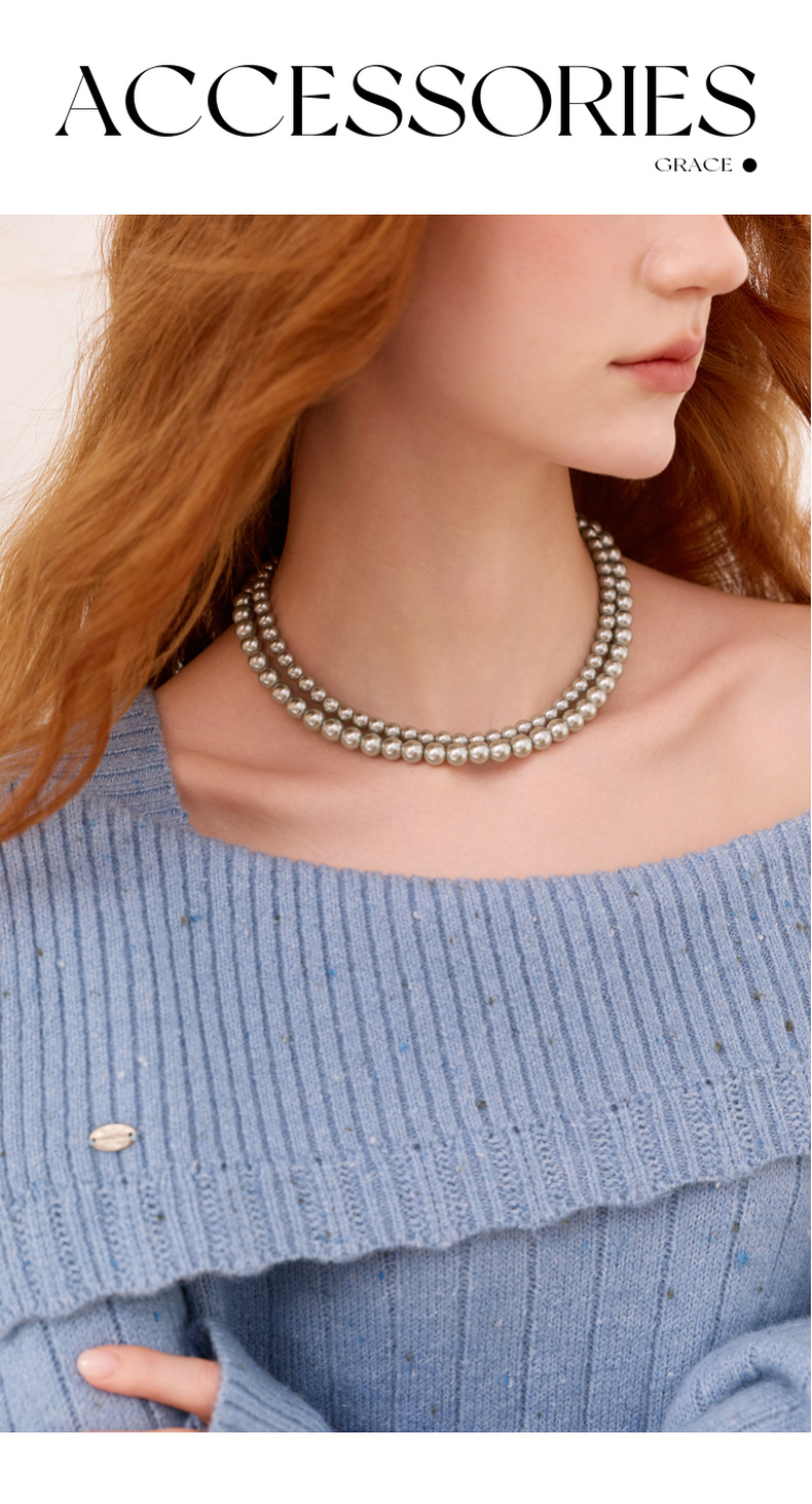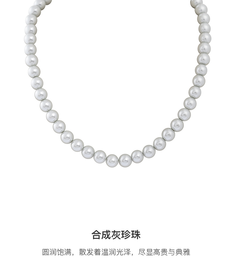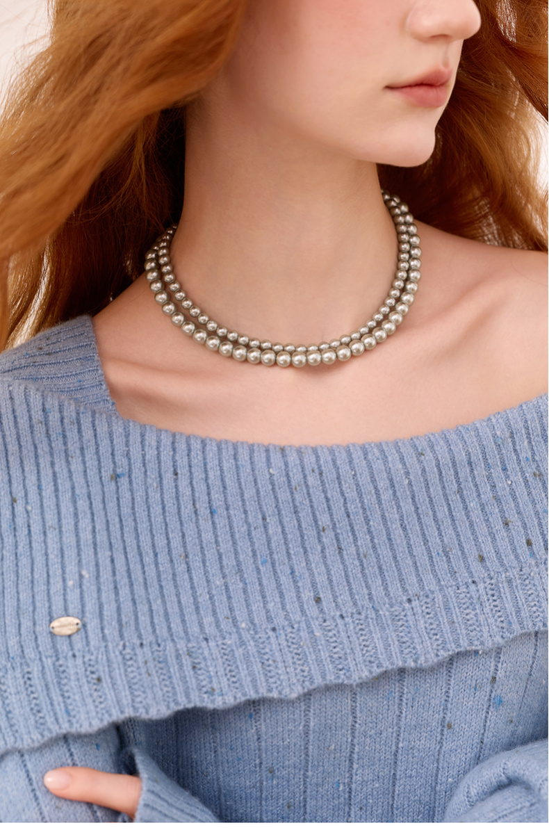 三彩2025新款轻奢合成灰珍珠项链双层套链优雅复古毛衣链约会婚礼