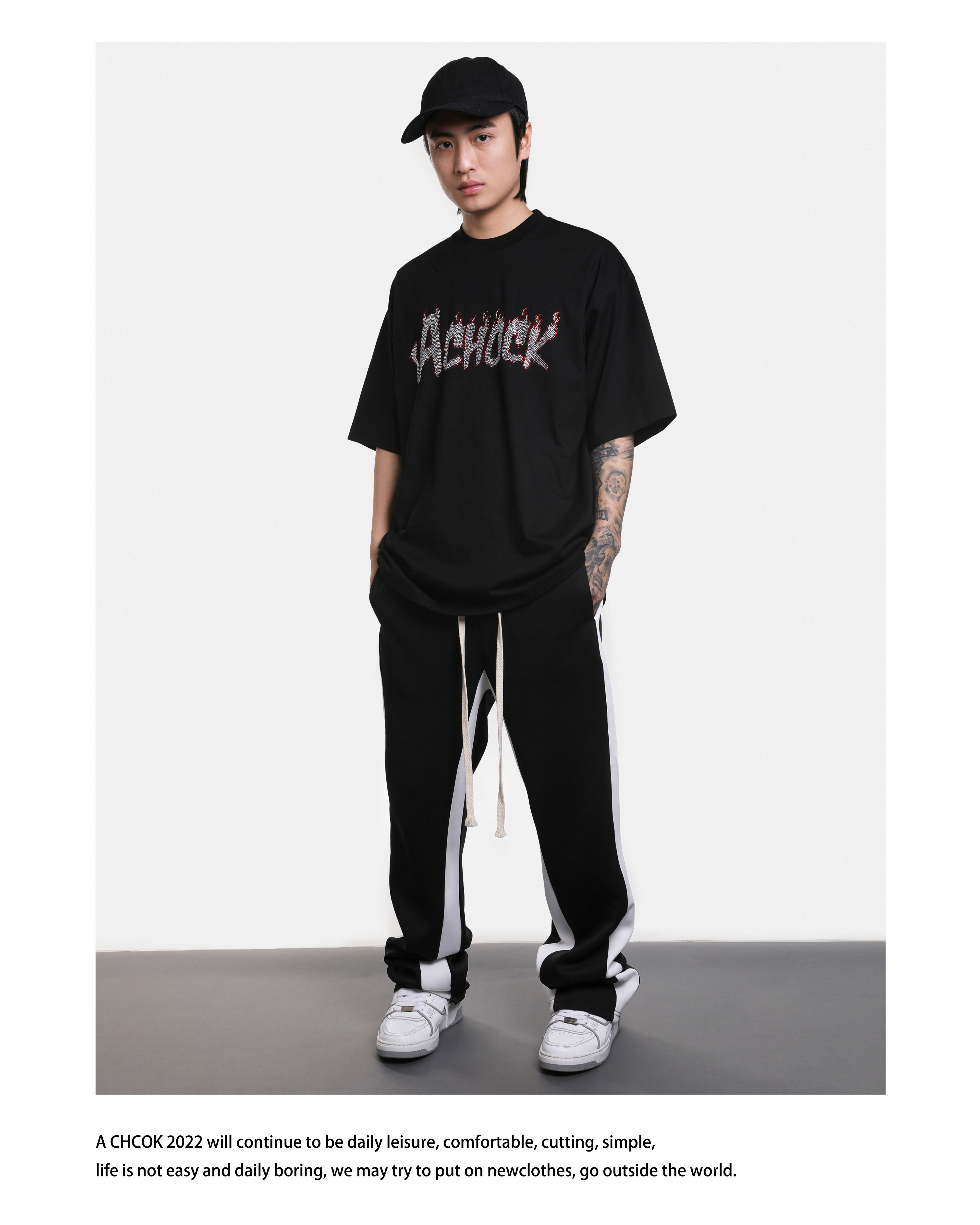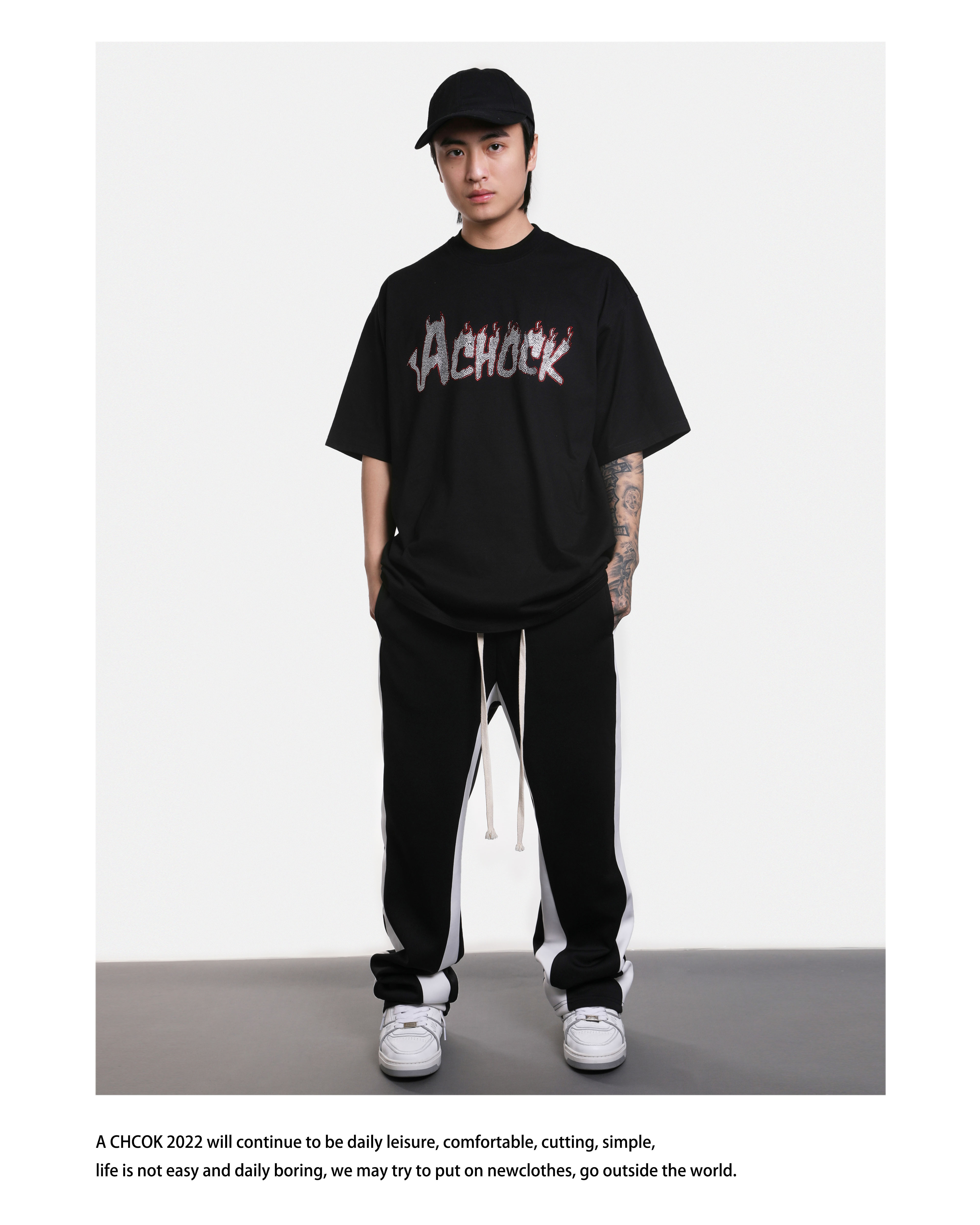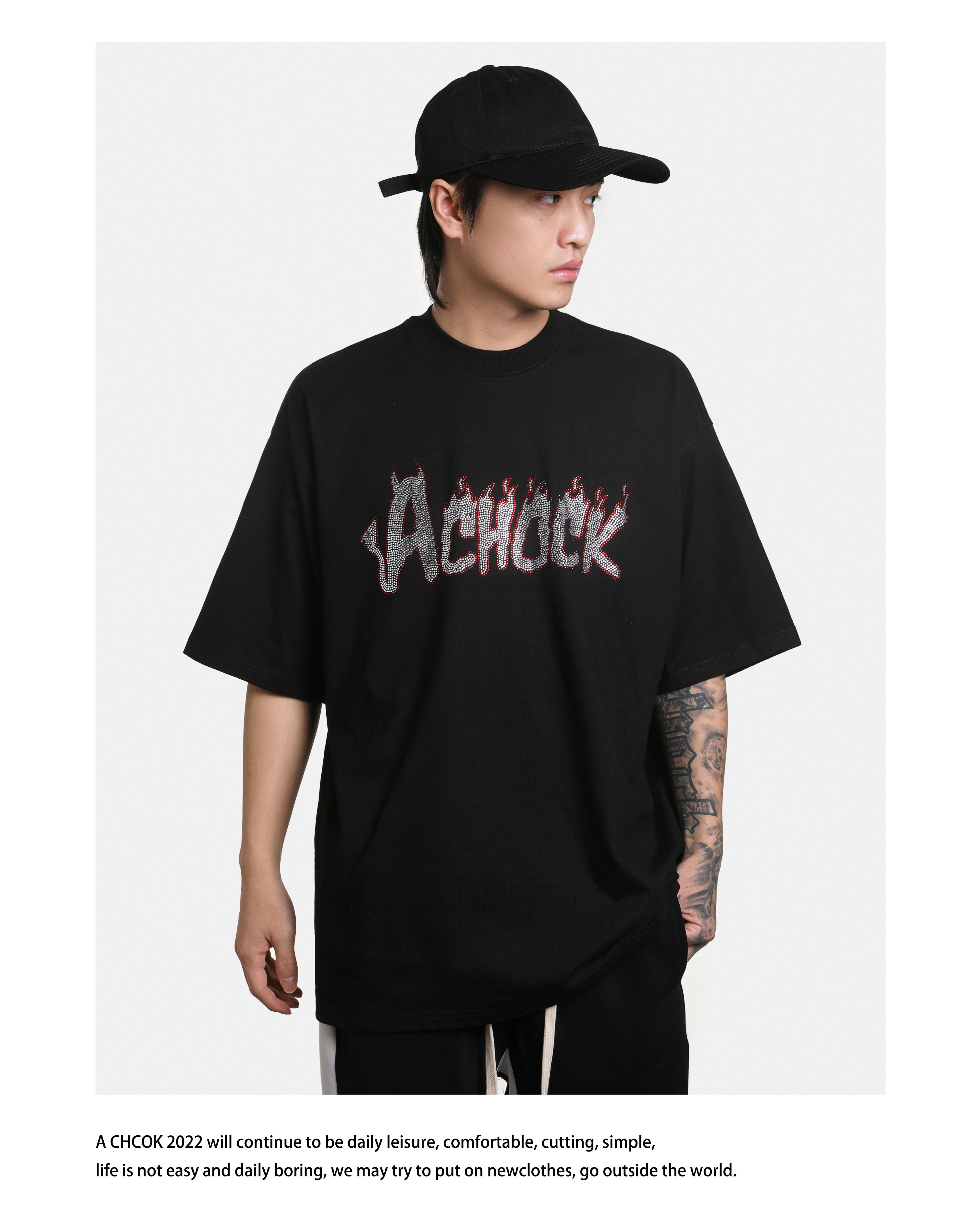 【Achock官方店】国潮创意logo烫钻火焰刺绣t恤2022夏圆领短袖男