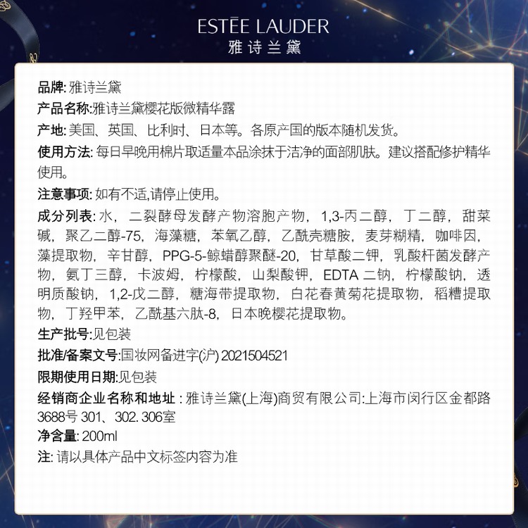 雅诗兰黛原生液精华水200ml