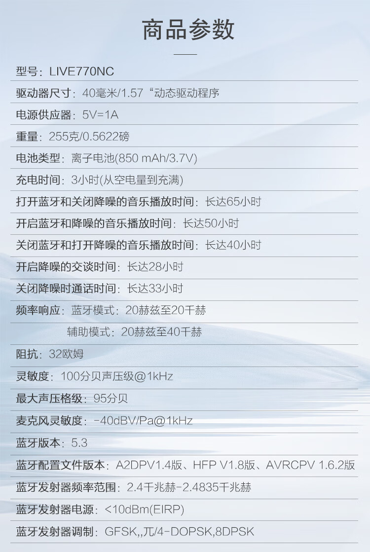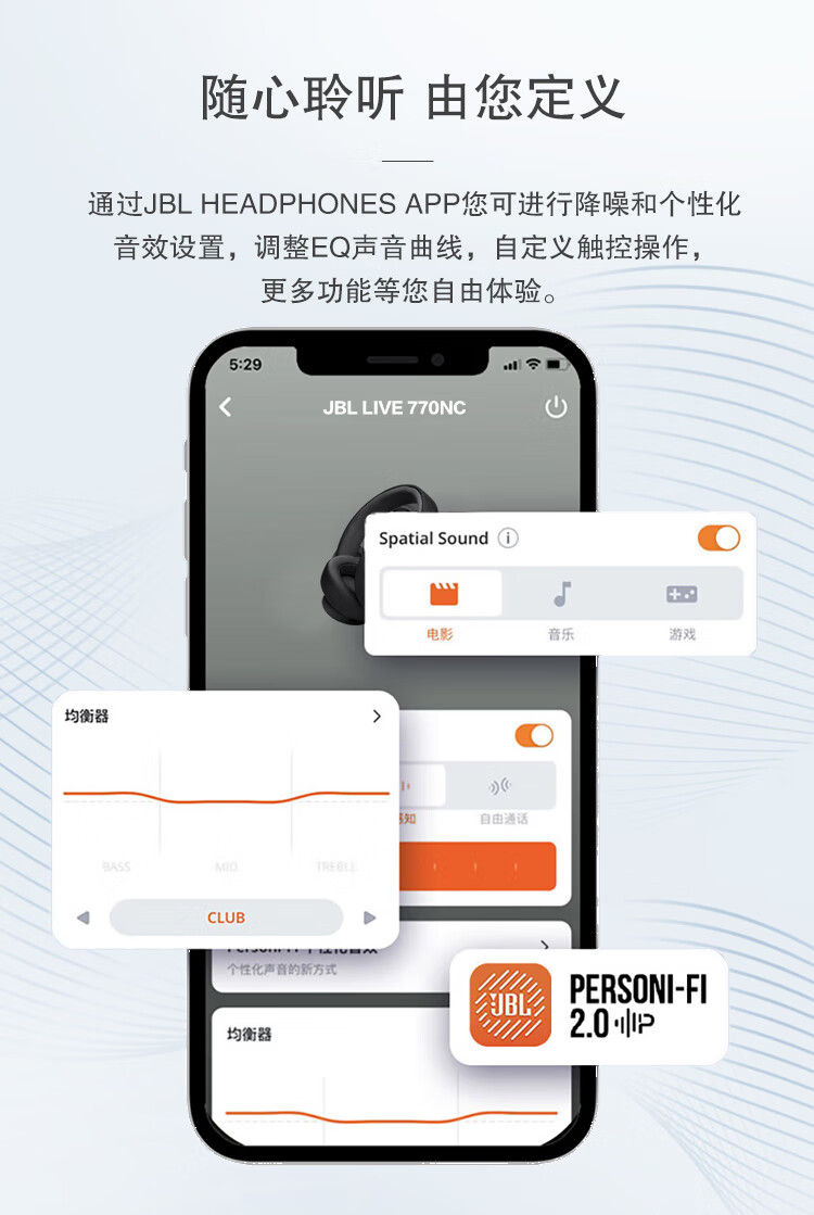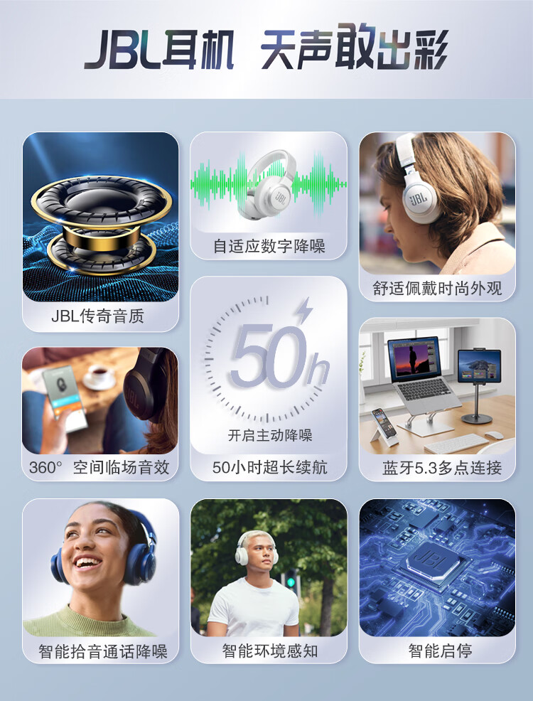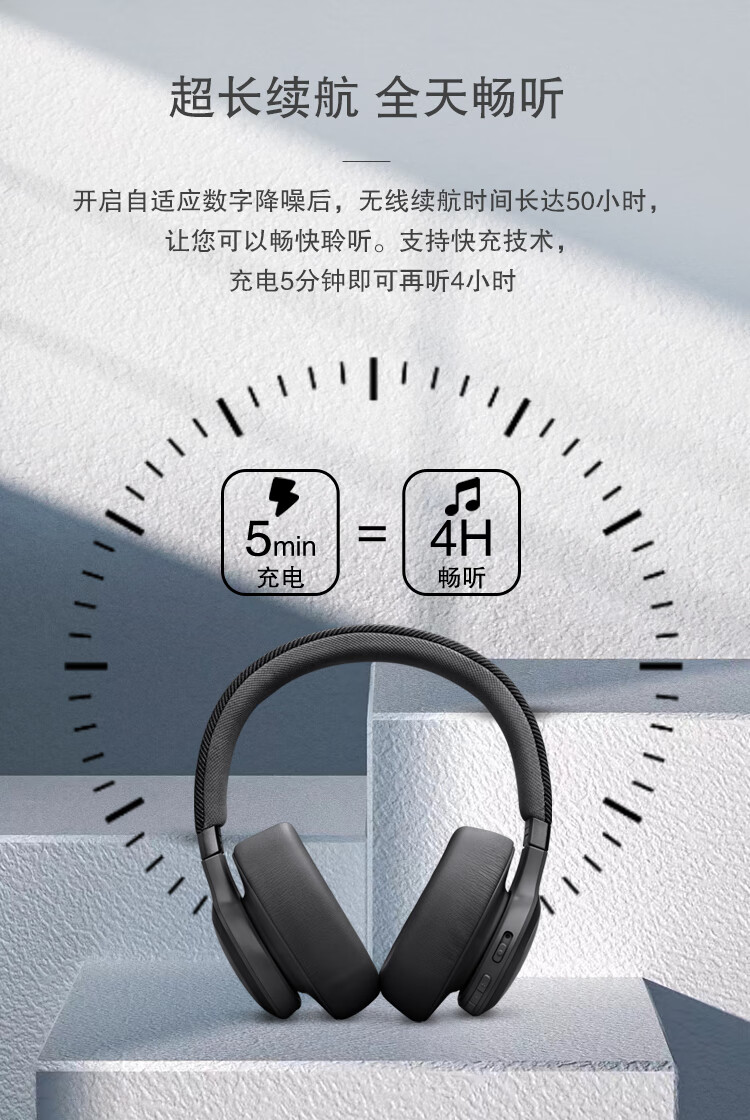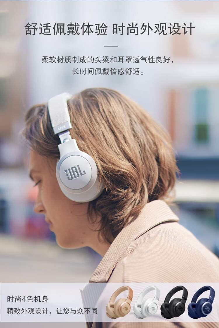 JBL LIVE 770NC头戴自适应主动降噪 无线蓝牙耳机 Hi-Res金标