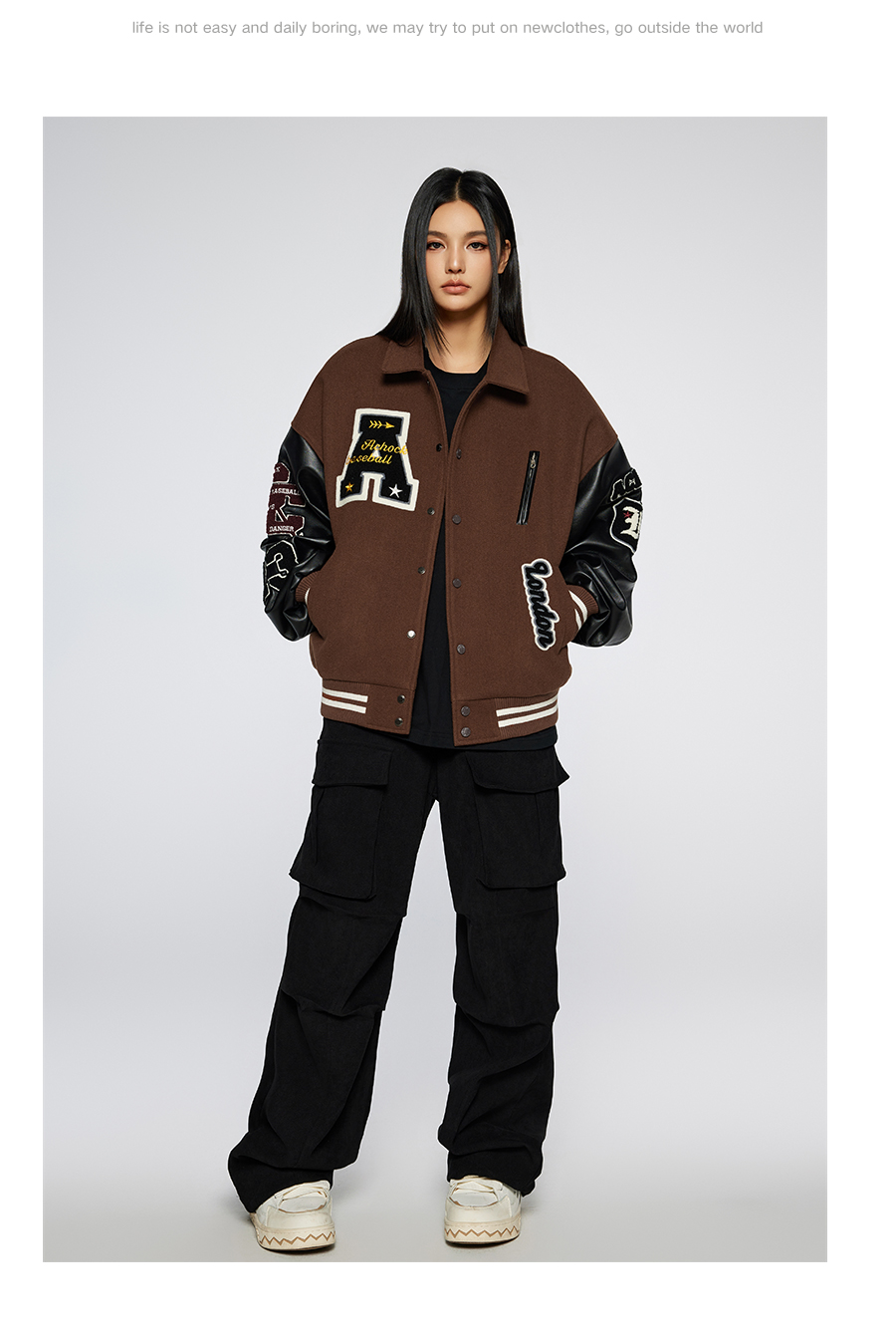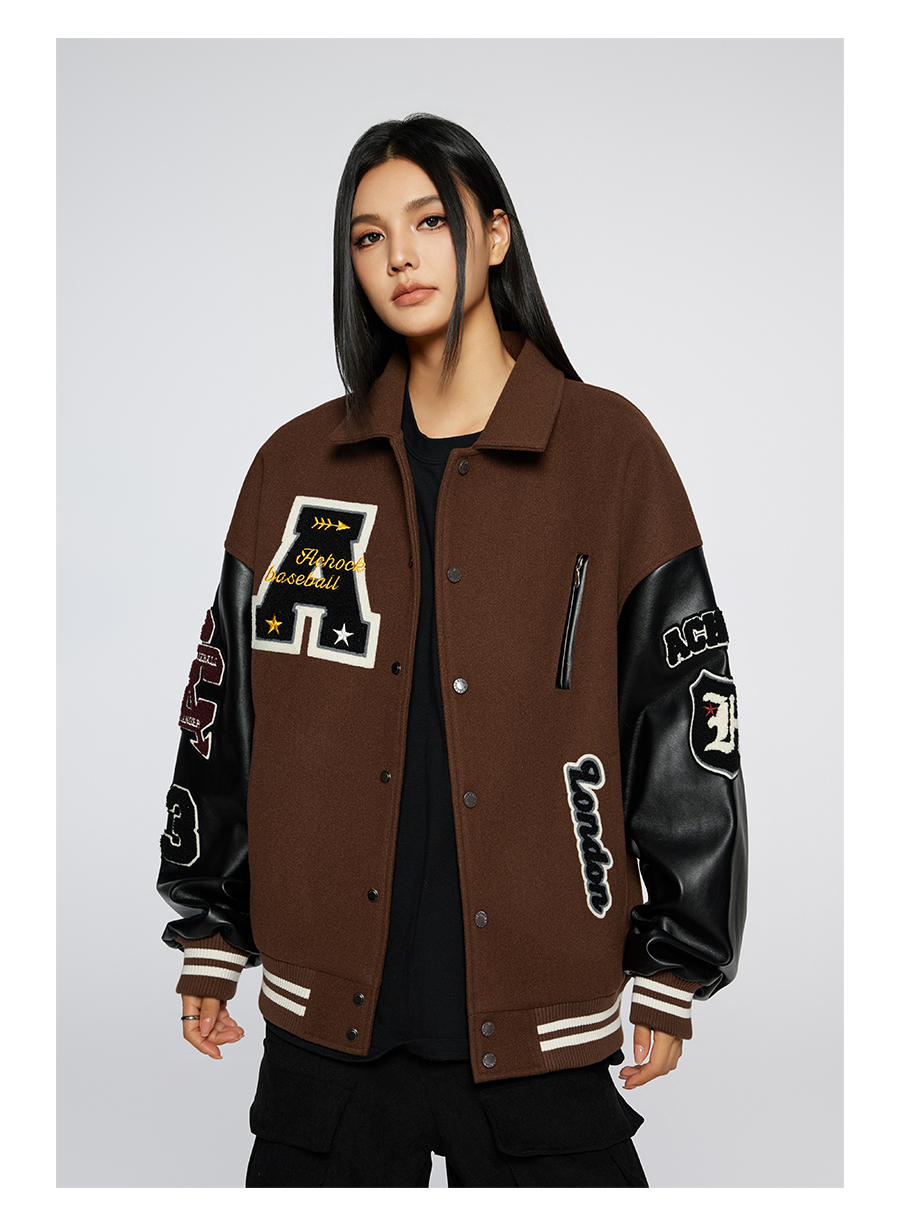 【Achock官方店】美式高街重磅植绒棒球服潮牌秋冬款夹克外套男女