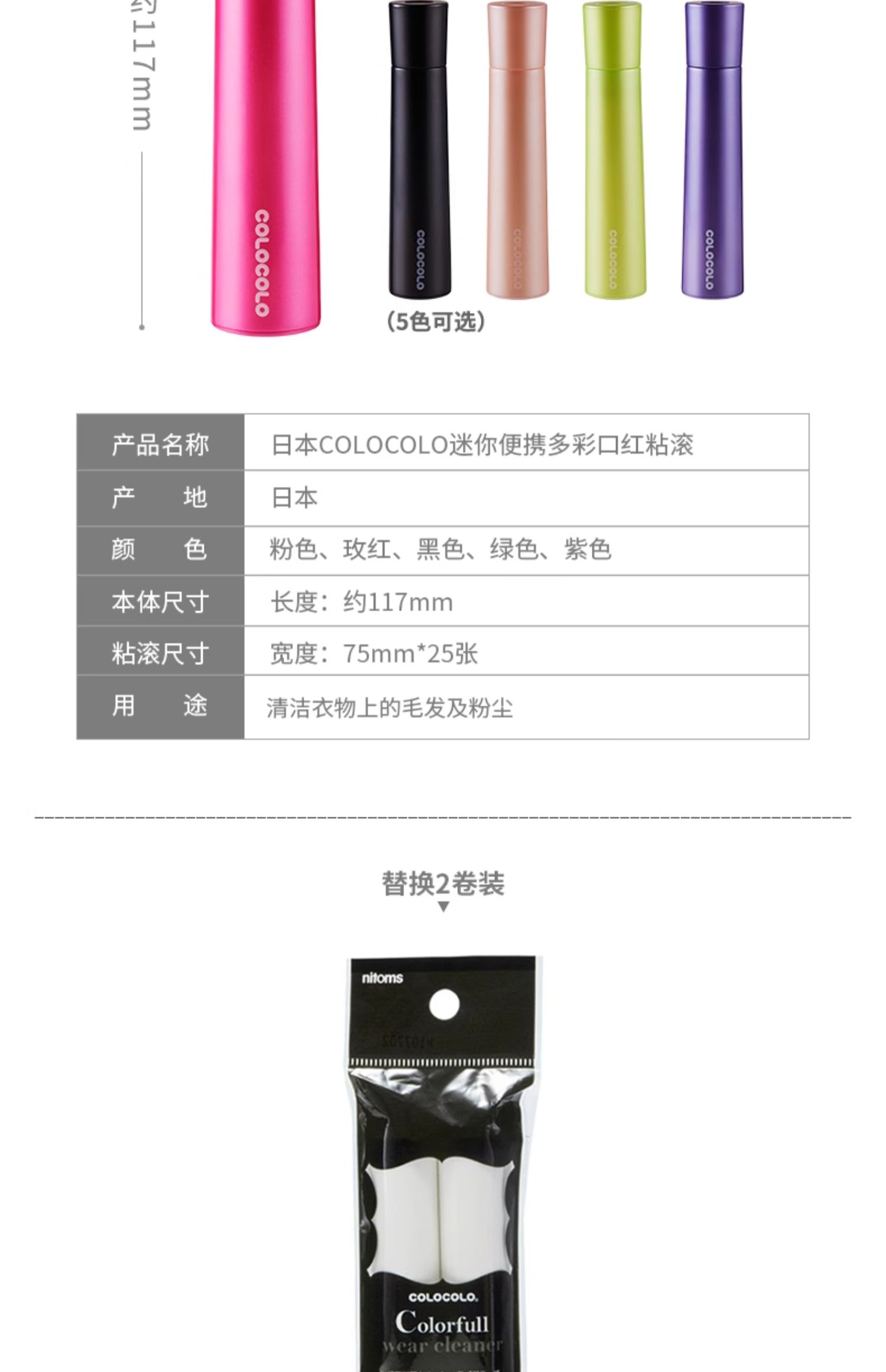 Nitto COLOCOLO科粘乐口红型便携式粘滚去毛神器衣物滚筒式粘毛器_MW