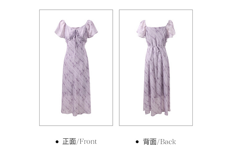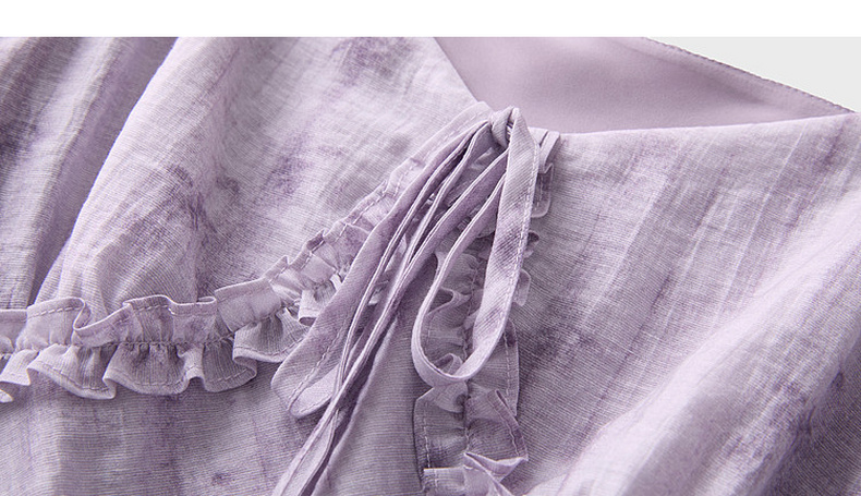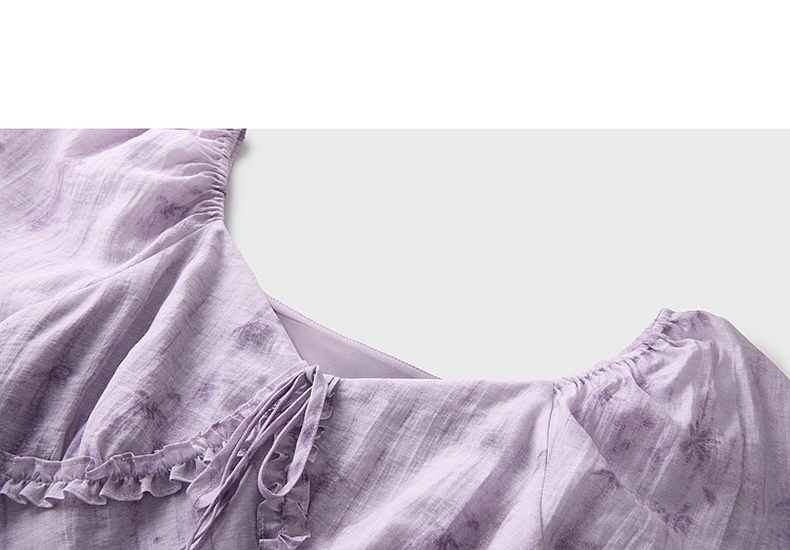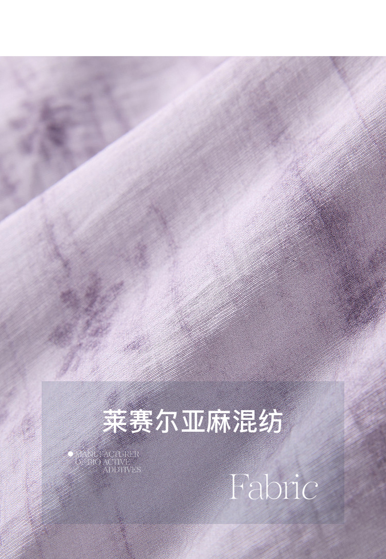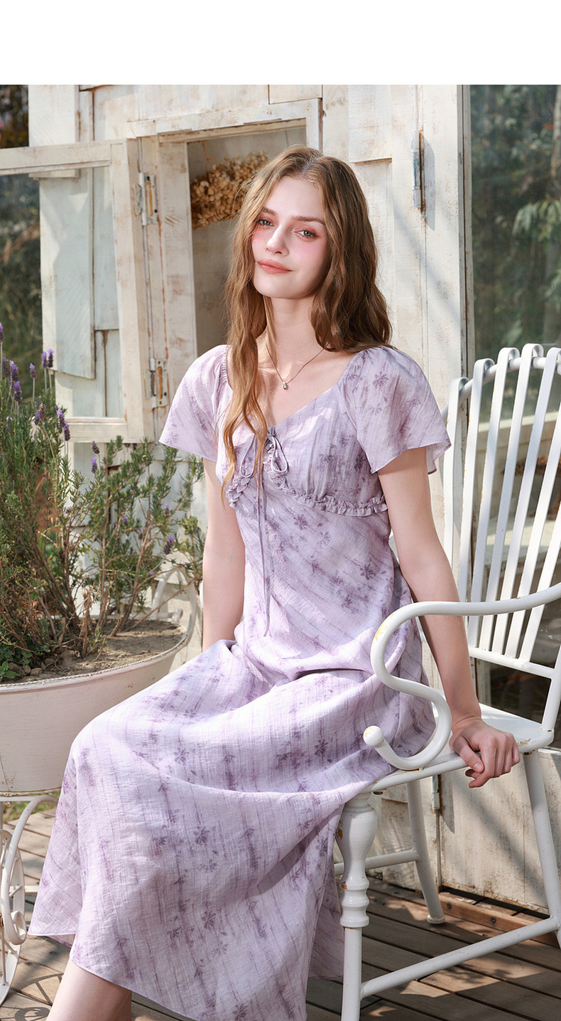 三彩2026夏季新款莱赛尔印花连衣裙V领荷叶袖A字裙长裙M