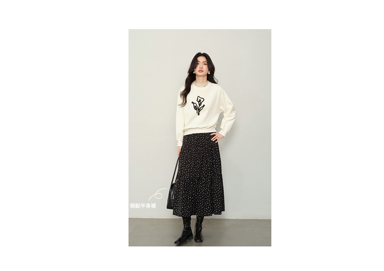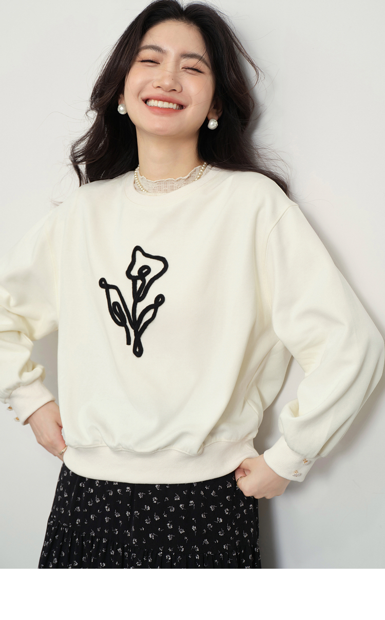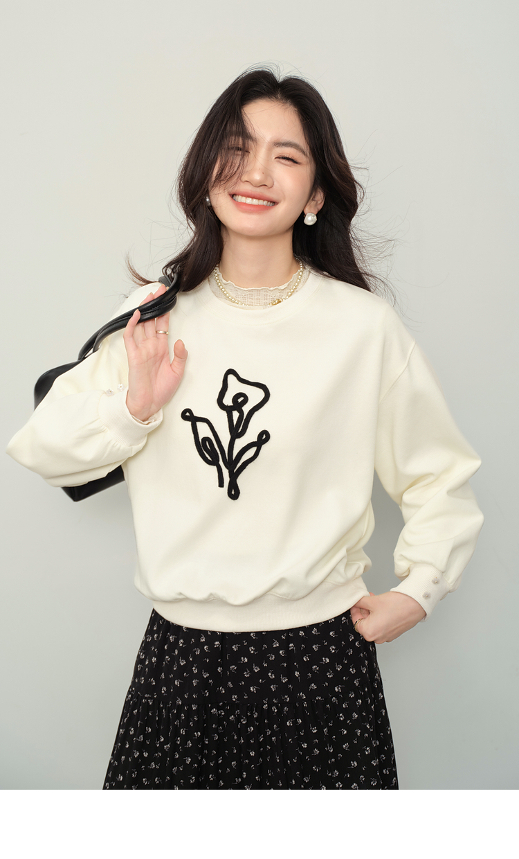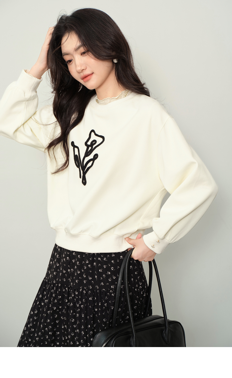 鹿向南「一握皎洁」刺绣杏色卫衣秋冬新款文艺复古宽松套头上衣女