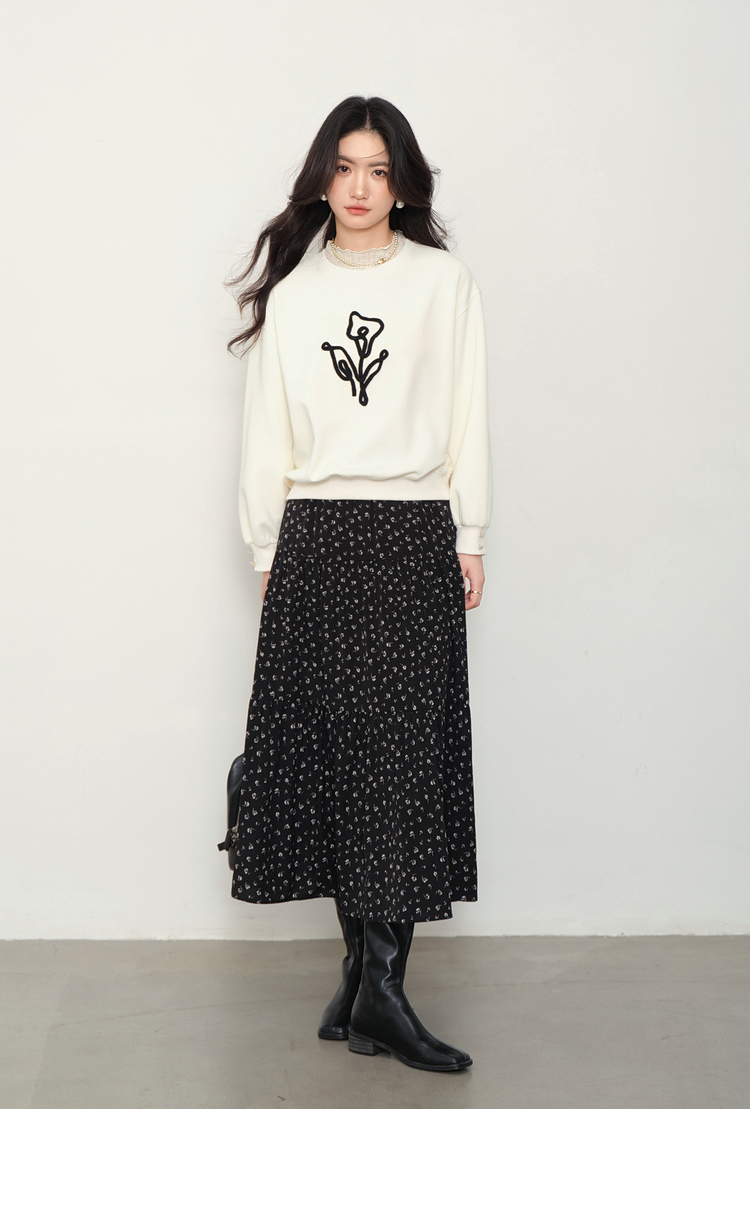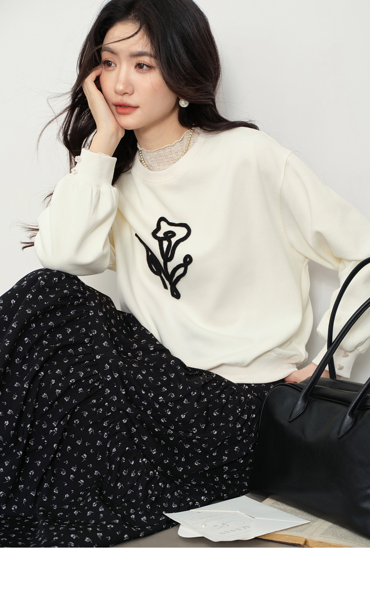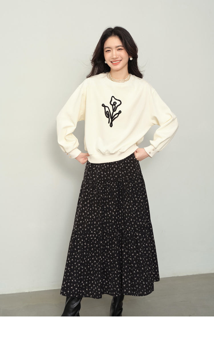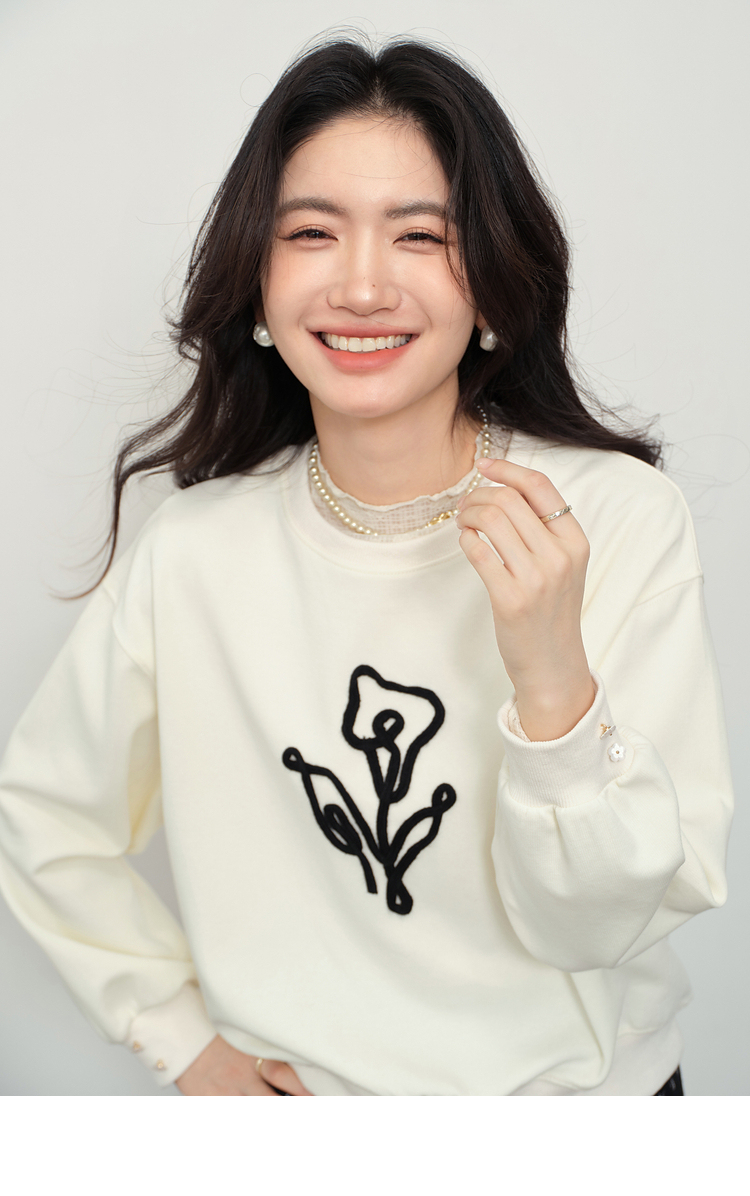 鹿向南「一握皎洁」刺绣杏色卫衣秋冬新款文艺复古宽松套头上衣女