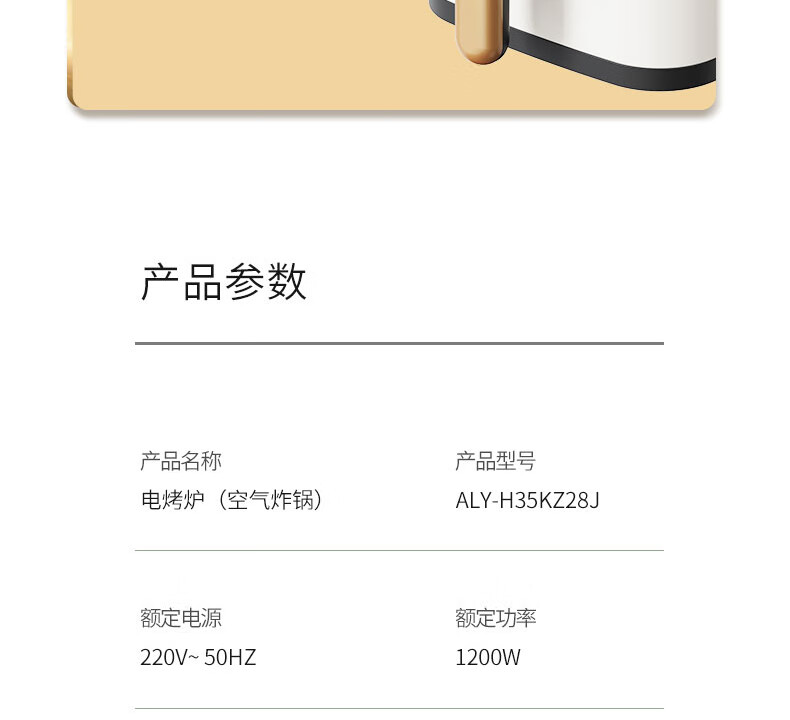 ACA北美电器3.5L空气炸锅 ALY-H35KZ28J