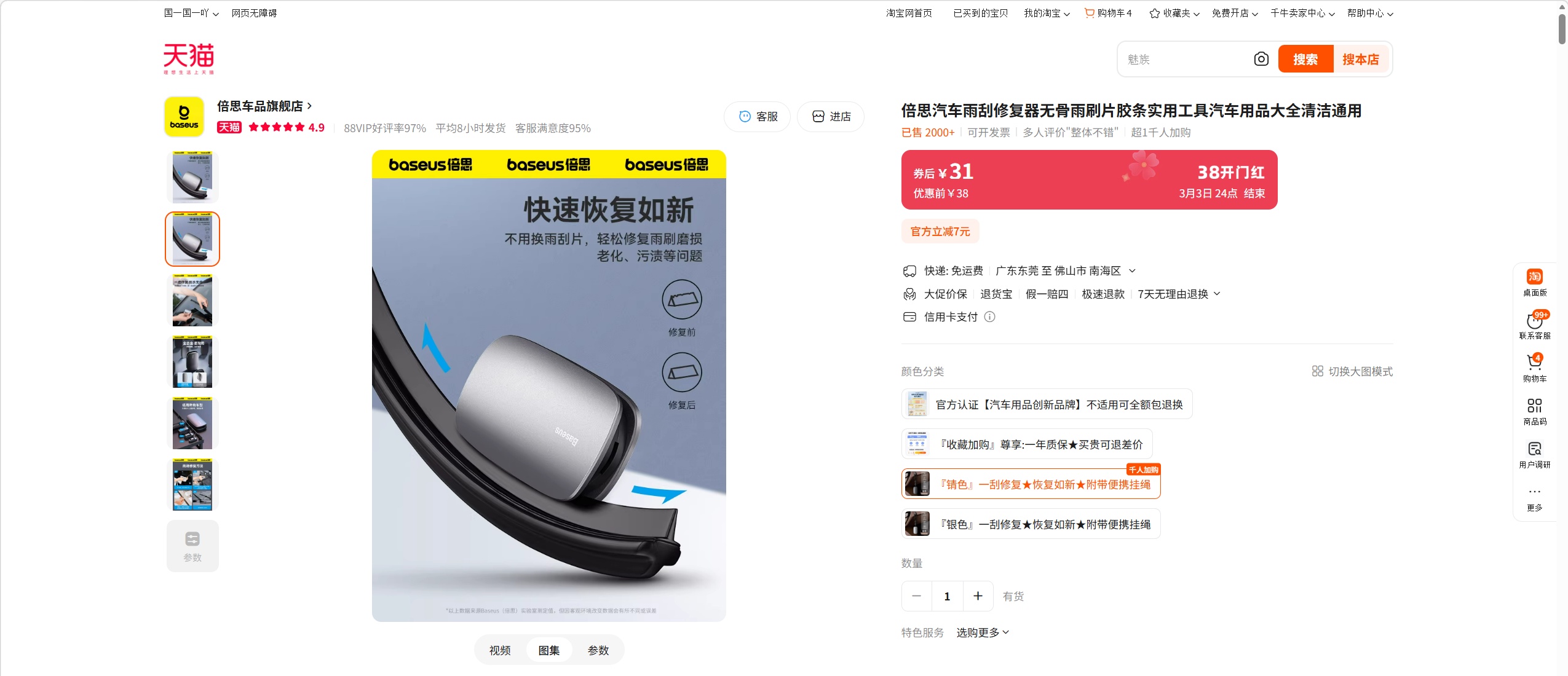 【天猫旗舰店销量2000+】倍思汽车雨翼雨刮修复器