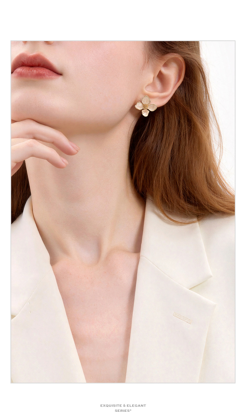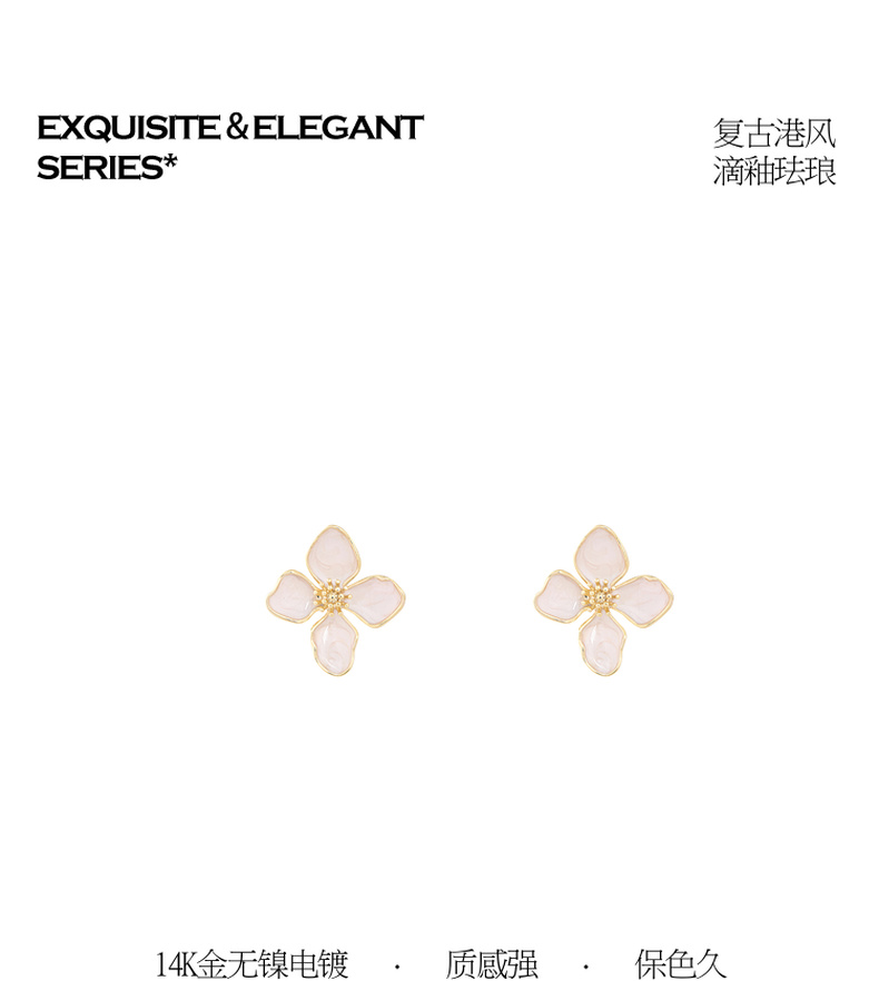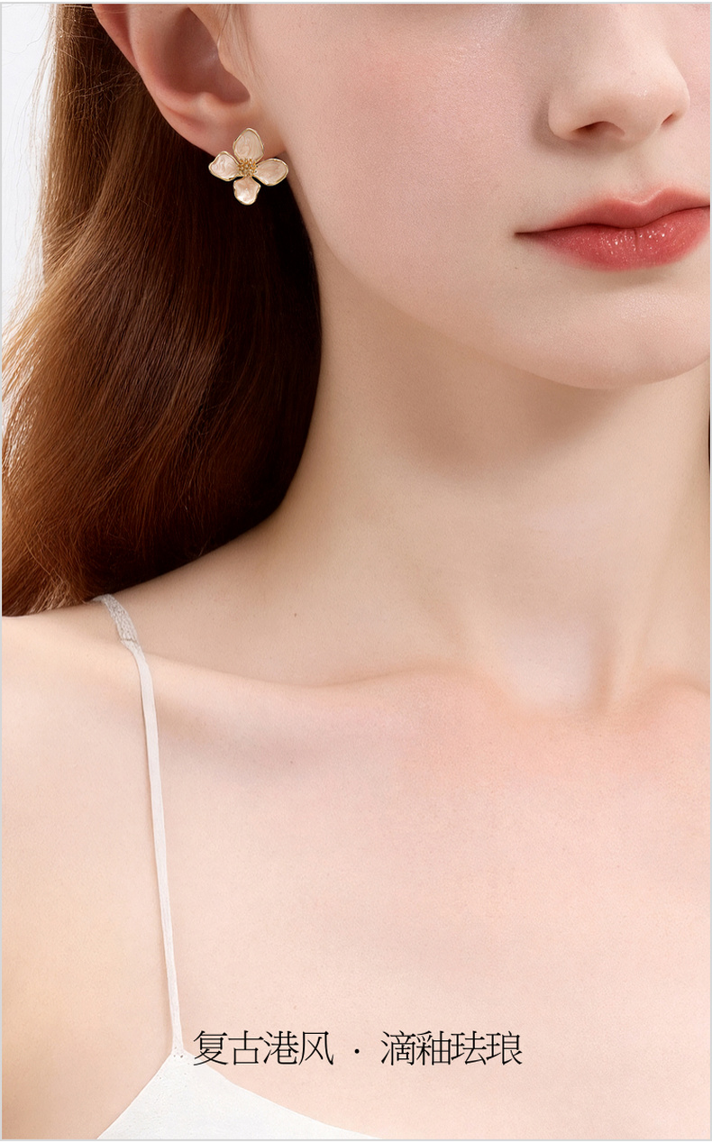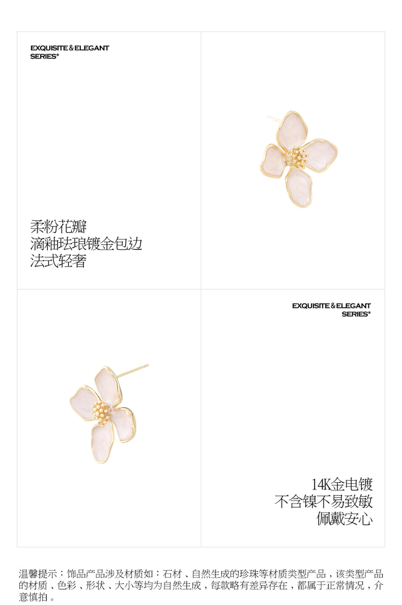 三彩2026新款法式温柔滴釉立体花瓣耳钉镀金包边轻奢约会下午茶女