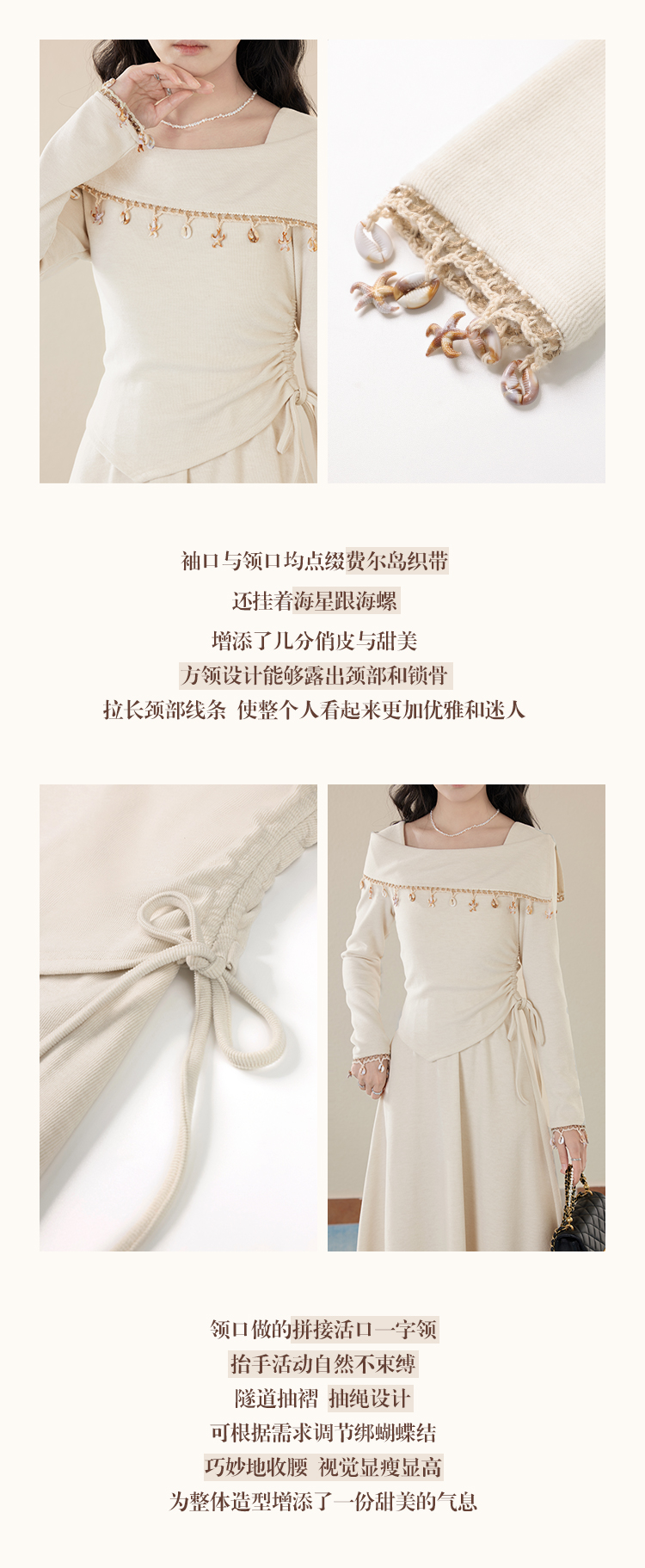 鹿向南「海上钢琴诗」法式假两件连衣裙2024新款秋冬加绒显瘦裙子