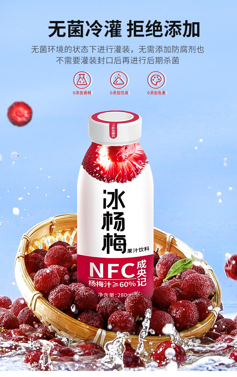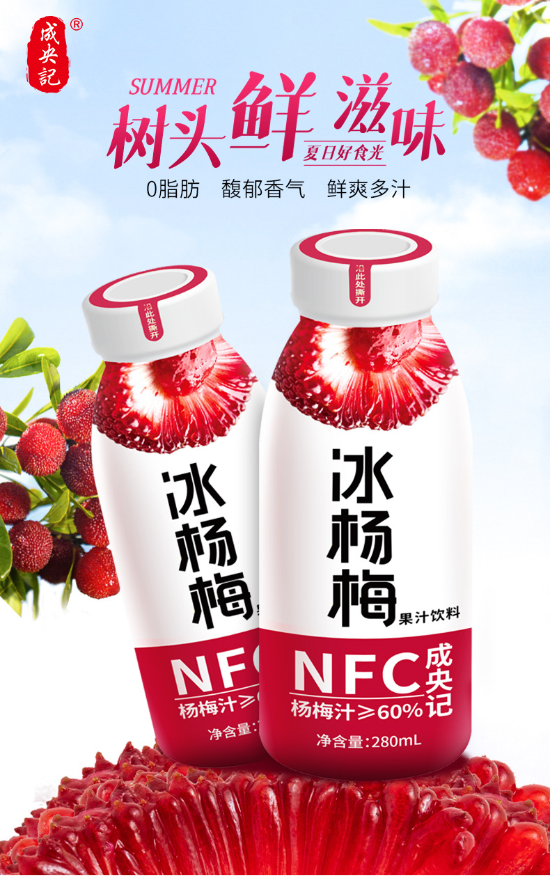 【SUMMER,树头鲜滋味,夏日好食光】成央记冰杨梅汁 冰镇果味饮料果汁 整箱酸梅汤 果蔬汁280ml*12瓶/箱-QQ