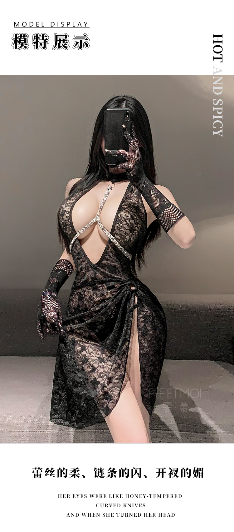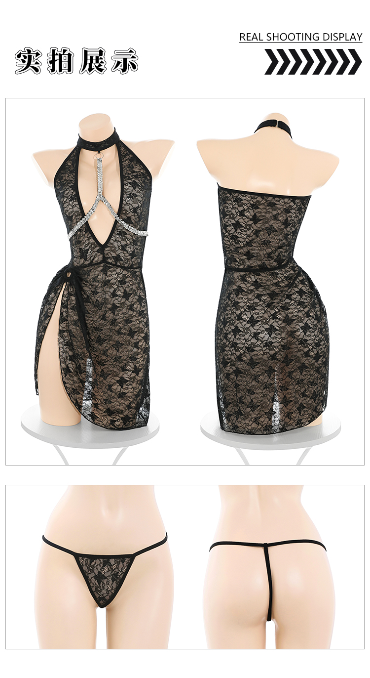 【情趣内衣】霏慕 闪链饰胸魅惑透身连衣裙ZY179