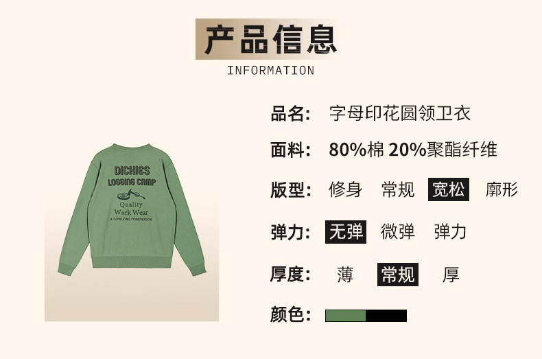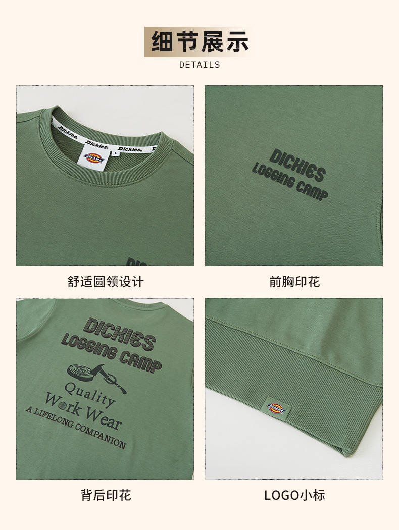 Dickies胸背后板趣味印花毛圈布卫衣 美式复古卫衣男女同款 DK0A88OI
