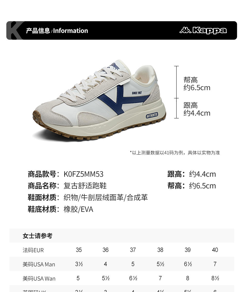 Kappa卡 新款复古老爹厚底运动鞋 跑鞋 男女款K0FZ5MM53