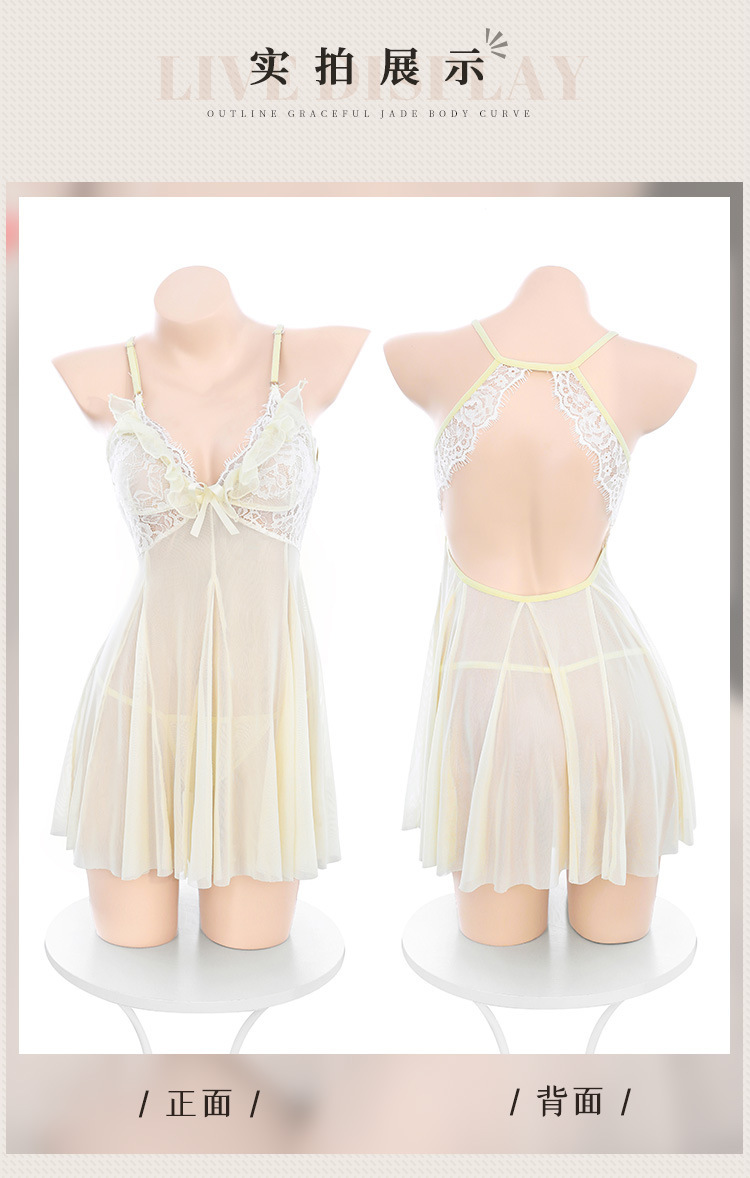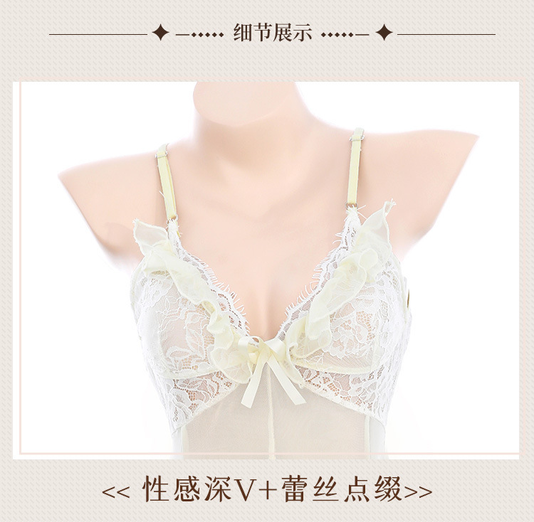 【霏慕】蕾丝奶芙钓系深v透视睡裙6213情趣内衣性感裸背露臀t裤