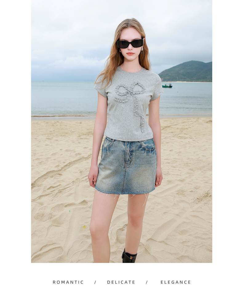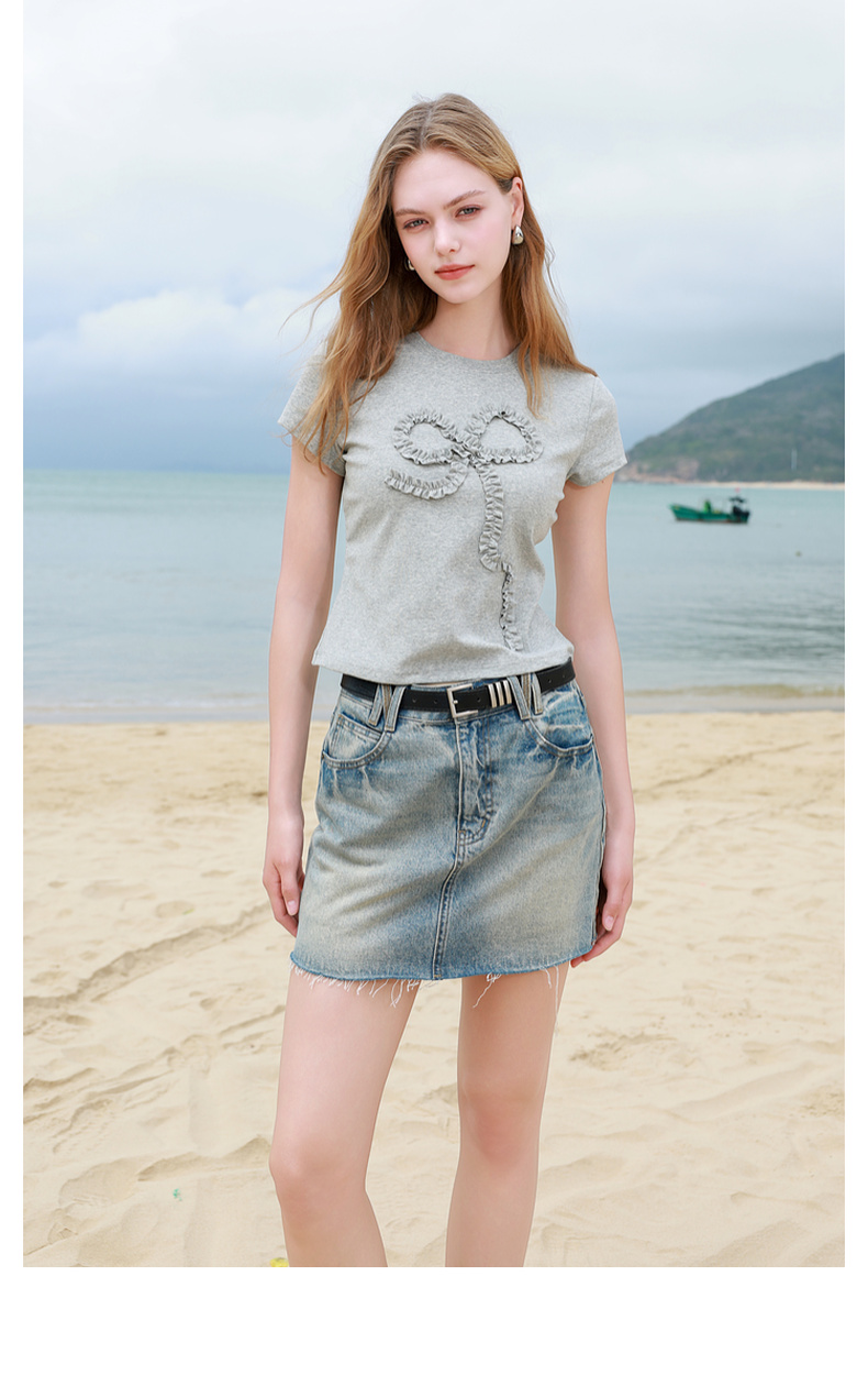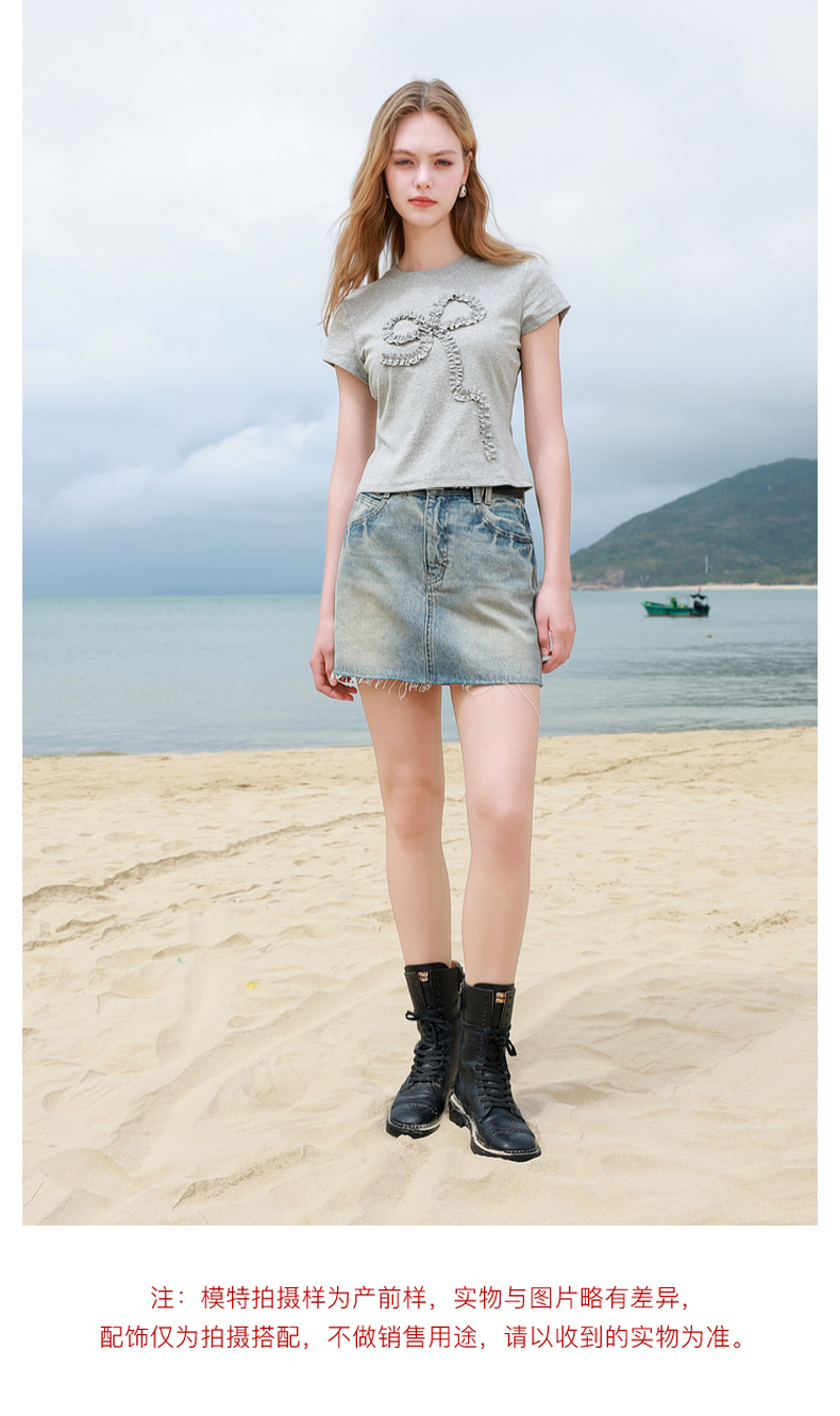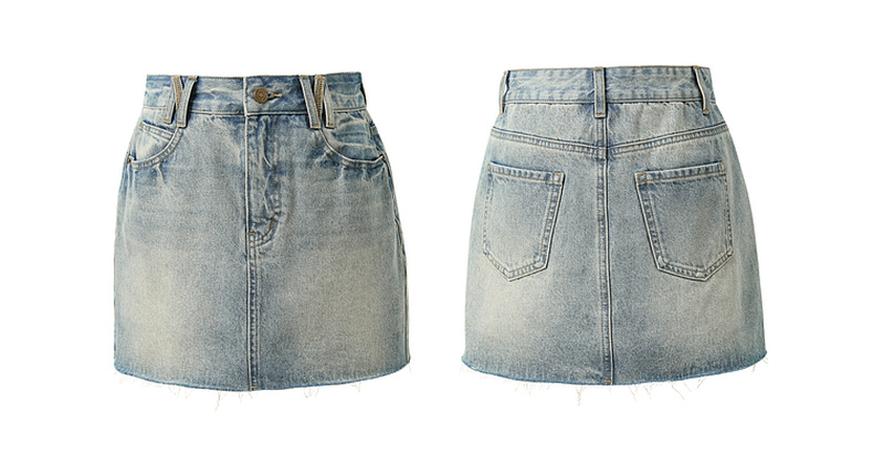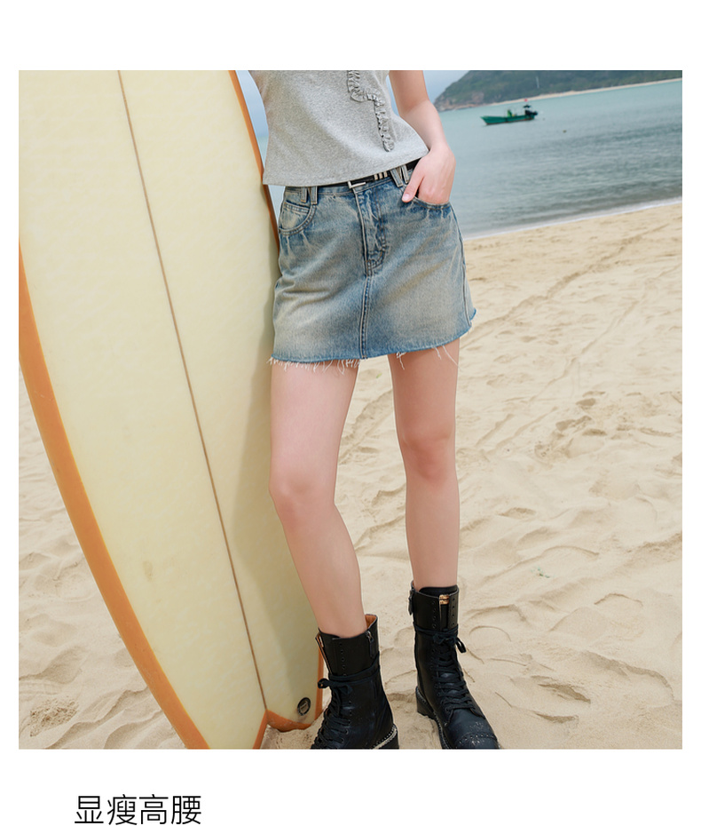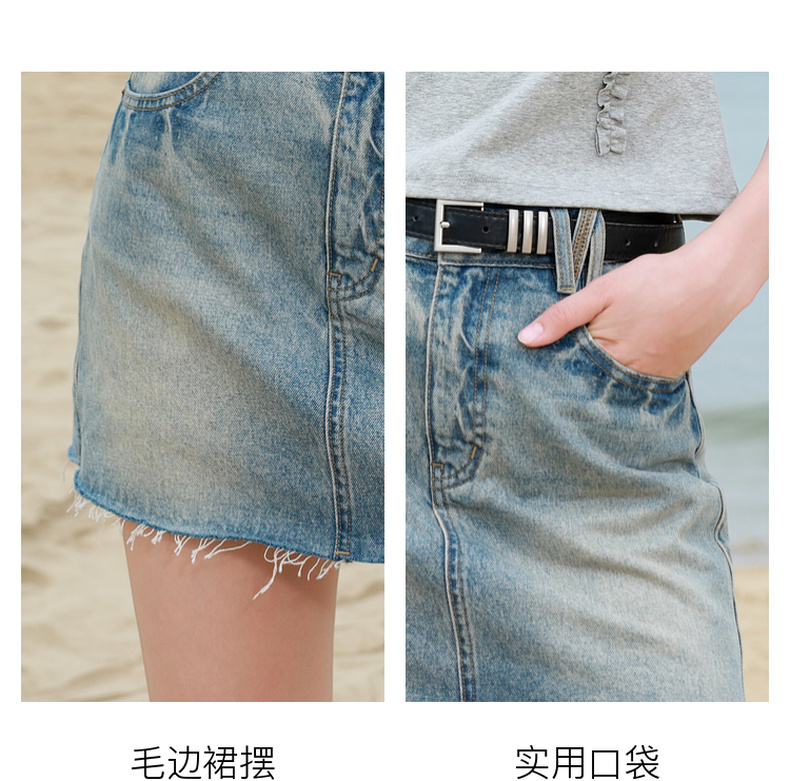 三彩独醒2025夏季新款牛仔裙半身裙高腰包臀修身毛边短款甜酷F