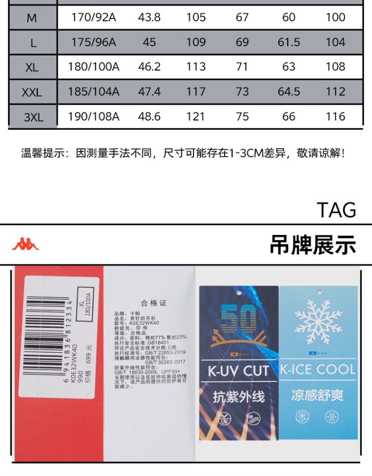 Kappa卡帕针织开衫2024新款男夏凉感休闲长袖防晒外套K0E32WK40