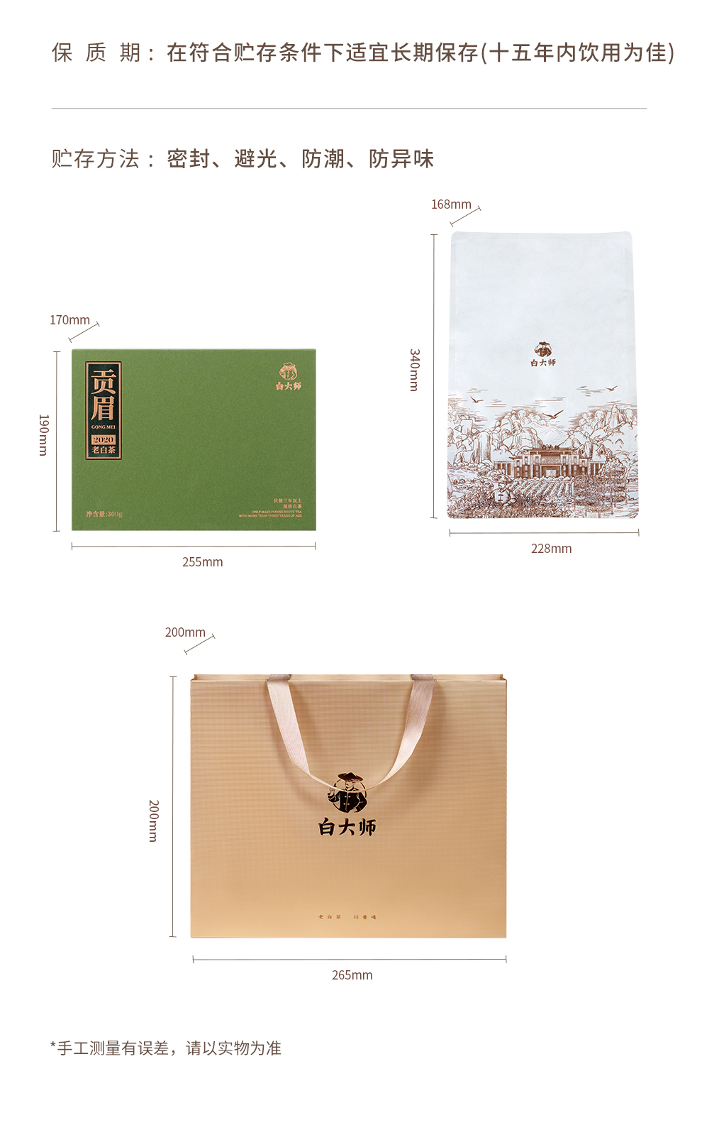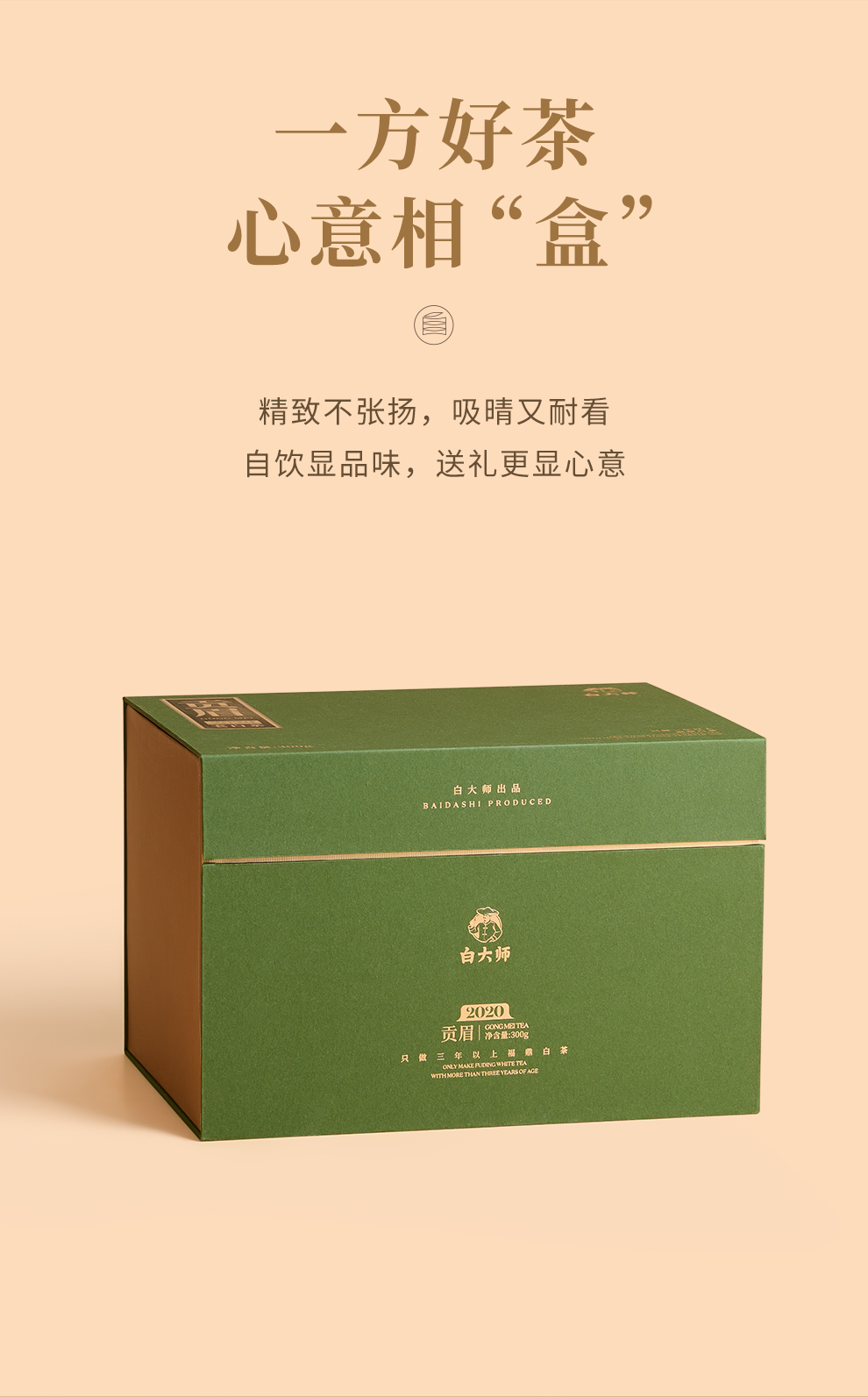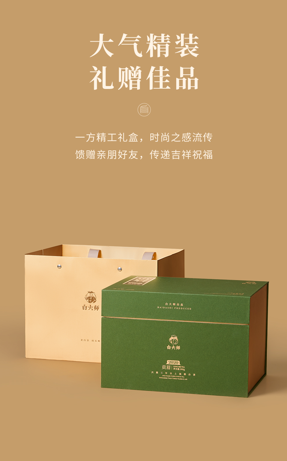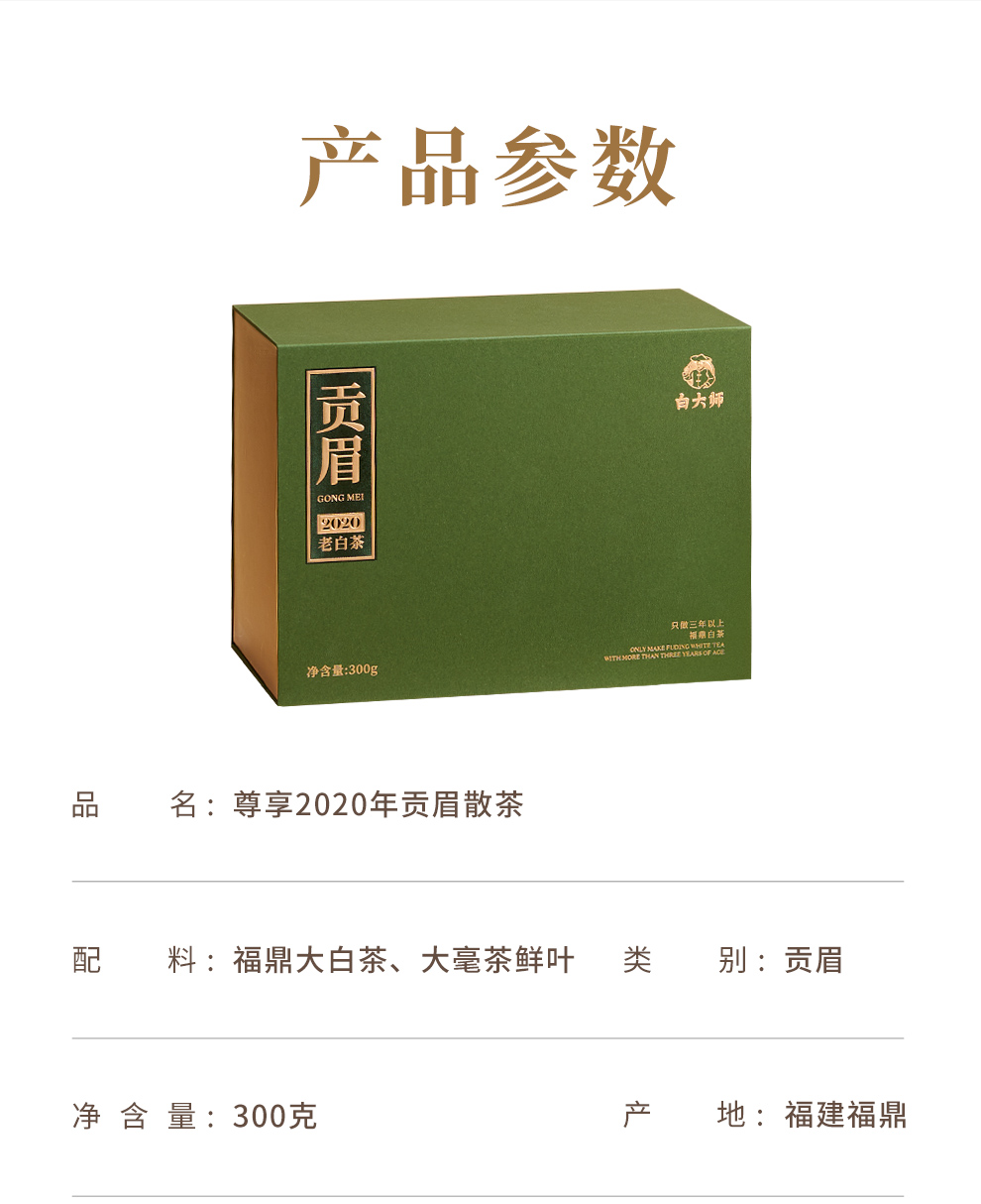 白大师福鼎白茶2020年一级贡眉散茶口粮茶便携茶叶送礼礼盒300g