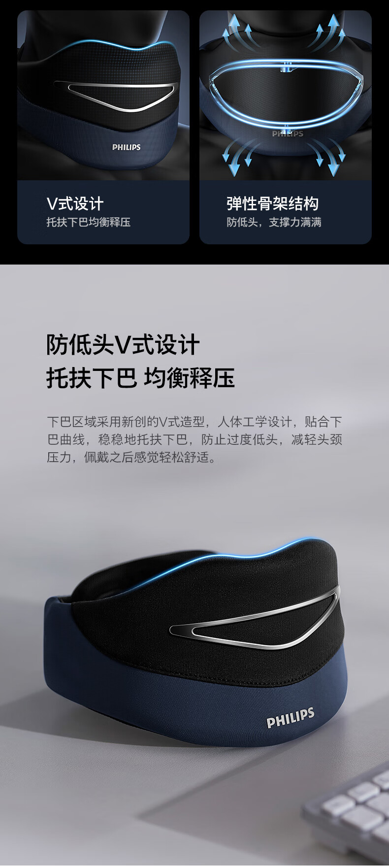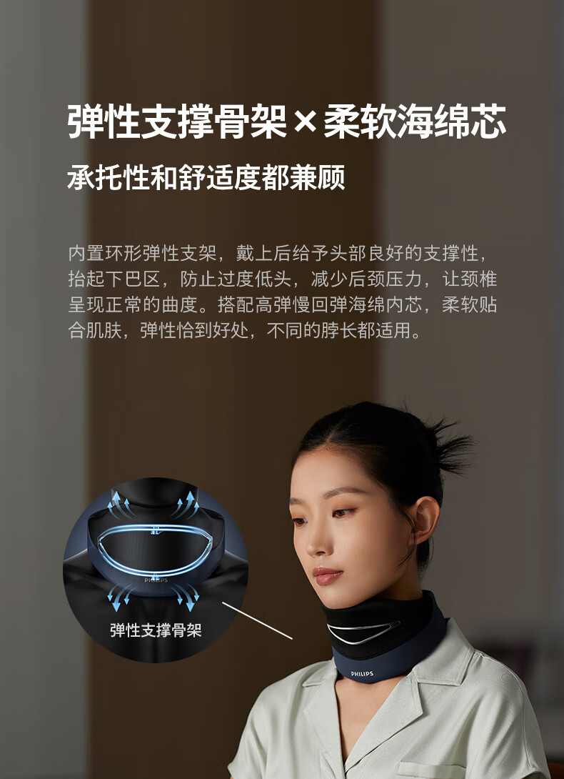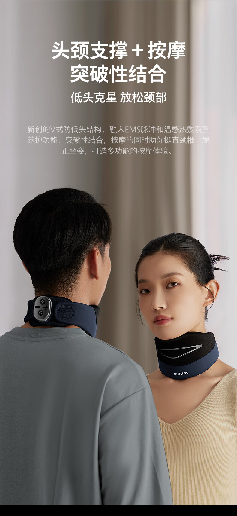 飞利浦(PHILIPS)颈部按摩器颈椎按摩仪按摩枕EMS脉冲热敷承托三合一低头族肩颈小颈托生日礼物礼品PPM3306N