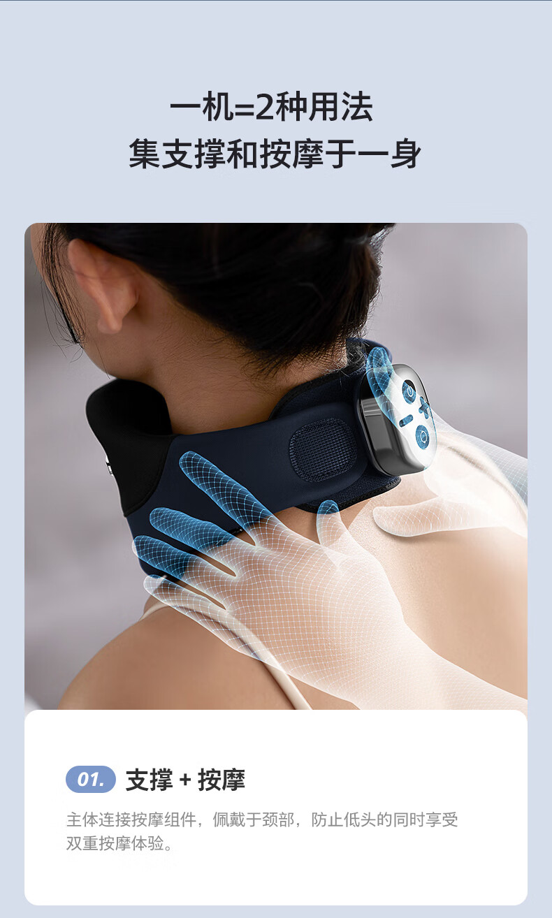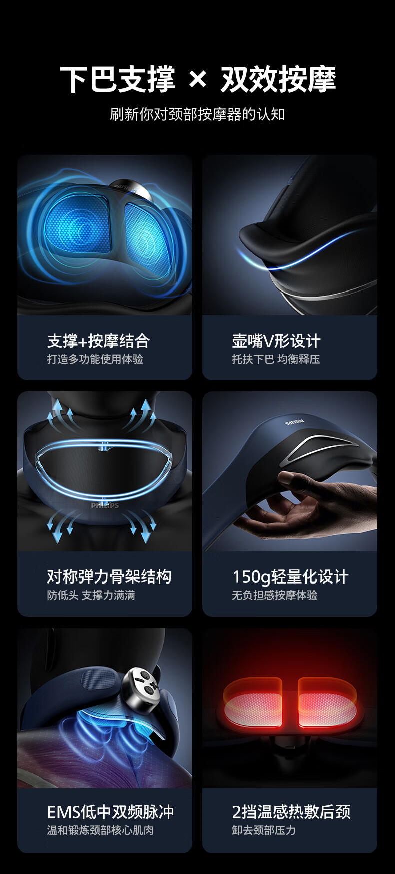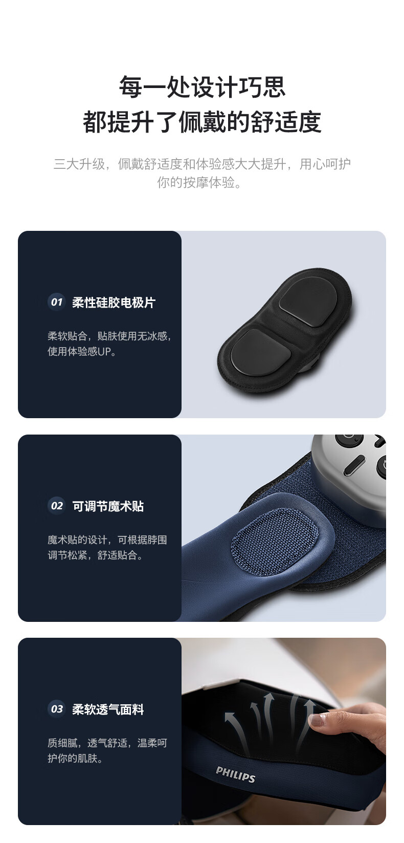 飞利浦(PHILIPS)颈部按摩器颈椎按摩仪按摩枕EMS脉冲热敷承托三合一低头族肩颈小颈托生日礼物礼品PPM3306N