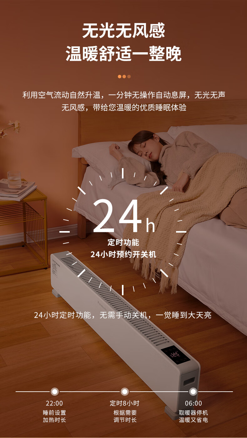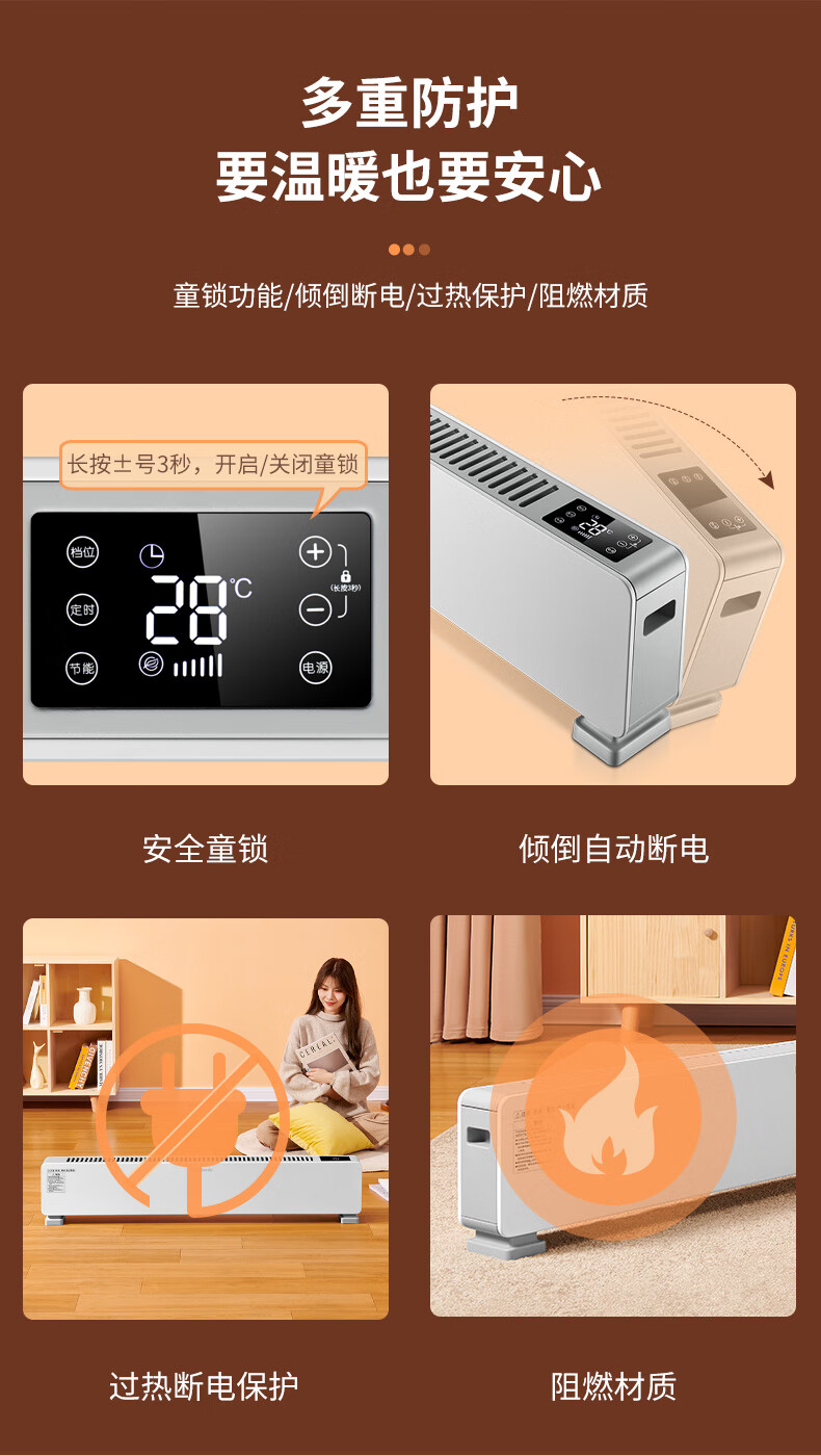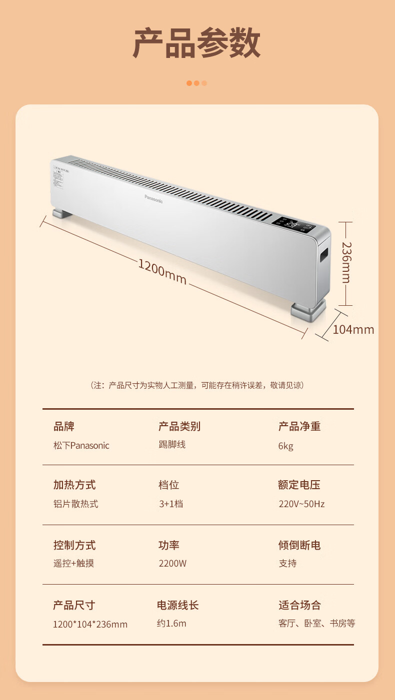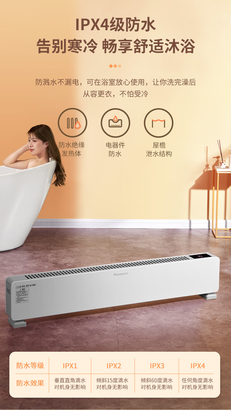 松下(Panasonic)取暖器电暖器电暖气家用智能遥控速热移动地暖恒温踢脚线DS-A2218CW