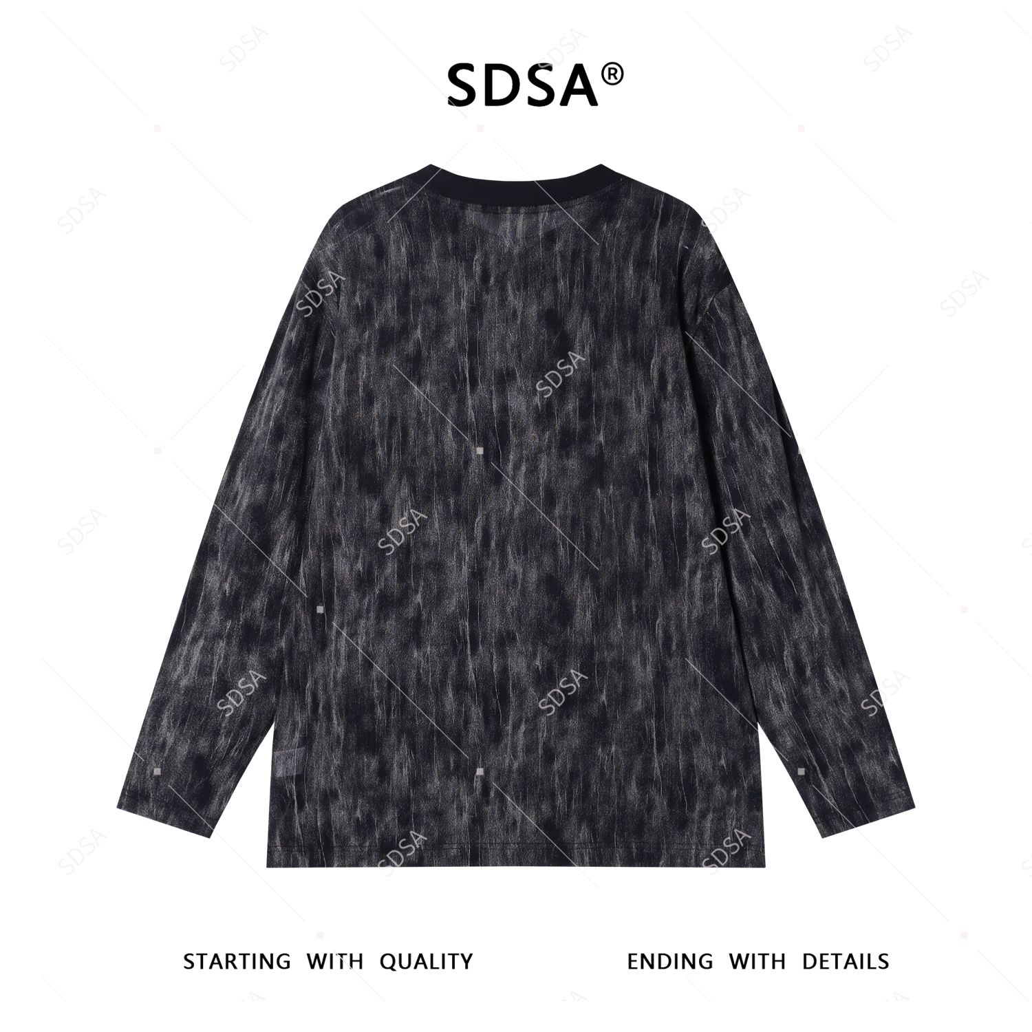 T4357SDSA夏季新款男士痞帅美式复古洒金圆领长袖T恤做旧百搭时尚上衣