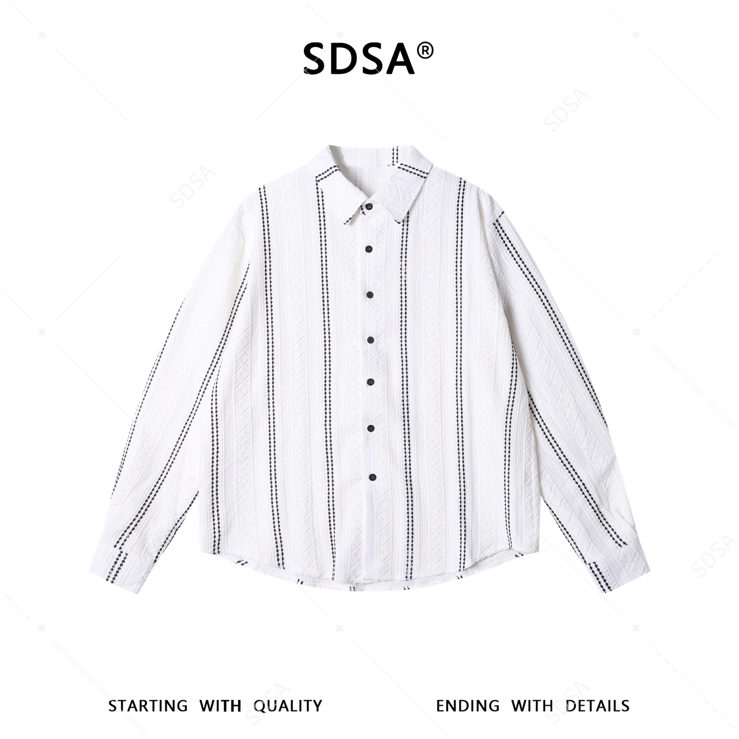 6823SDSA男士秋冬新款痞帅男装时尚菱形撞色提花竖纹设计长袖衬衫百搭