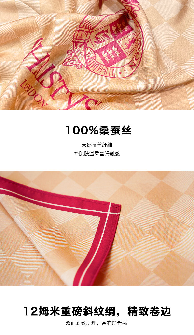 【2026新品】【新品上市】Christys'百年皇室品牌 100%桑蚕丝经典棋盘格小方巾(55*55cm)