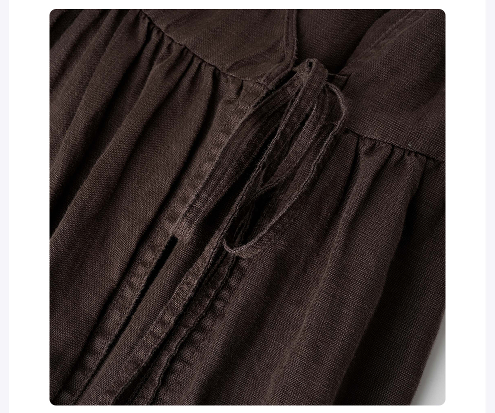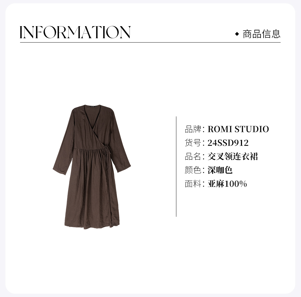ROMI STUDIO“禅意美学”100亚麻砂洗洗水磨毛交叉领连衣裙24SSD912