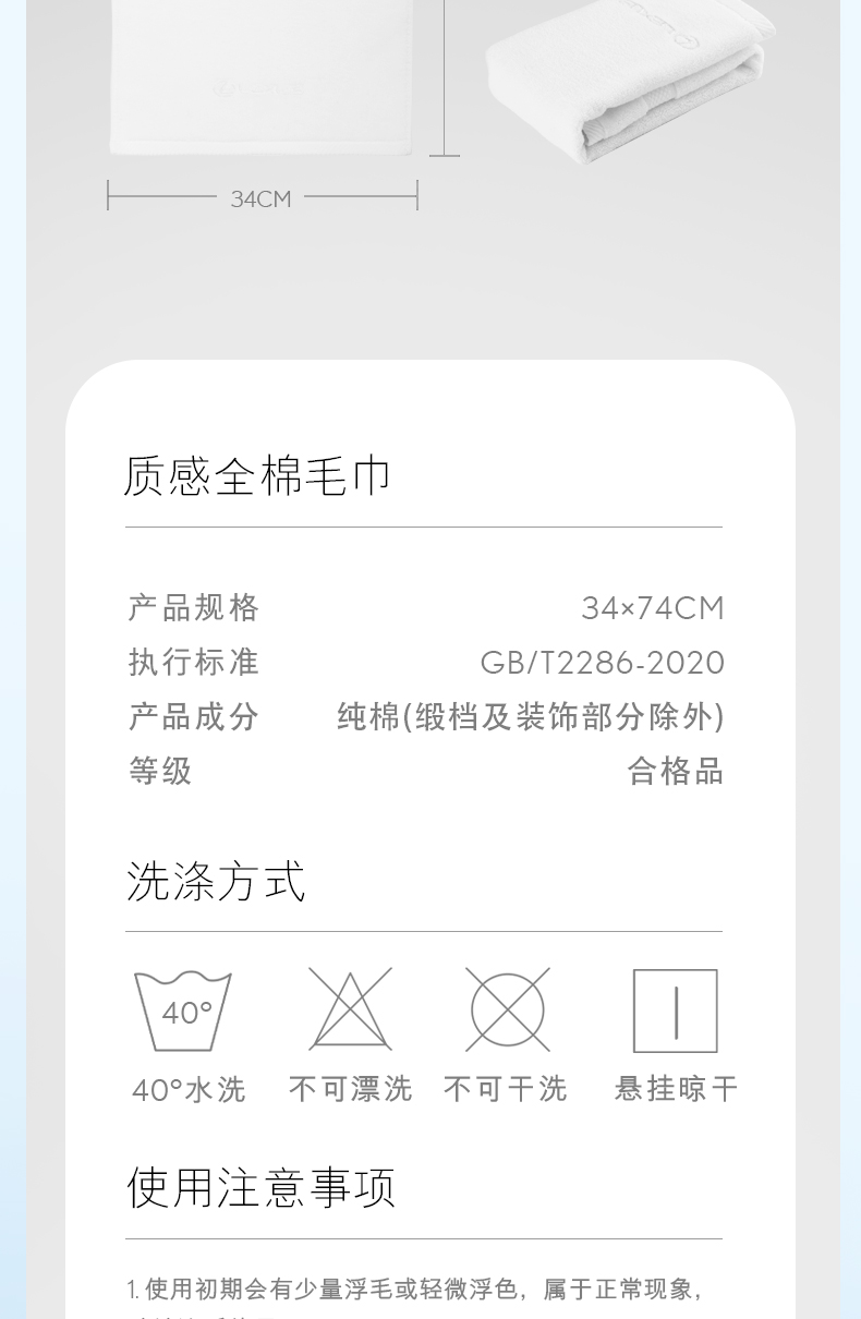 质感全棉毛巾(纯白 34x74)