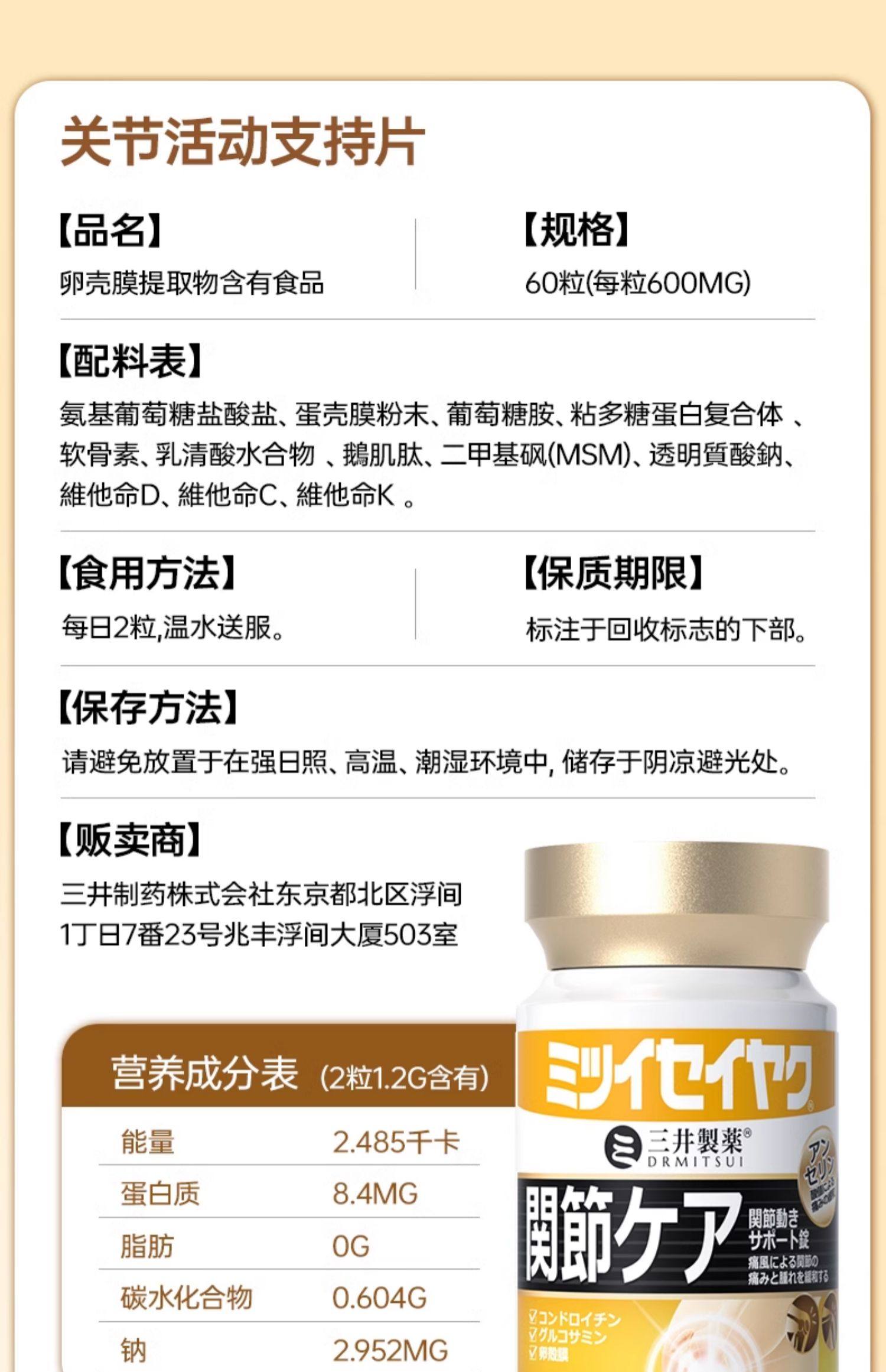 三井制药氨糖软骨素维骨力舒缓关节酸痛肿胀中老年人青少年骨胶原