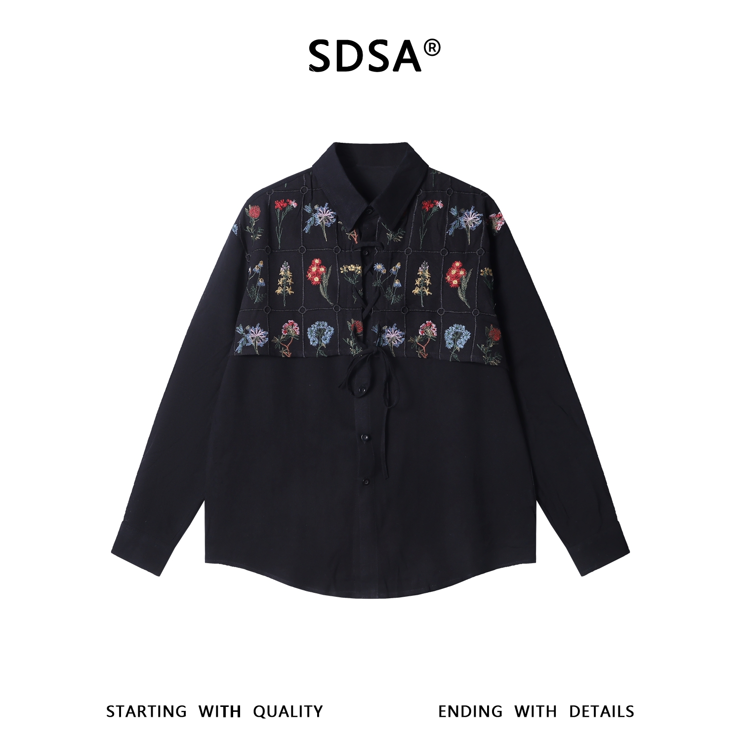 SDSA男士秋冬新款痞帅男装国潮重工彩色刺绣花卉翻领长袖衬衫百搭