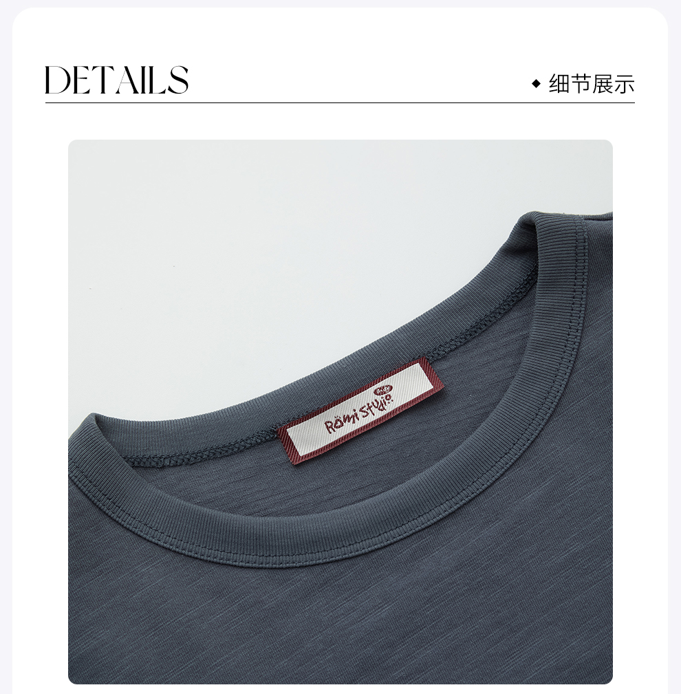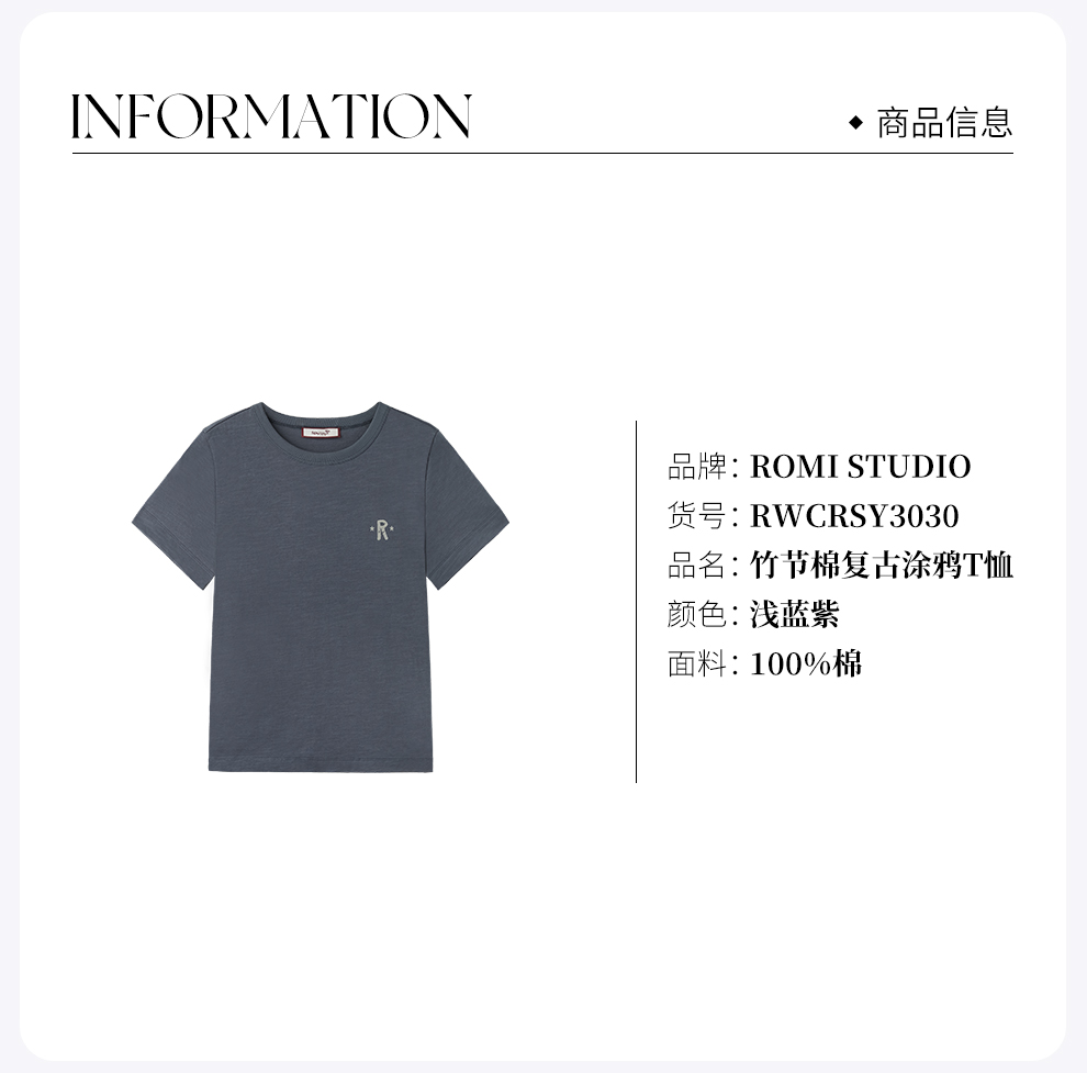 ROMI STUDIO“美式复古”竹节肌理感涂鸦印花圆领短袖T恤RWCRSY3030