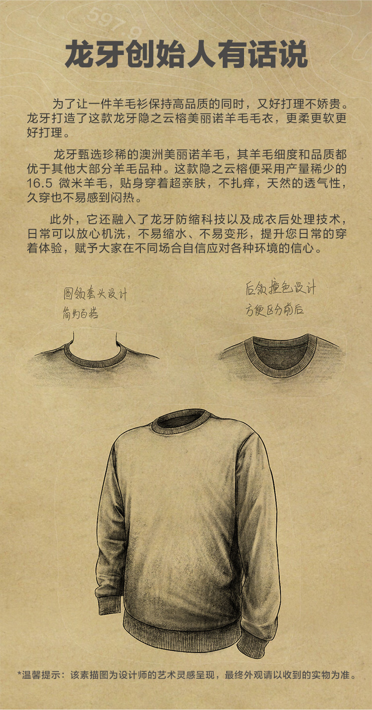 龙牙隐之云榕美丽诺羊毛圆领毛衣