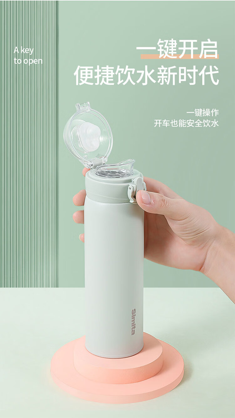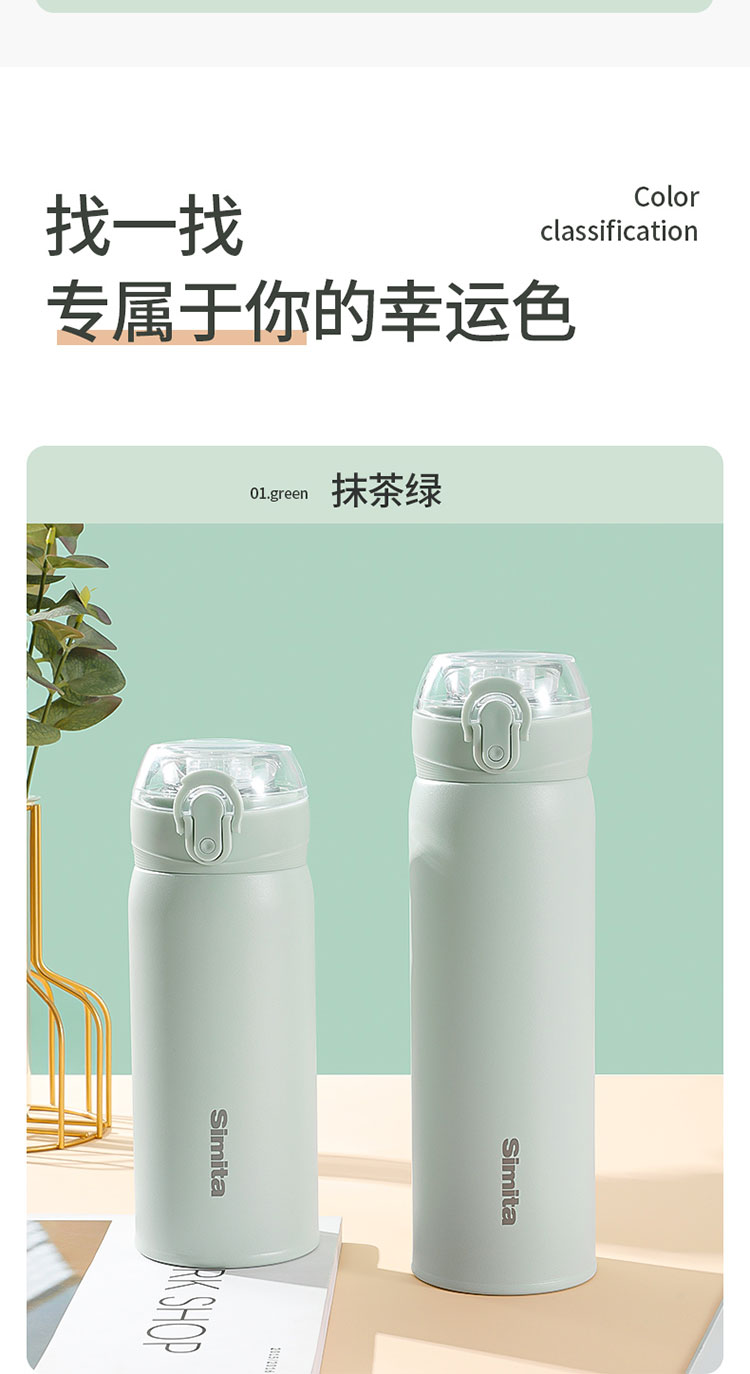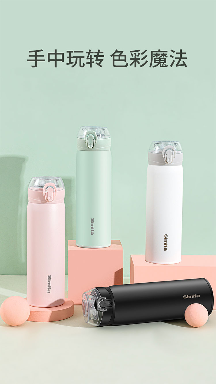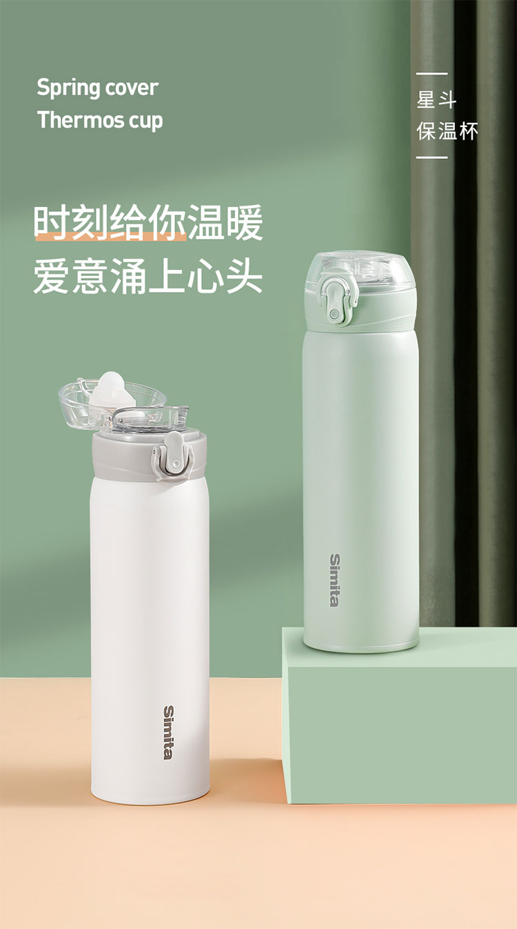 施密特(simita) 保温弹盖316水杯男女士高颜值水杯大容量泡茶杯车载便携杯子 380ML 星斗系列MBW1008-038A/050A