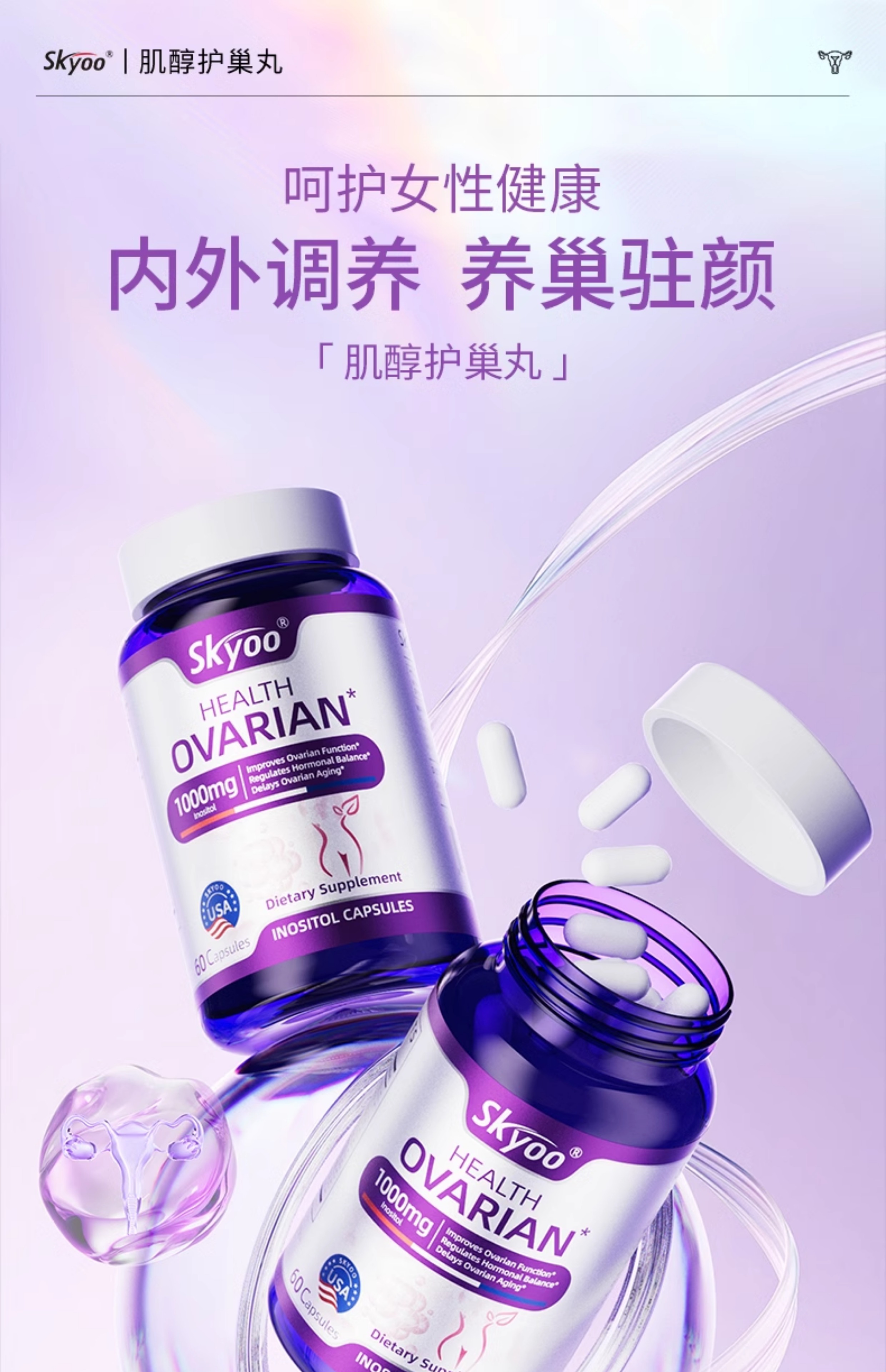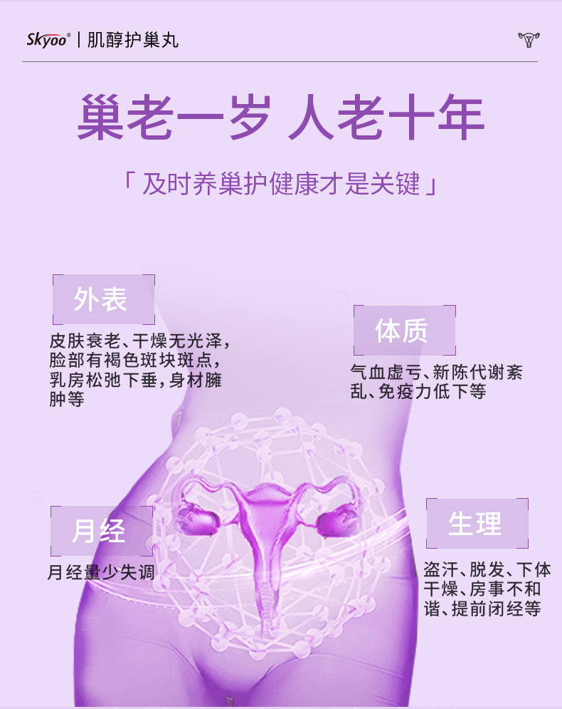 skyoo贵妇护巢丸肌醇胶囊卵巢滋补内调平衡女性保养品美国进口