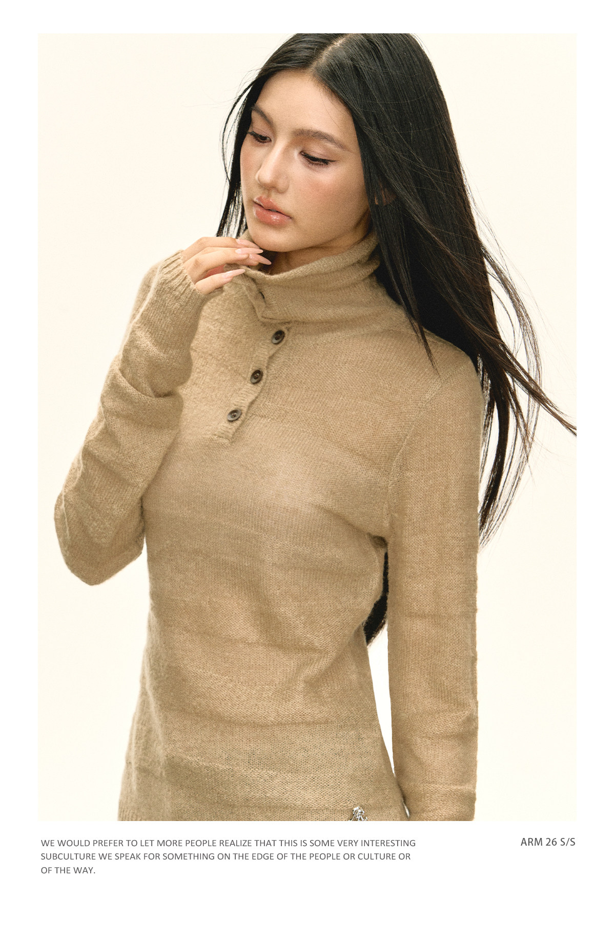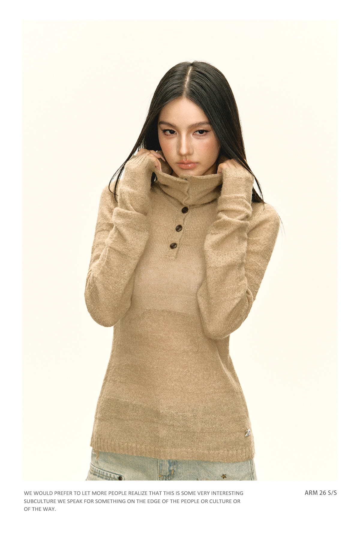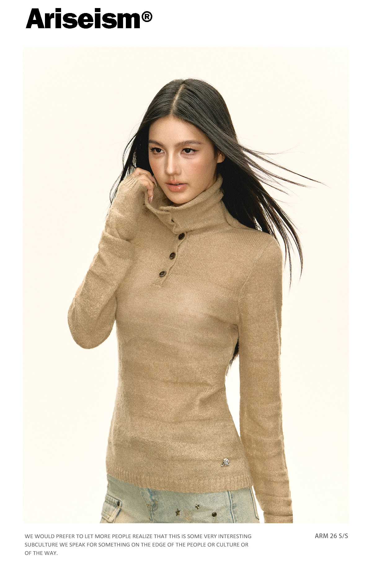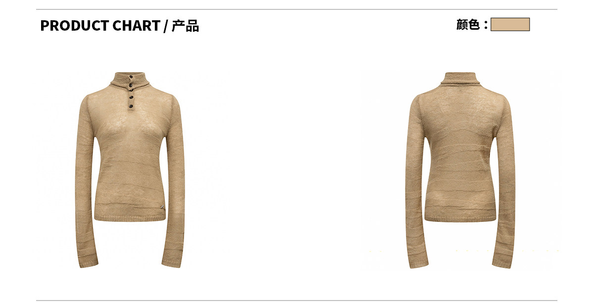 Ariseism 美式复古设计感卡其色纽扣高领针织衫女春秋新款毛衣