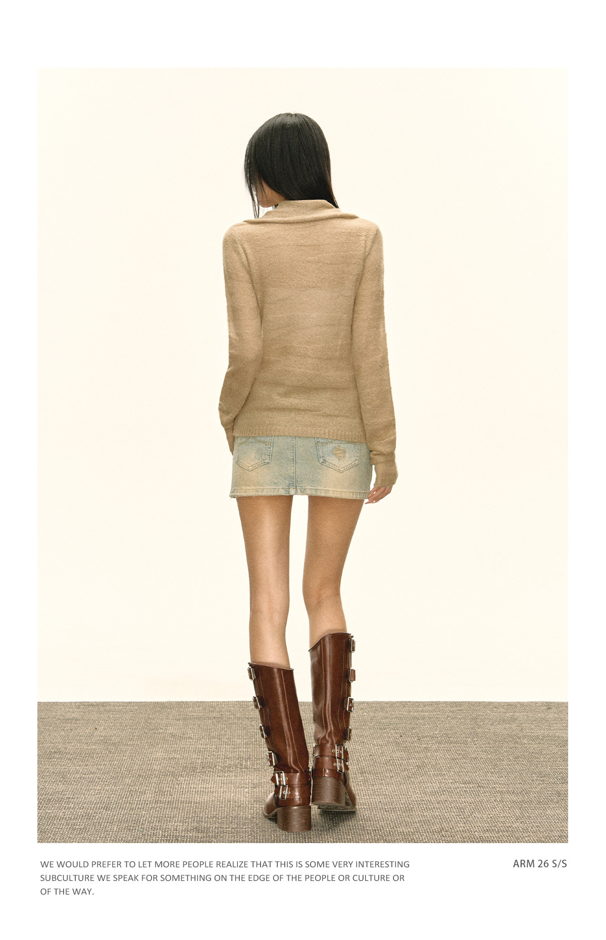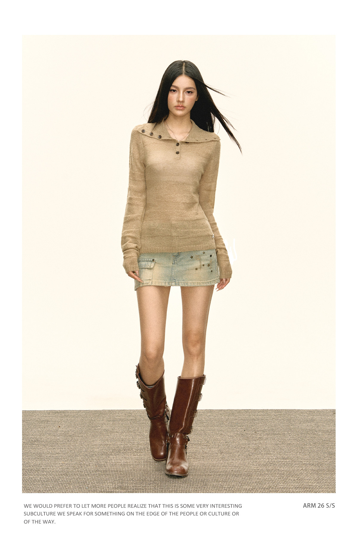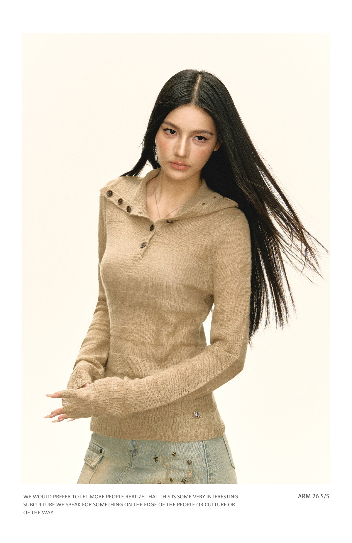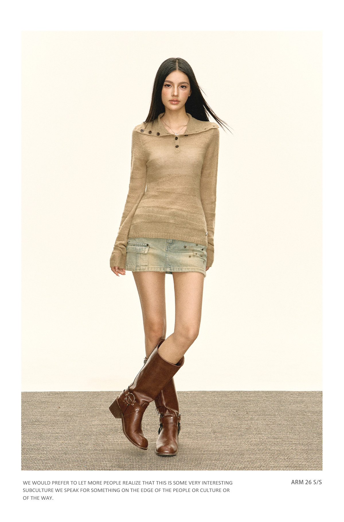 Ariseism 美式复古设计感卡其色纽扣高领针织衫女春秋新款毛衣