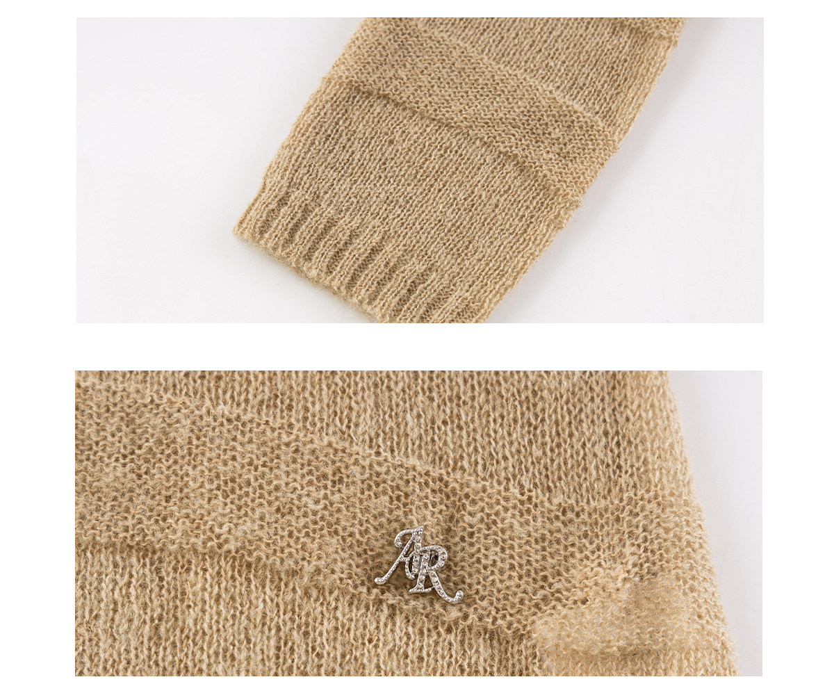 Ariseism美式复古高级感一字肩长袖针织衫女春季新款内搭打底上衣