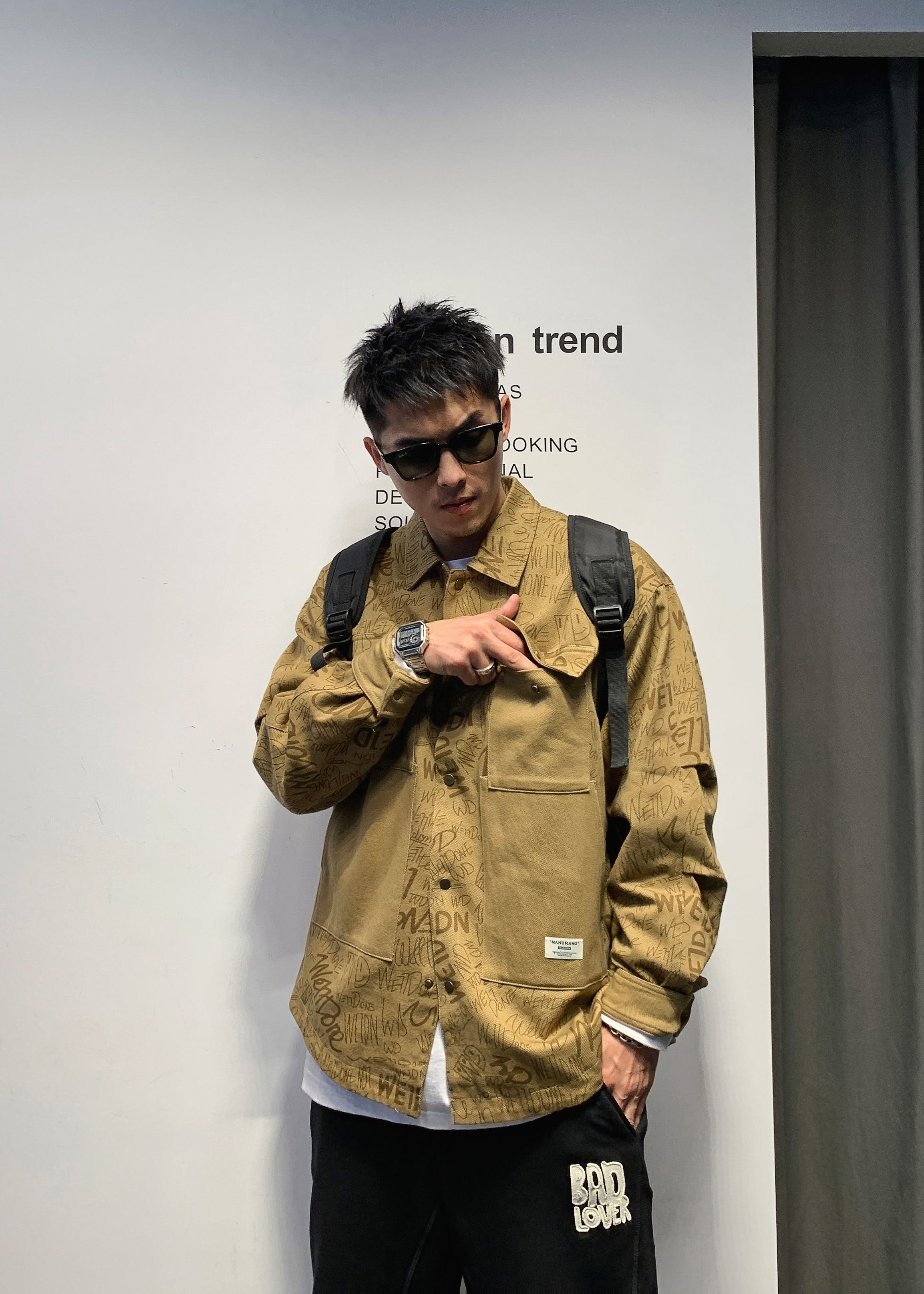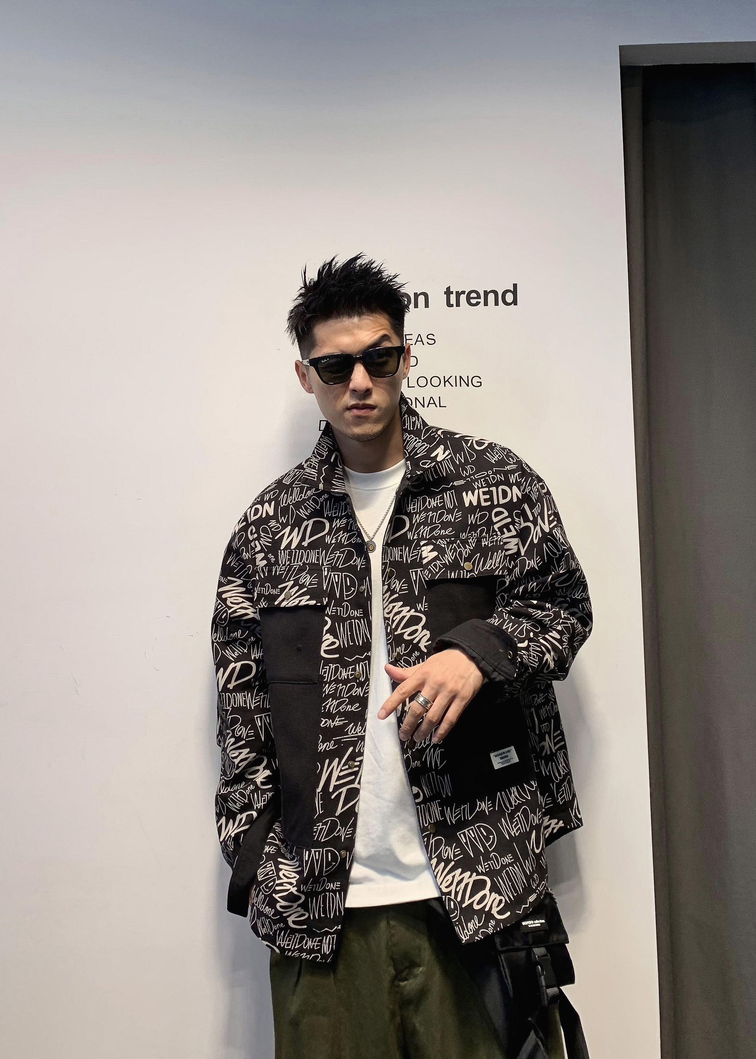 徐太浪字母涂鸦痞帅衬衫男春秋设计感潮牌男装炸街长袖衬衣外套潮