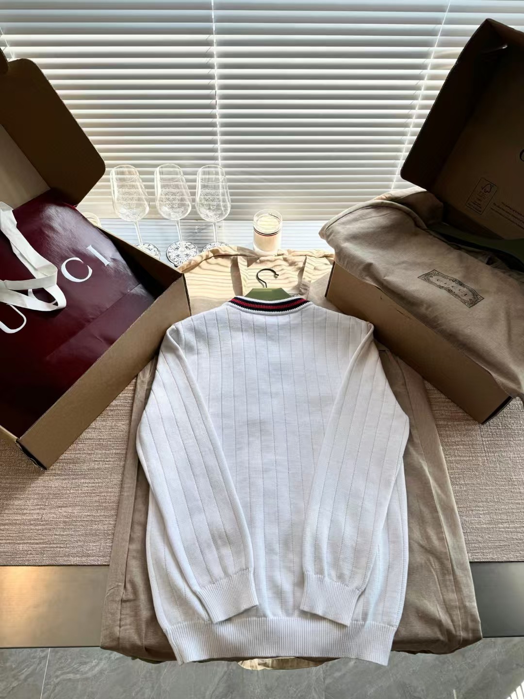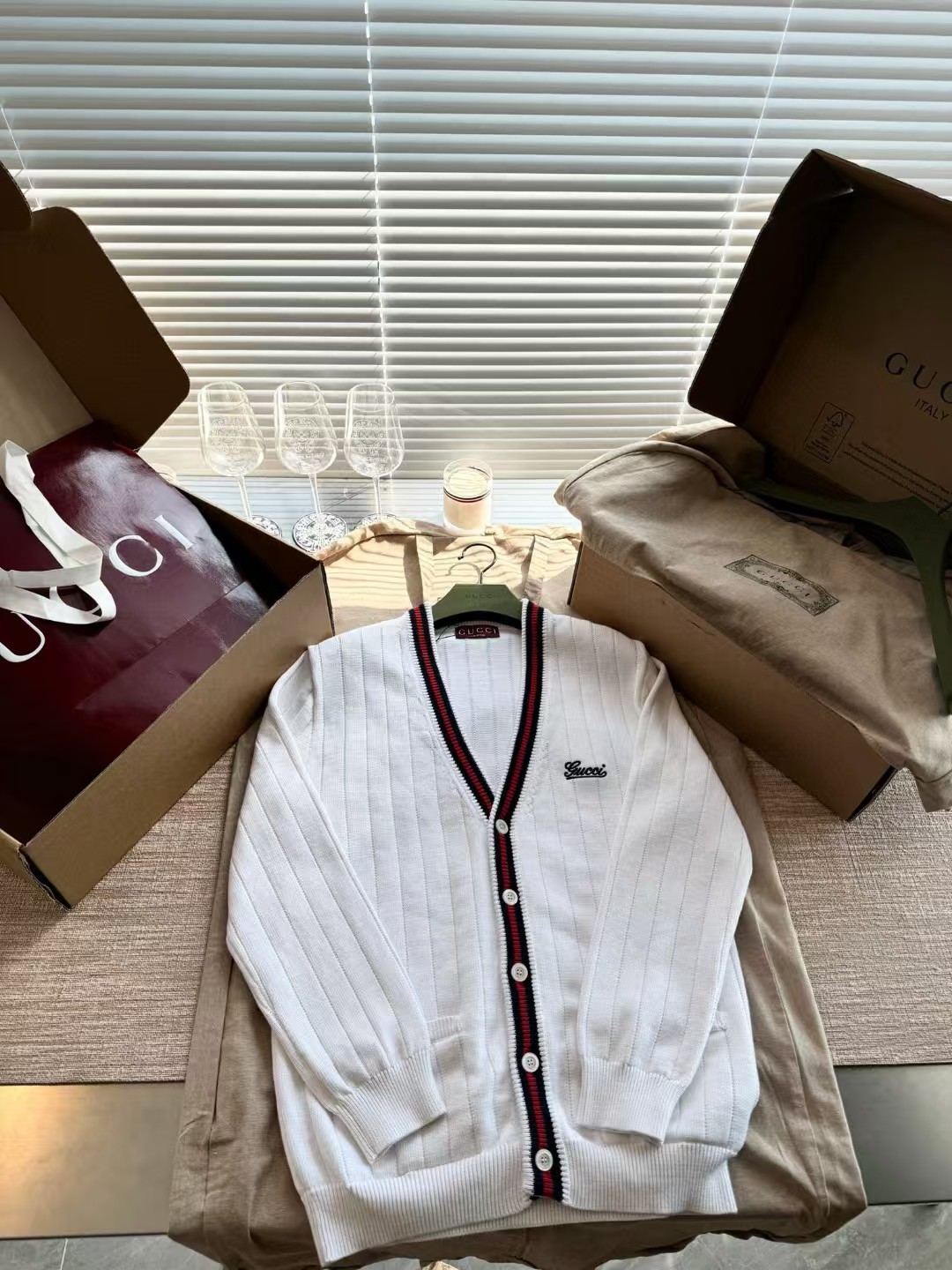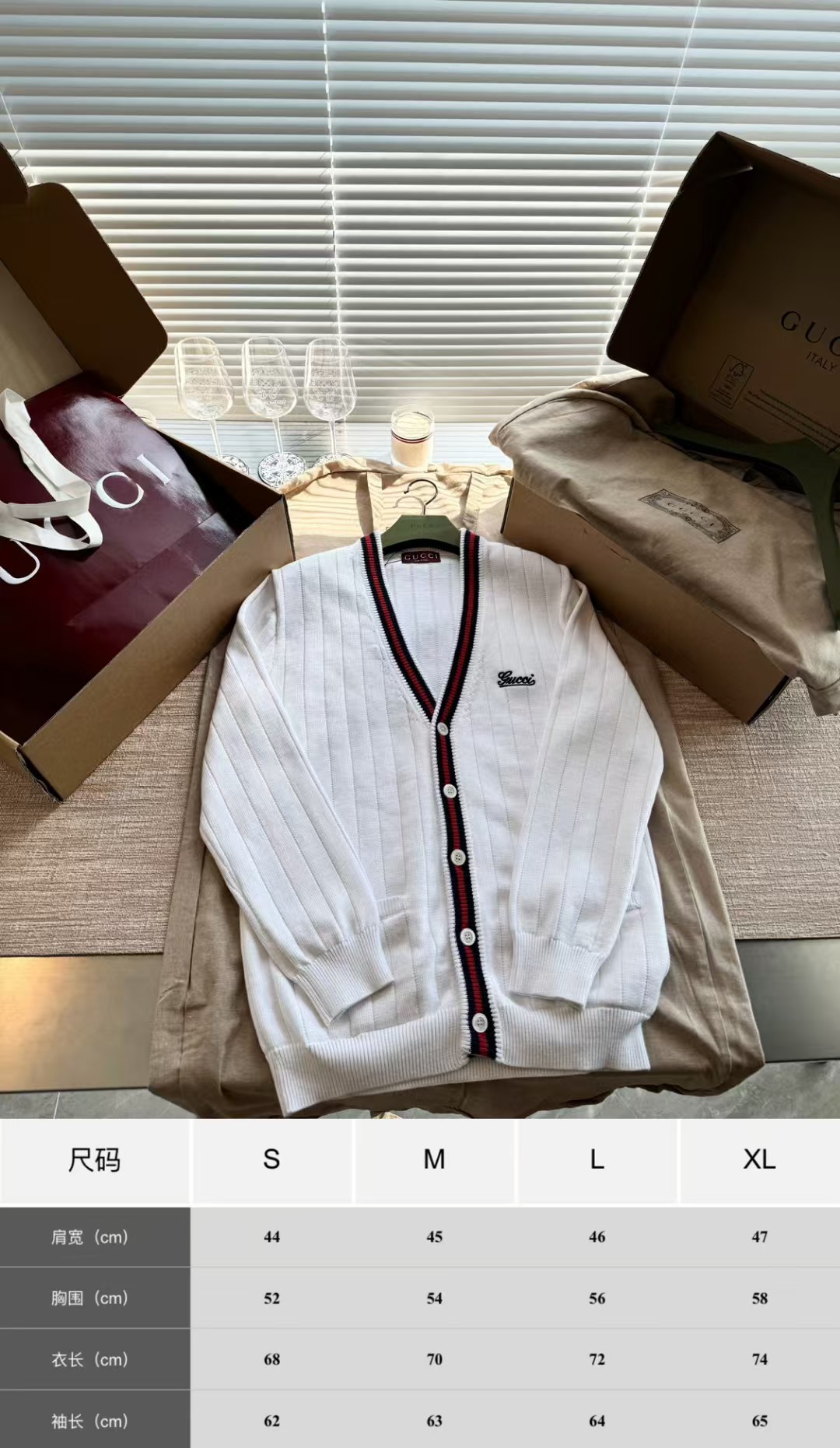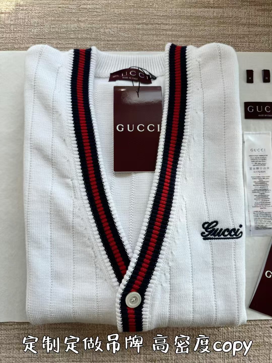 Gucci 24秋冬开衫毛衣🤫视角上十分简洁舒适 单穿内搭都非常好驾驭🫡整件衣服13500购买Zp打造,条纹提花织带采用经典元素满满细节,胸口刺绣logo绣花,纽扣开模定制贝壳扣。真正做到1:1copy 闭眼入 码数:S M L XL