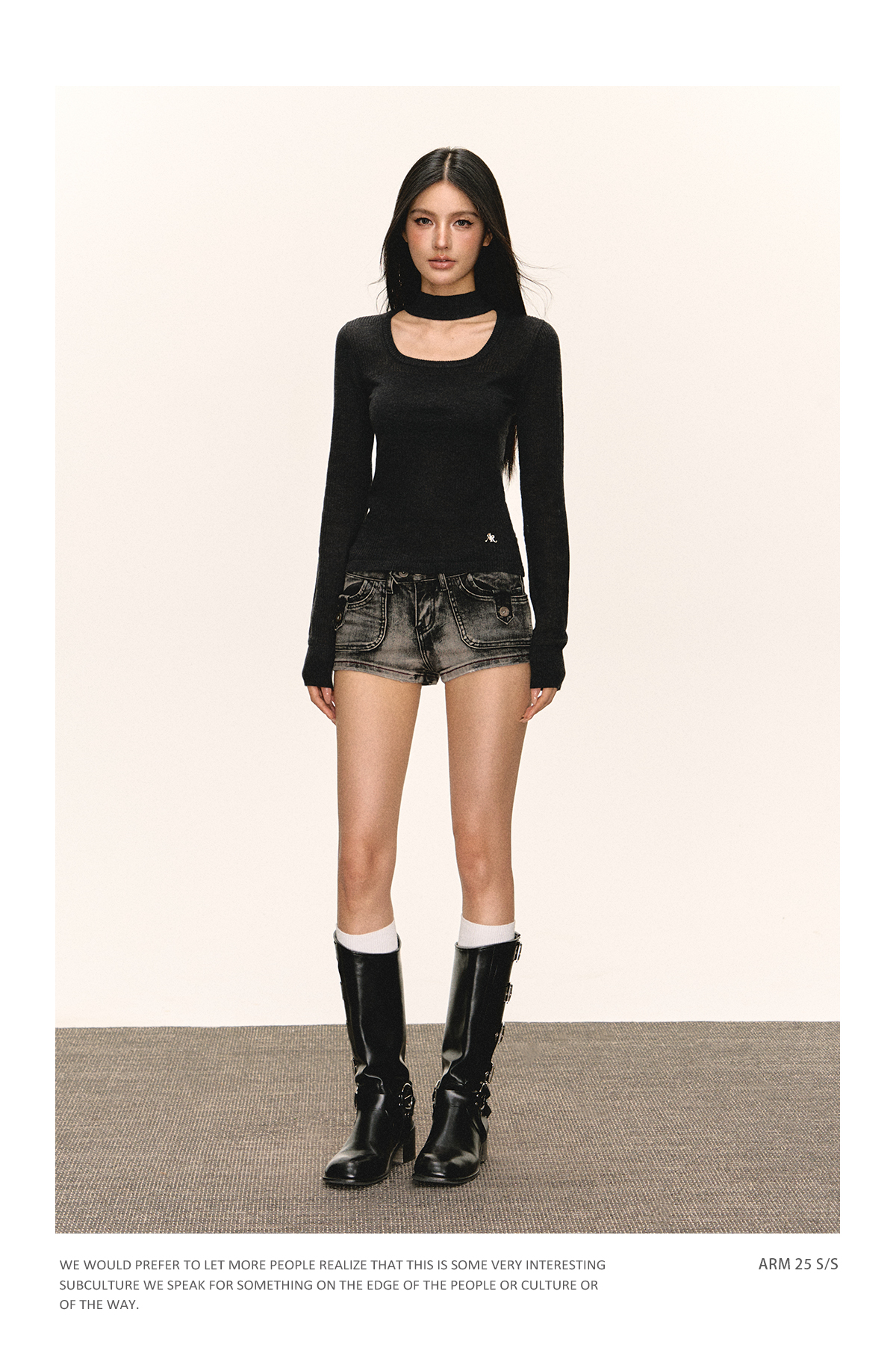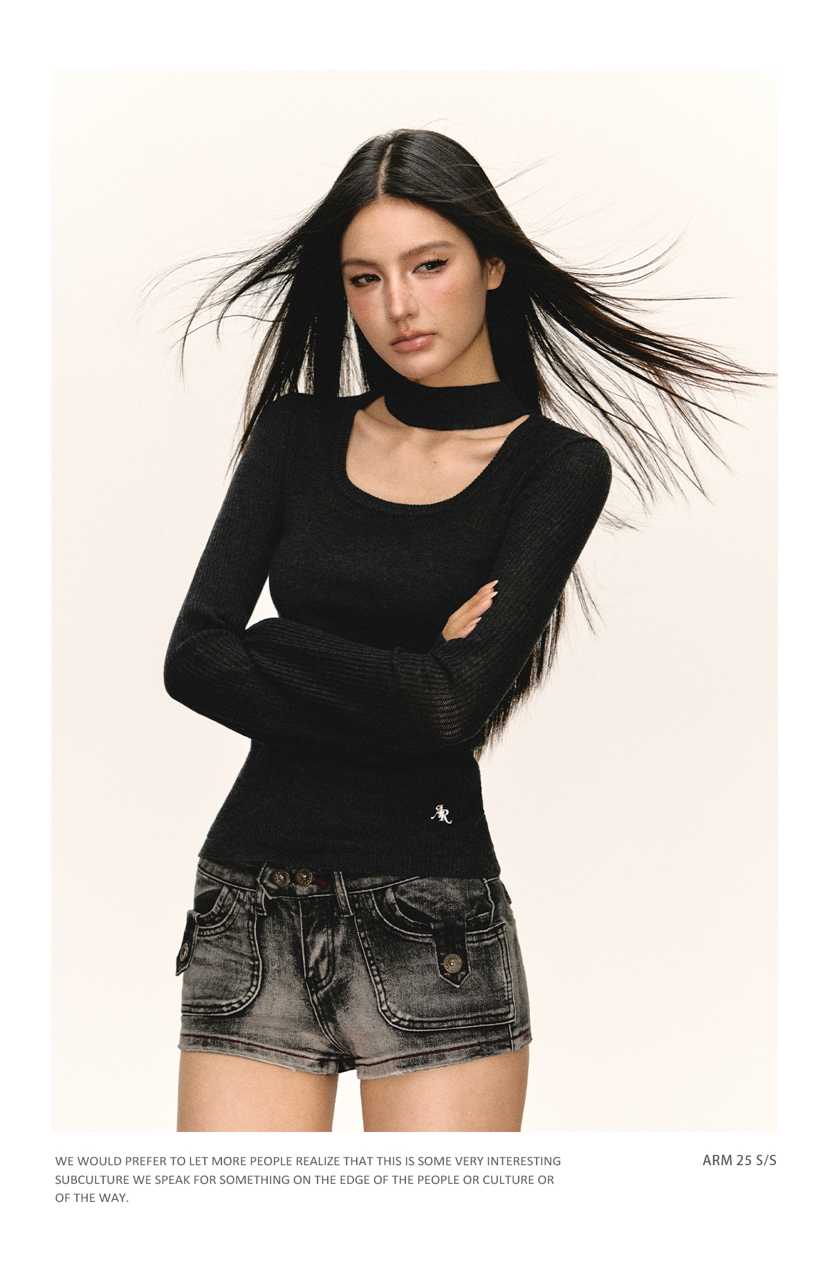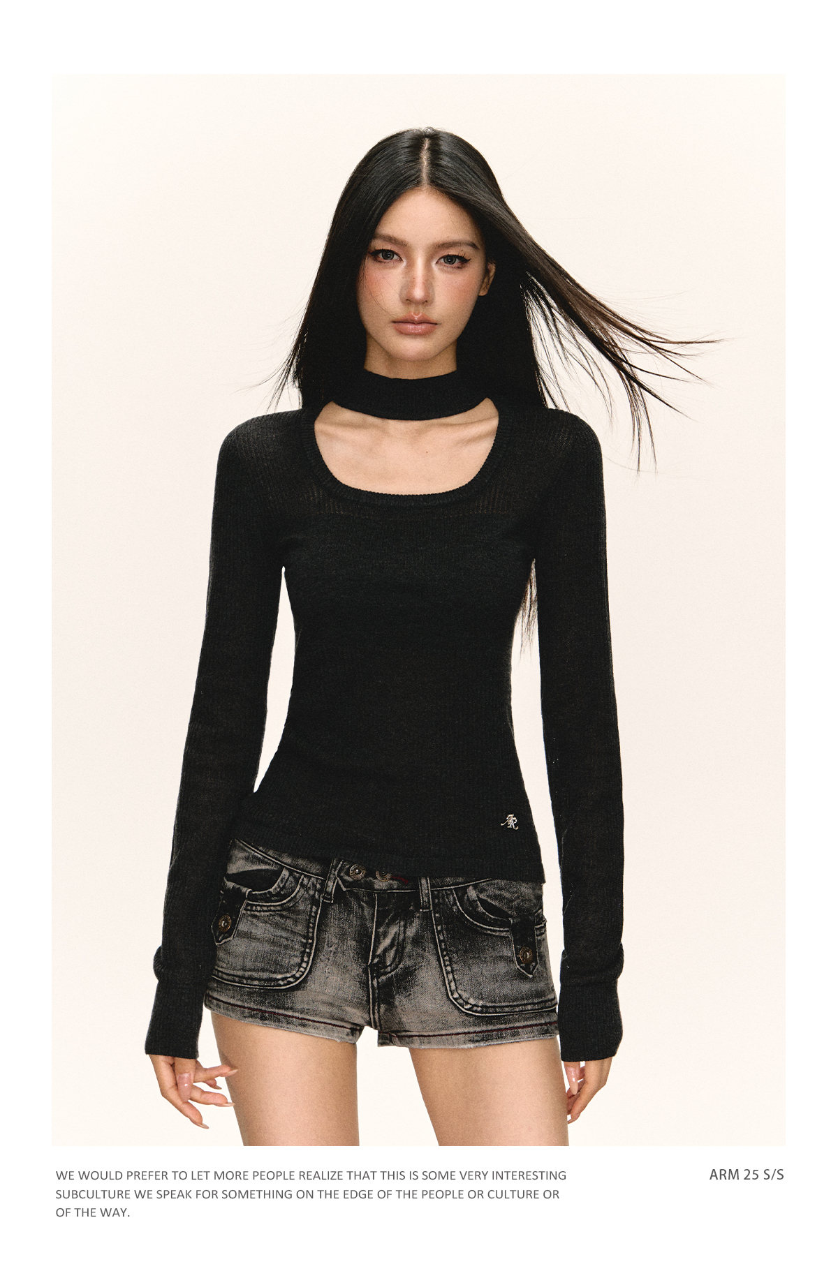 Ariseism 圆领短款长袖针织衫女春季新款内搭上衣修身毛衣打底衫
