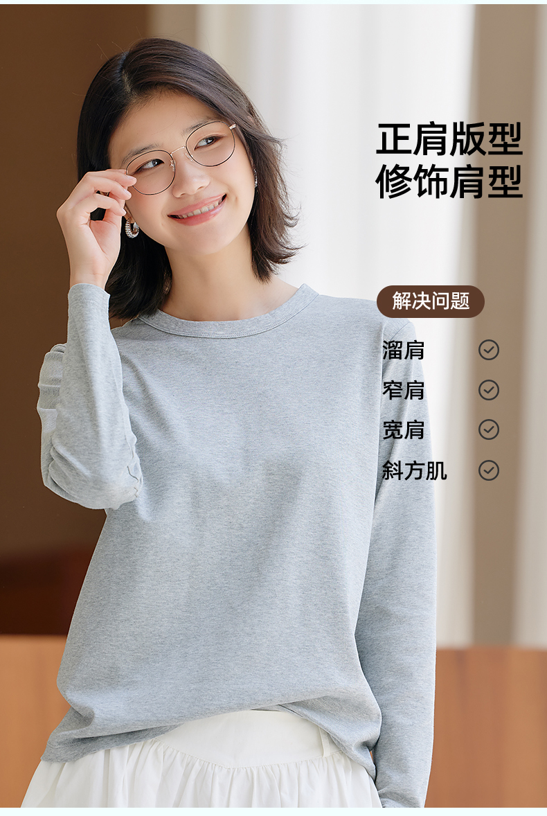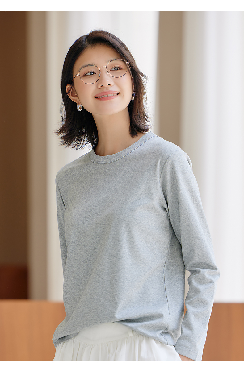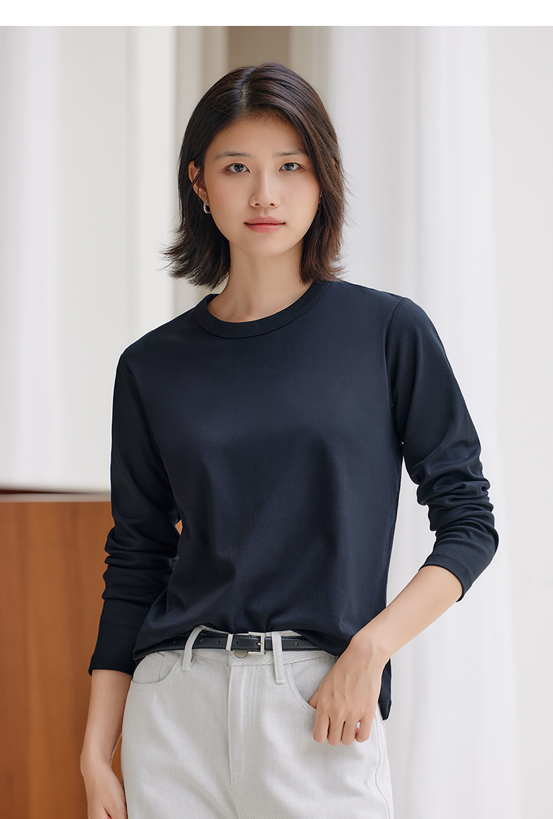 【门店同款】极简风全棉女180G重磅柔软圆领百搭长袖T恤1Q1222207