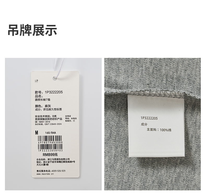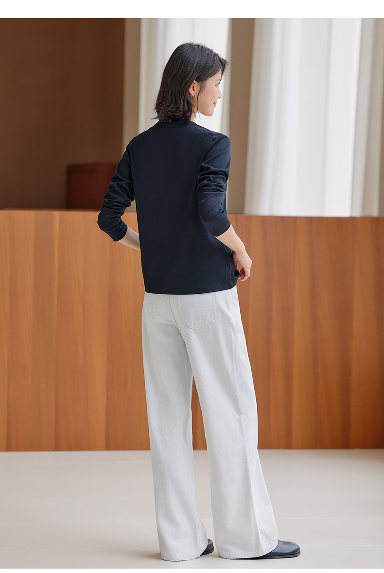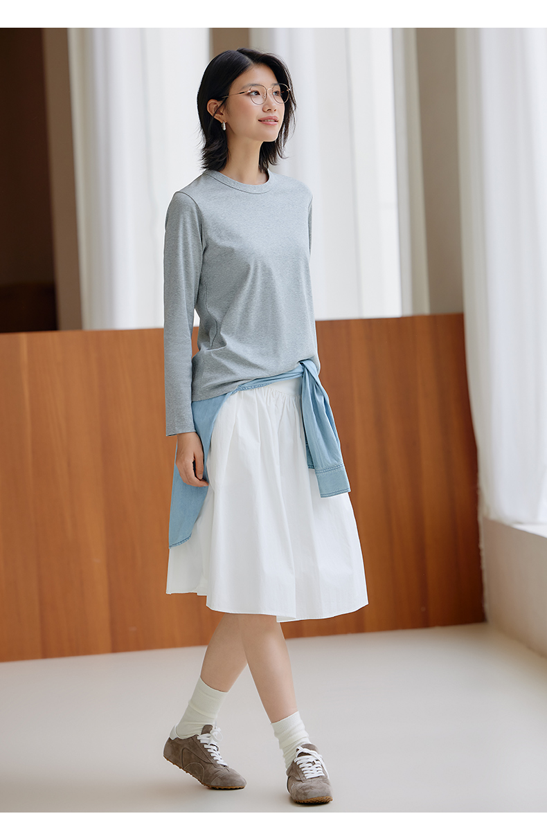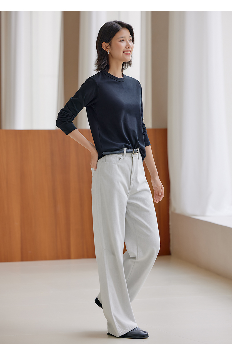 【门店同款】极简风全棉女180G重磅柔软圆领百搭长袖T恤1Q1222207
