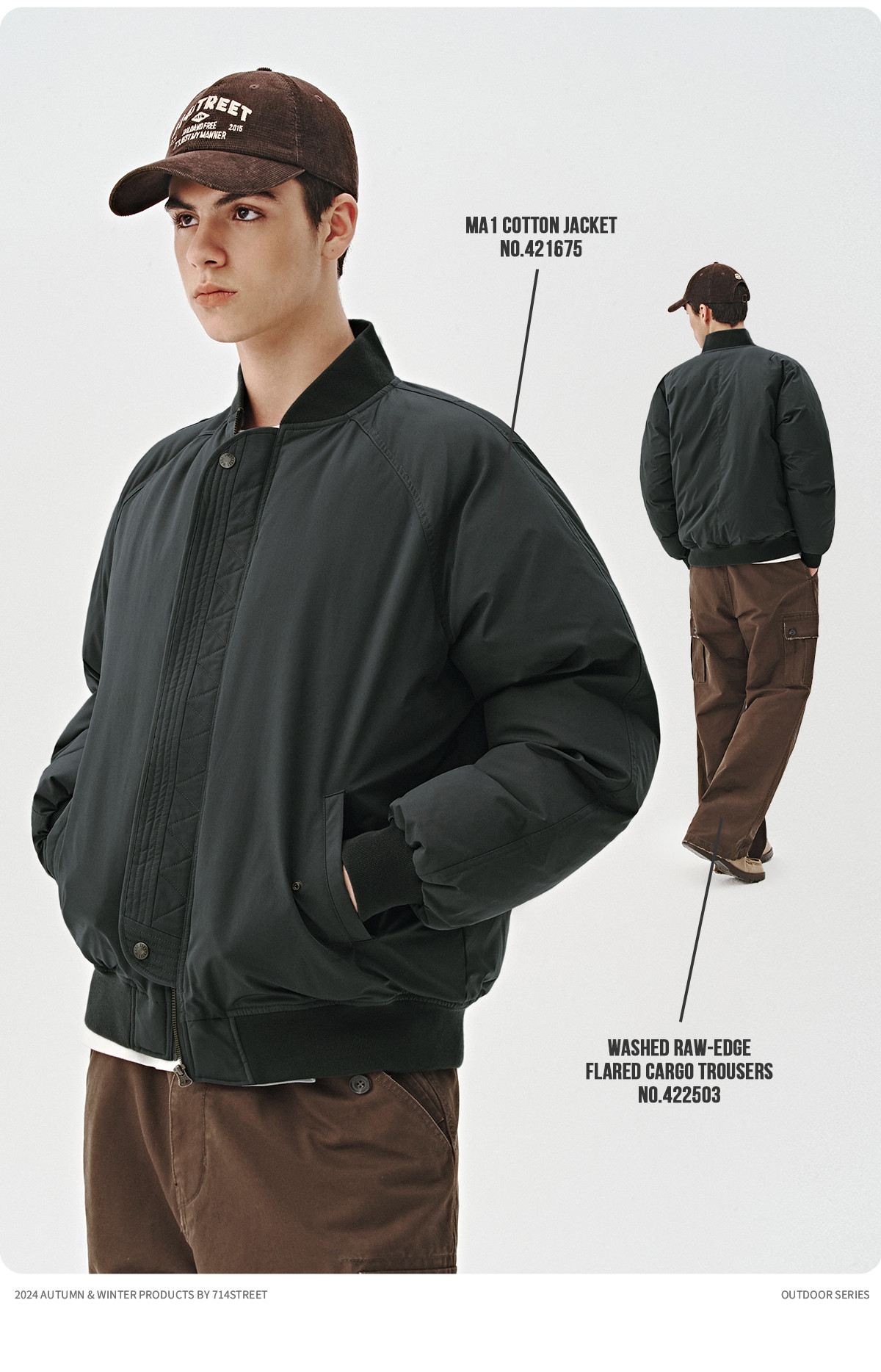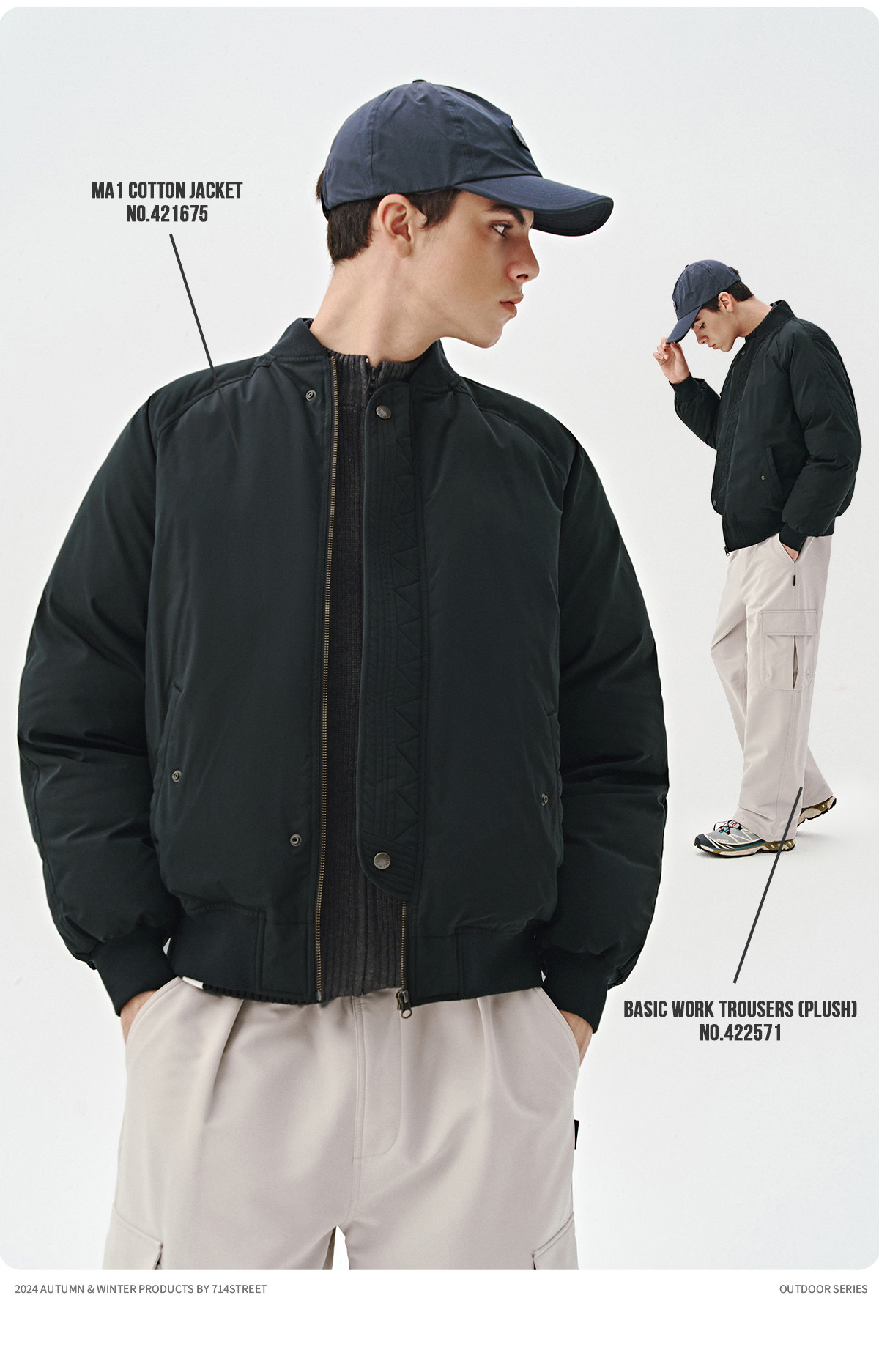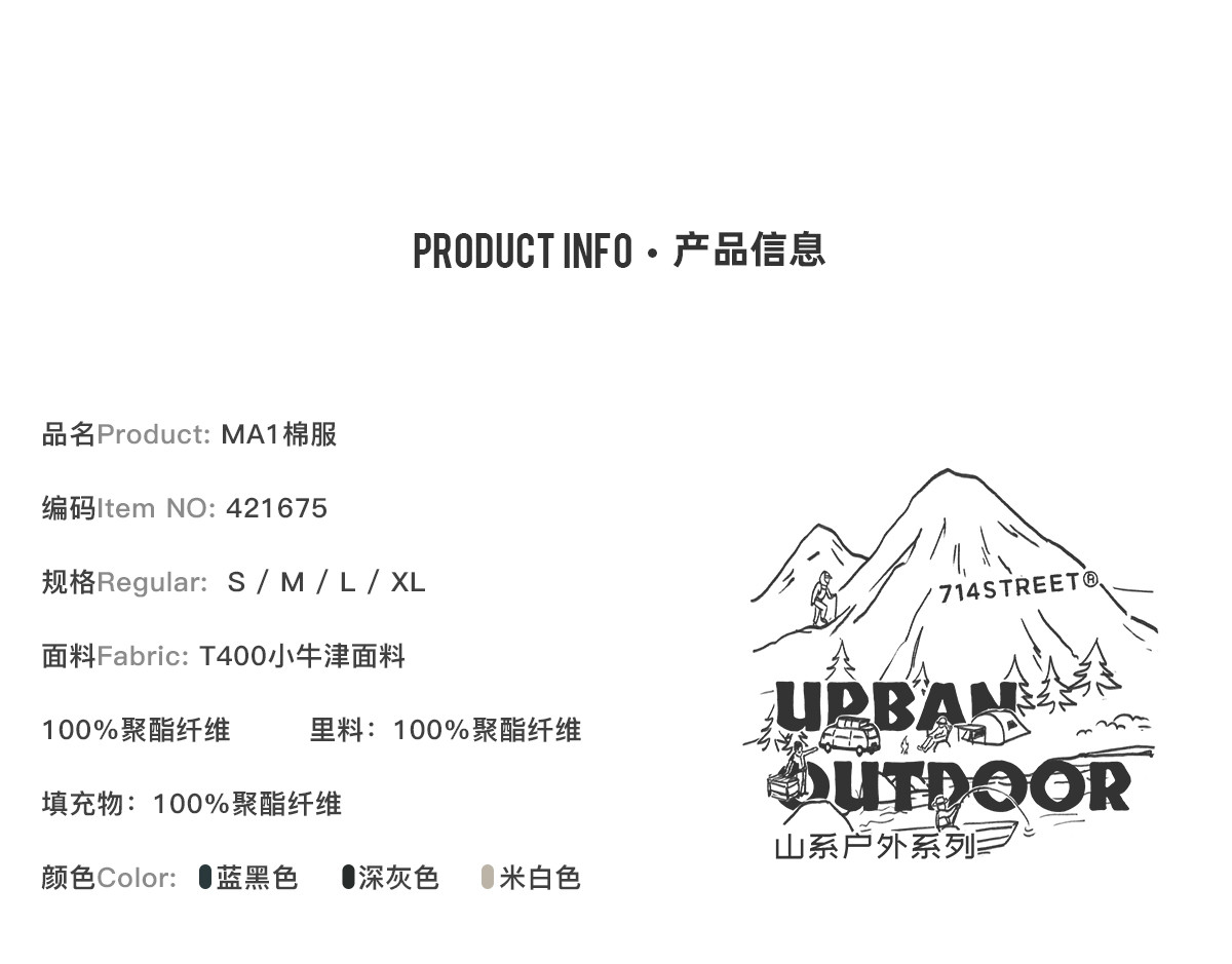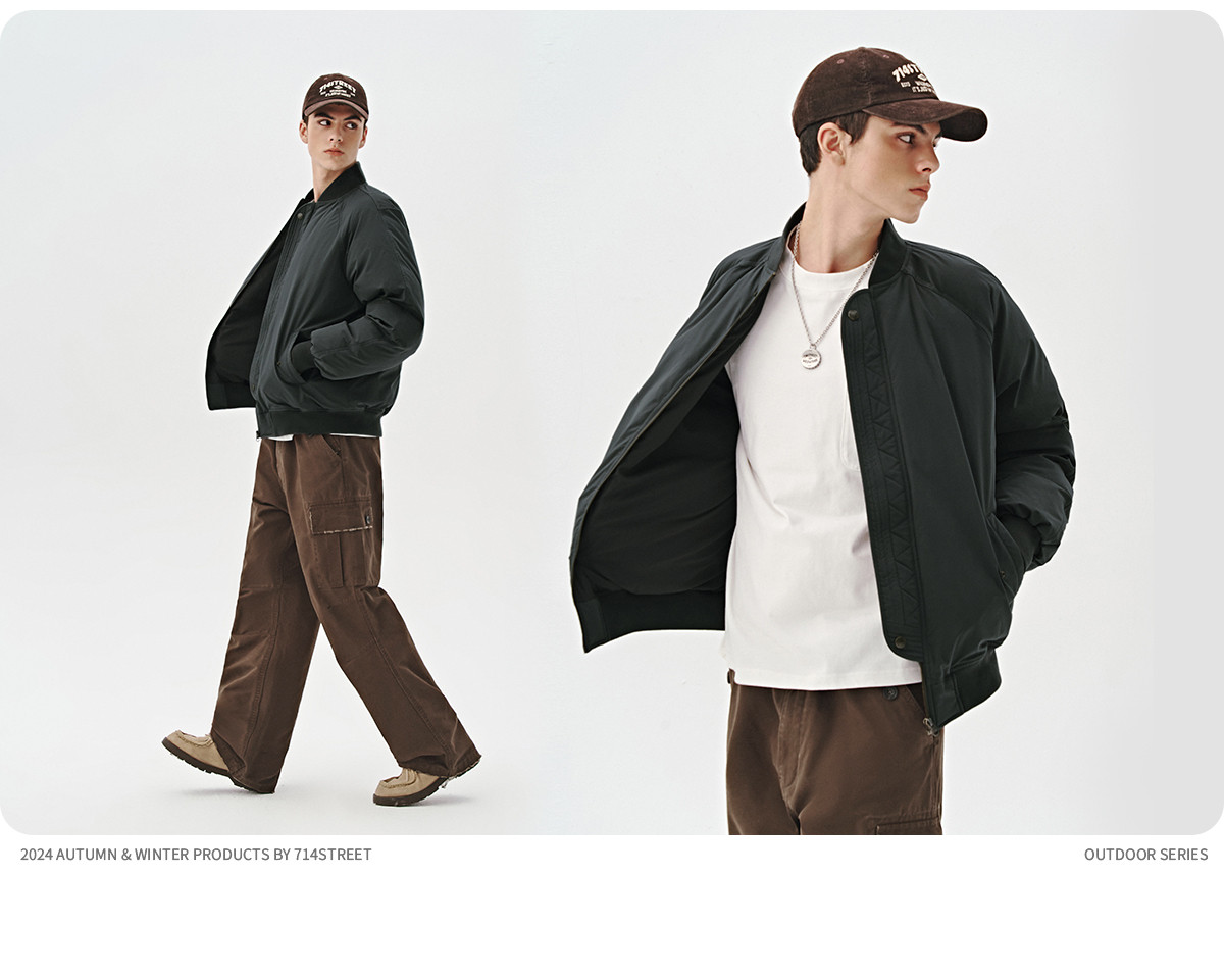 714street美式复古ma1飞行员夹克冬季新款立领棉服宽松短款外套男