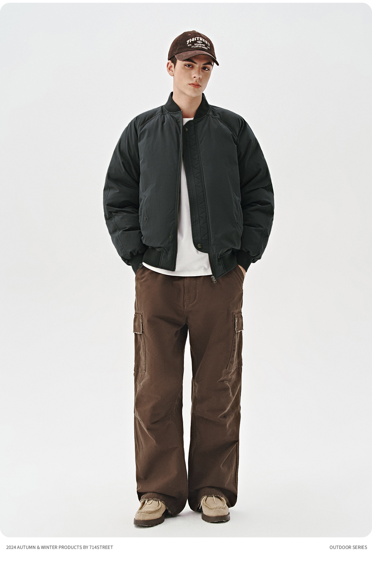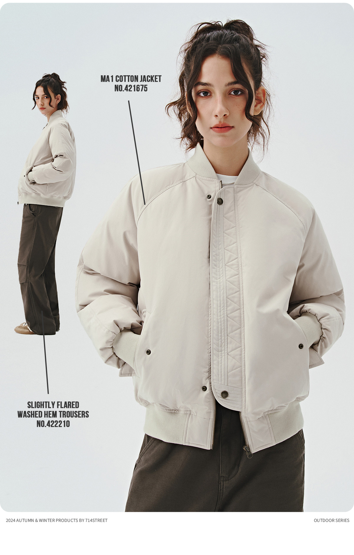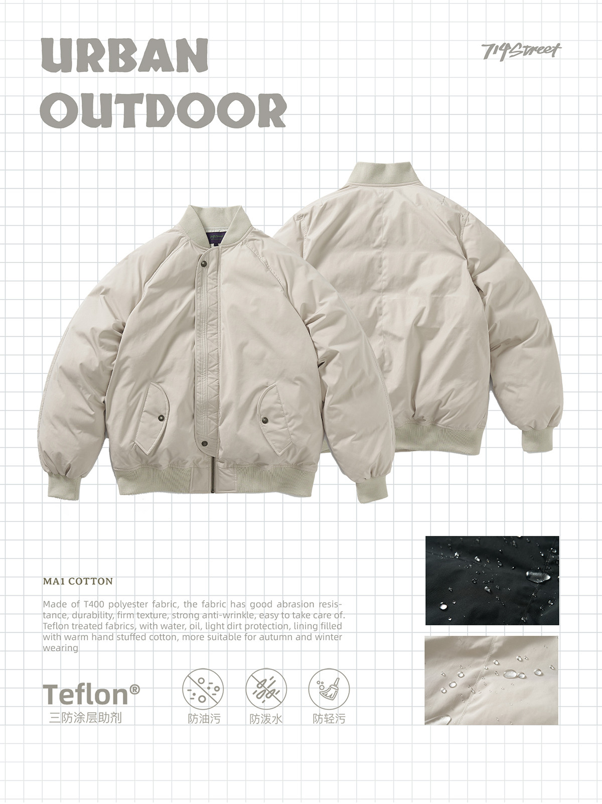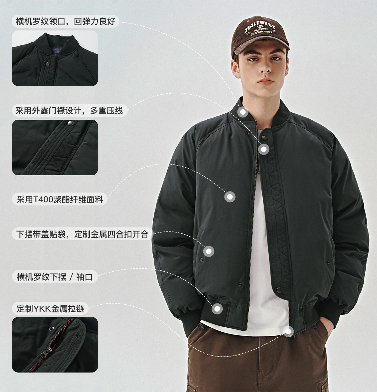 714street美式复古ma1飞行员夹克冬季新款立领棉服宽松短款外套男