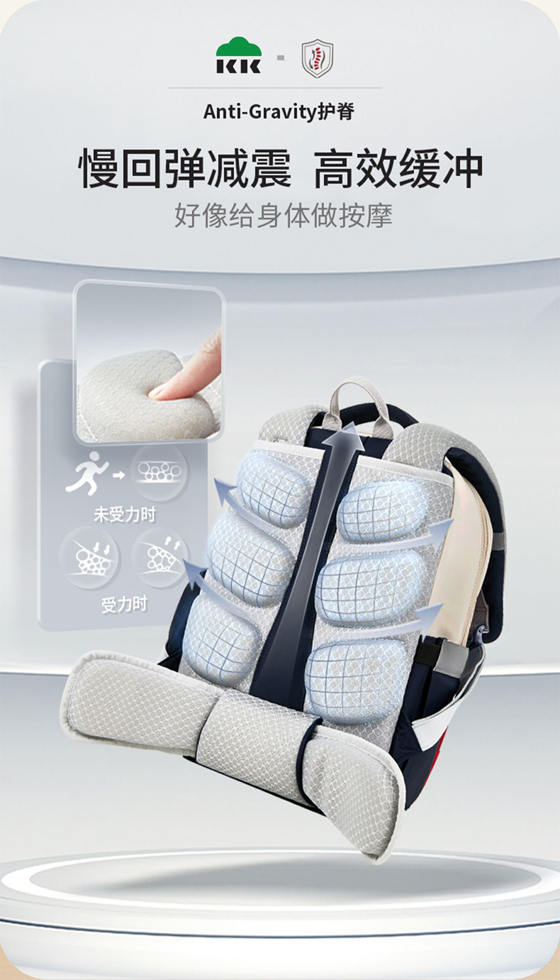 4、高弹蜂巢背幅,回弹缓震均匀受力