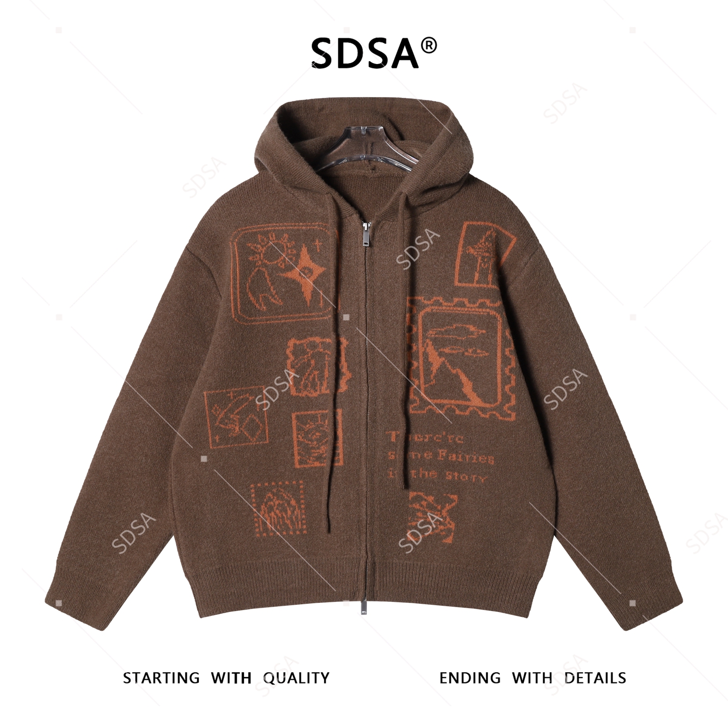 72633SDSA秋冬新款痞帅男装撞色趣味图案拉链连帽毛衣百搭开衫针织衫