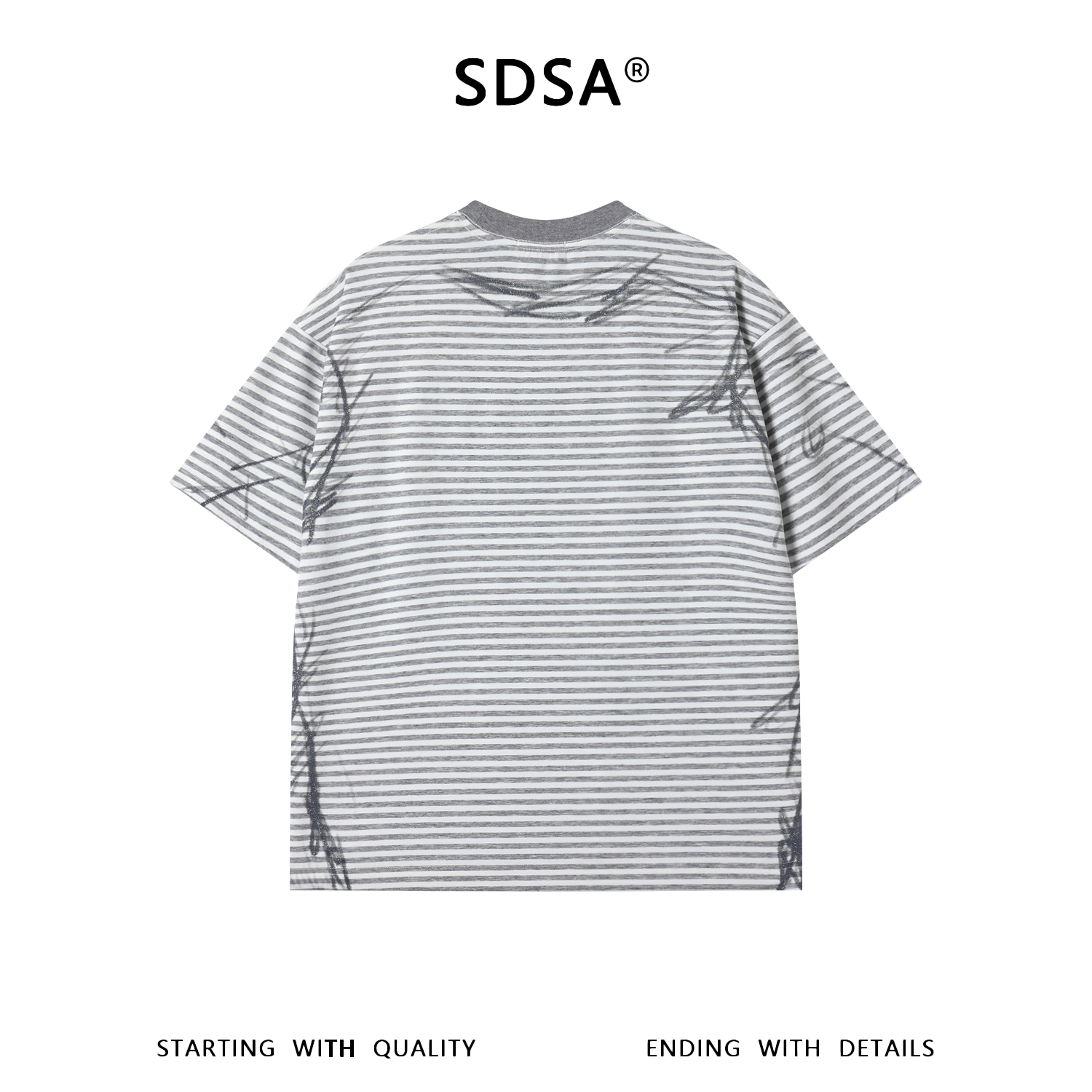 SDSA男装2026新款高贵轻奢手绘涂鸦线条条纹宽松短袖T恤百搭休闲