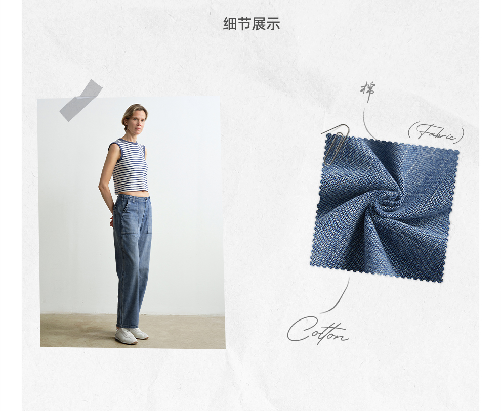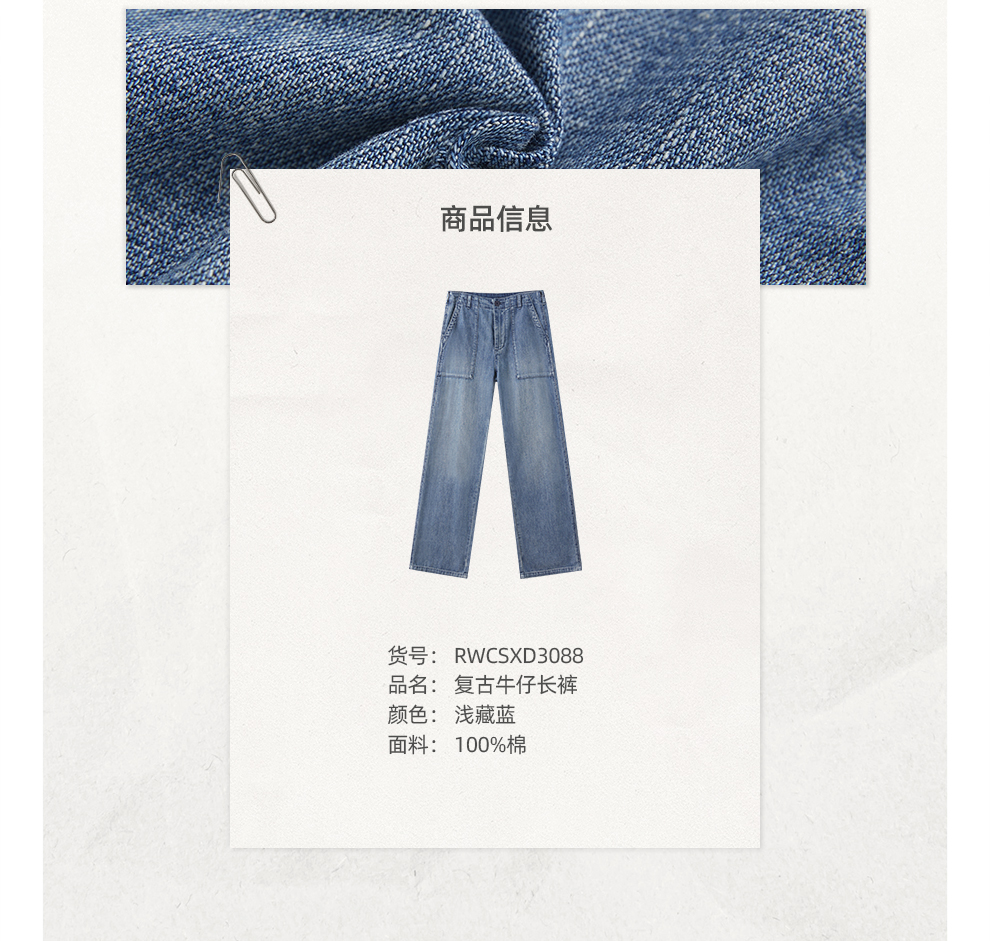 ROMI STUDIO“简约复古”舒适纯棉中低腰工装直筒牛仔裤 RWCSXD3088