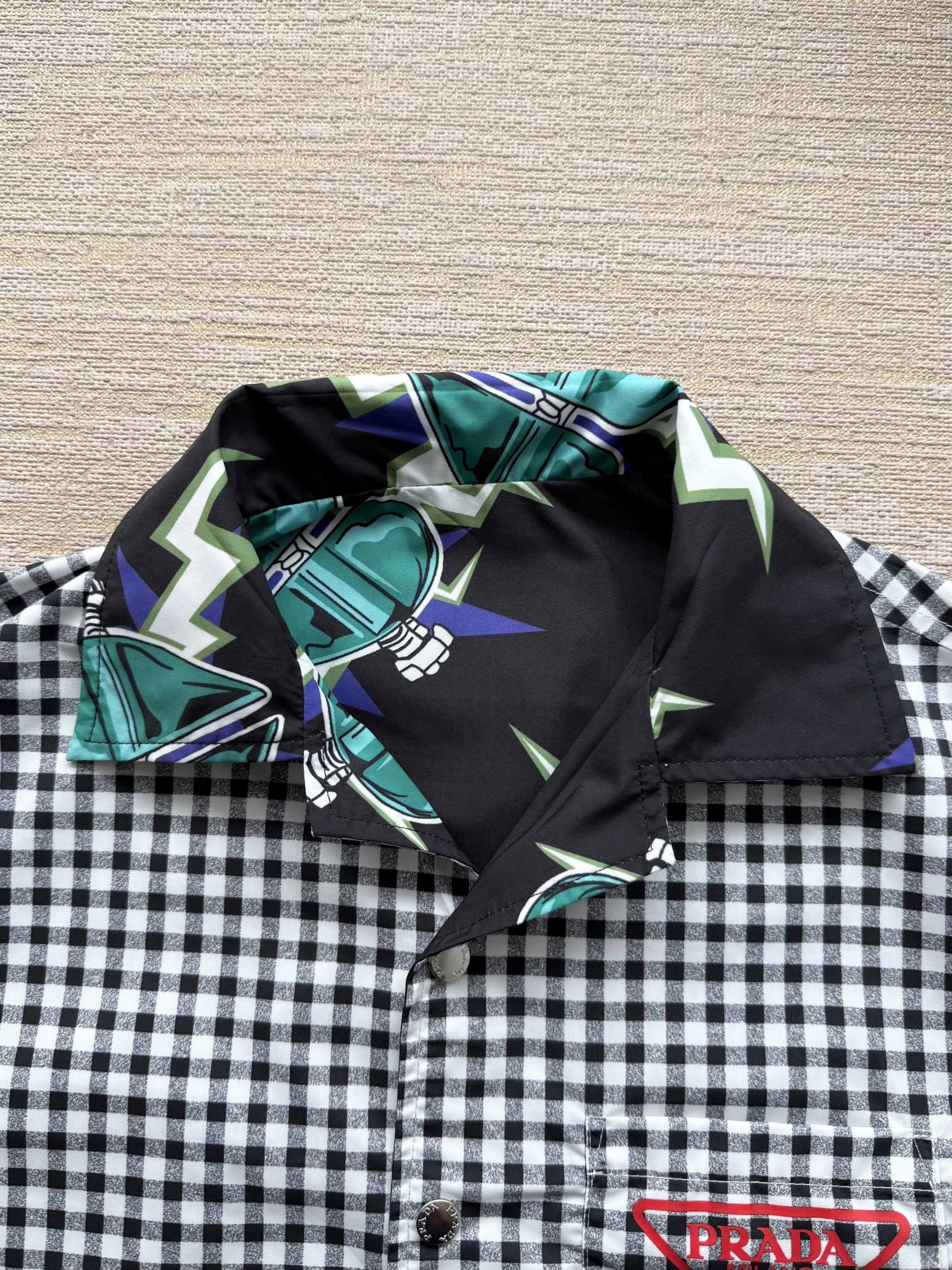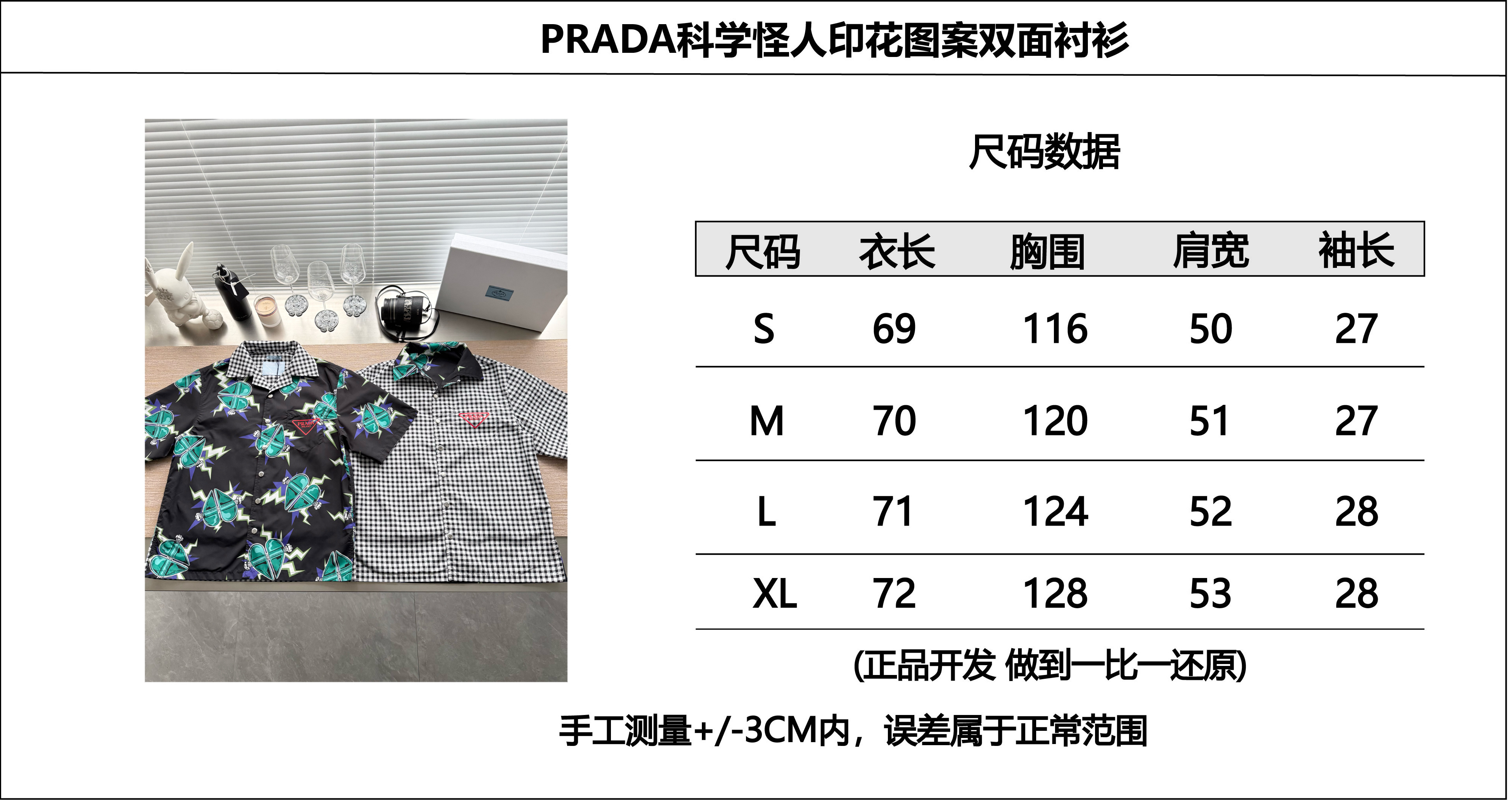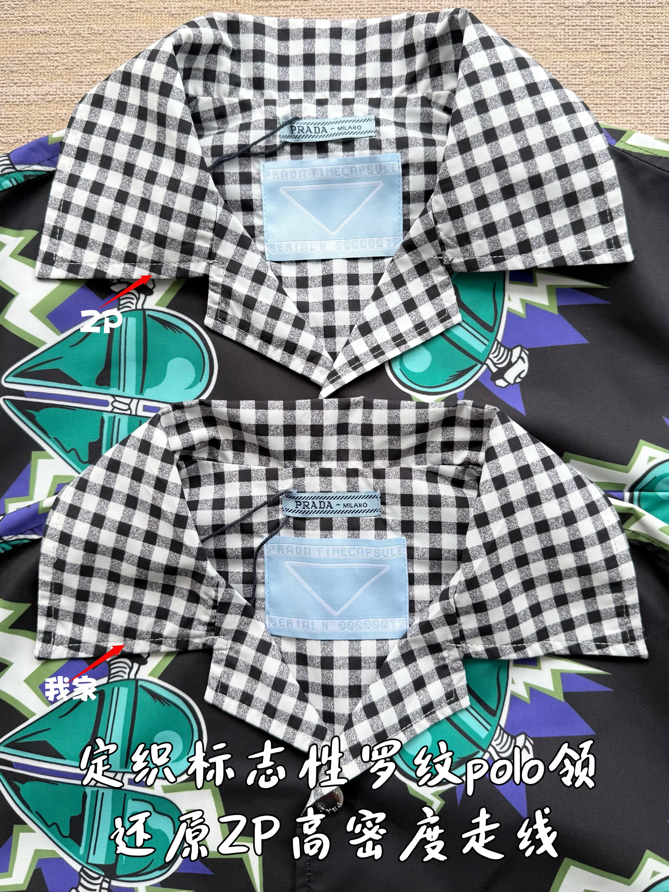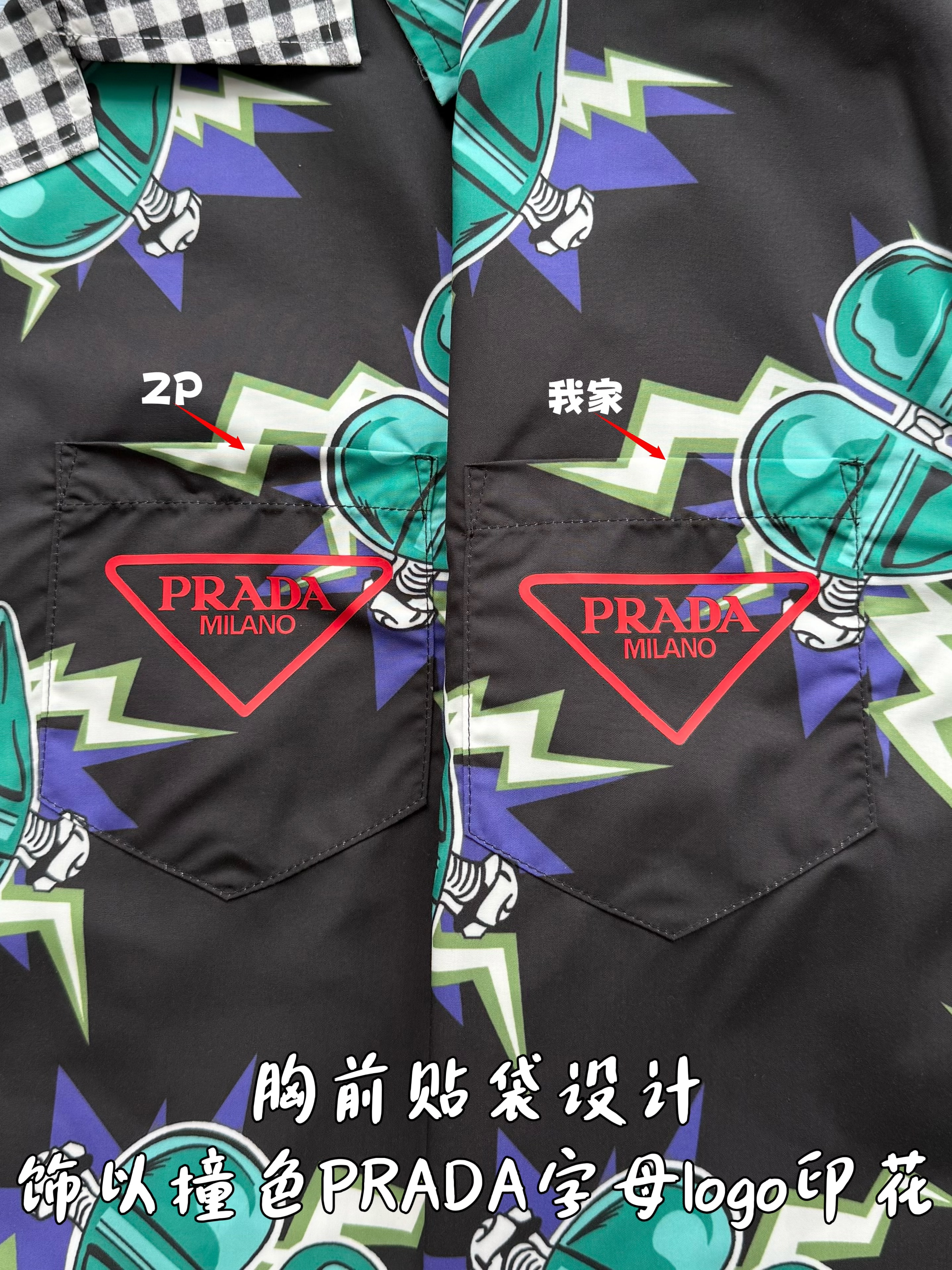 PRADA26ss科学怪人印花图案双面衬衫‼️整件衣服18800购买ZP拆解打造,定制棉质提花面料,做到100%全棉进口纱线,意大利进口制造,双面设计,全幅饰以怪人印花,胸前带有贴袋,前后幅饰以三角标logo字母标识印花设计,定制标志性polo领,门襟开模定制字母标识五金按扣,真正做到1:1copy 闭眼入 码数:S M L XL
